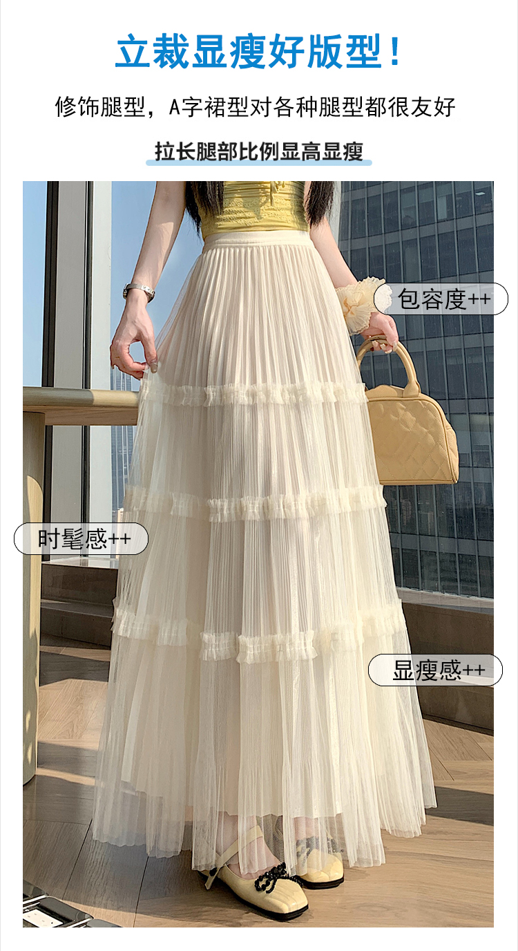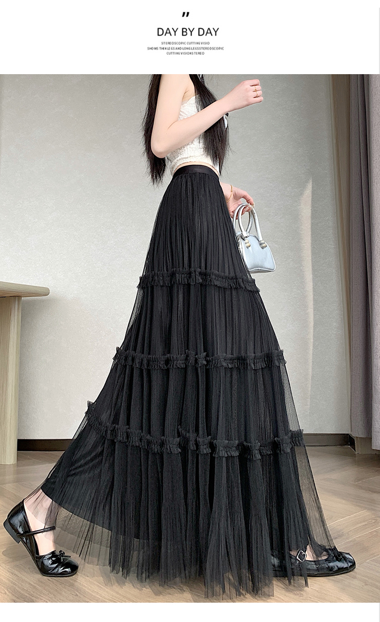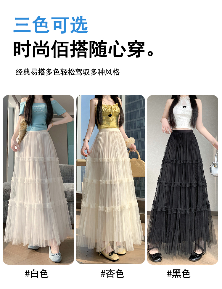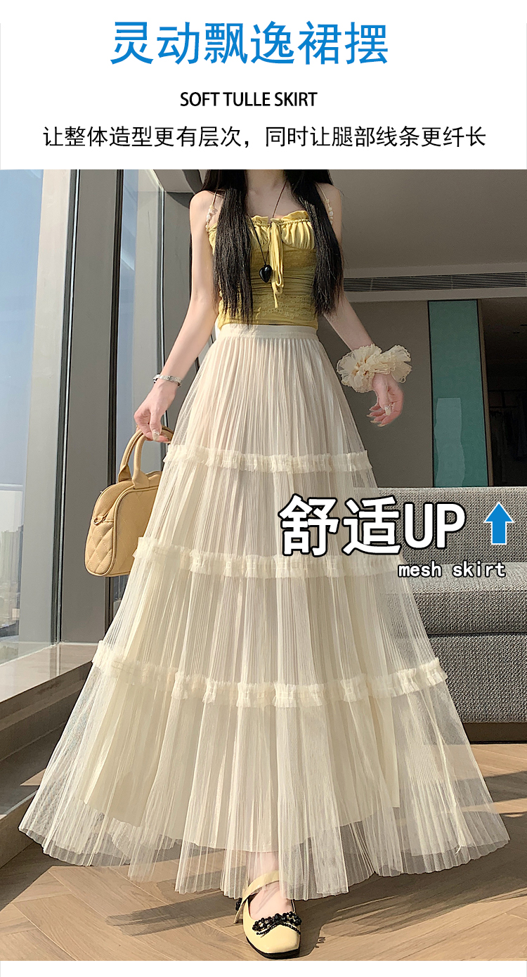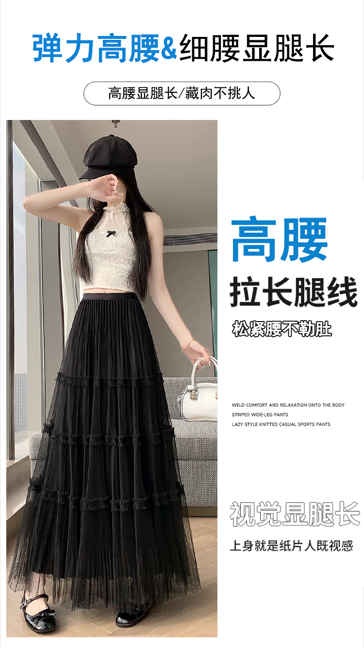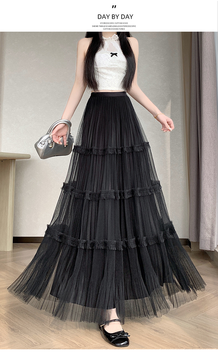 실사 망사 케이크 반신 스커트 여성 2026 봄 여름 새로운 슬림해 보이는 다용도 한 마디 플리츠 큰 진자 우산 치마 롱 스커트