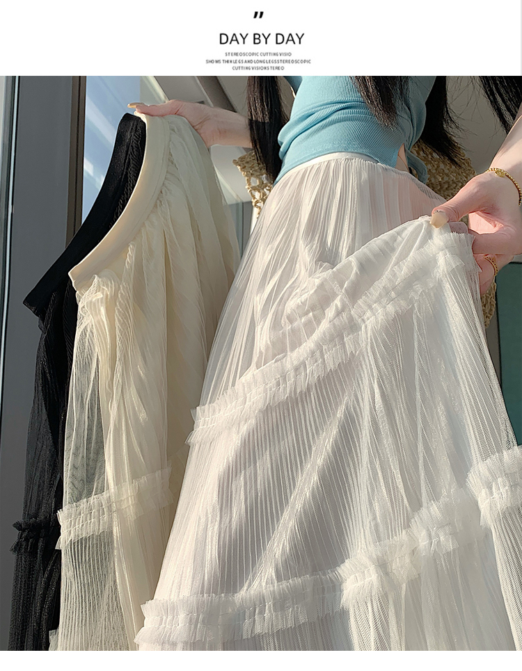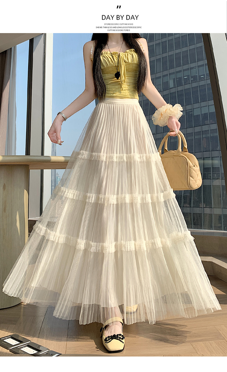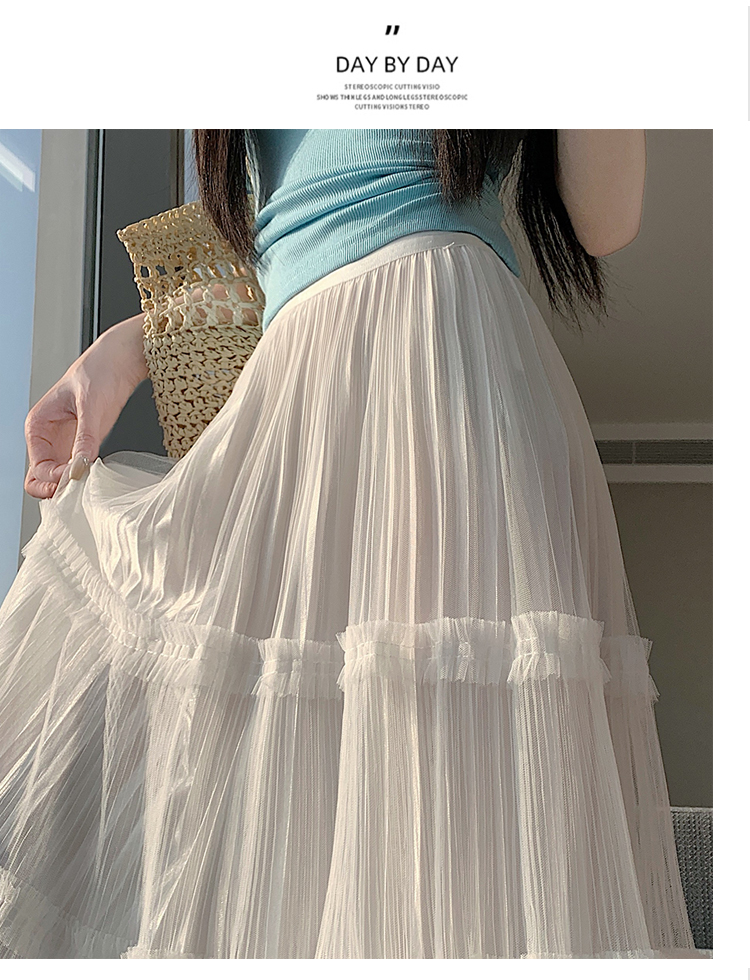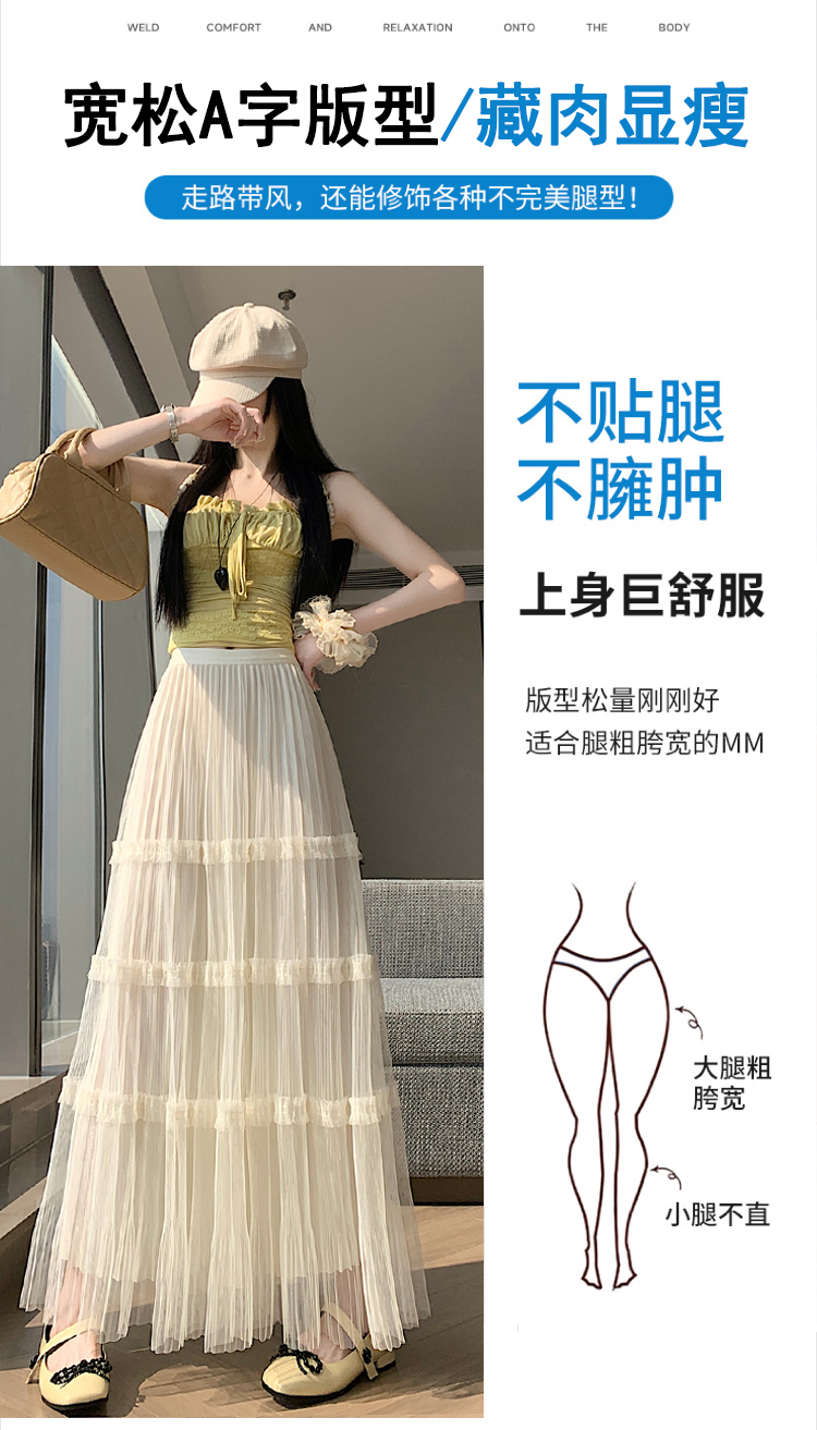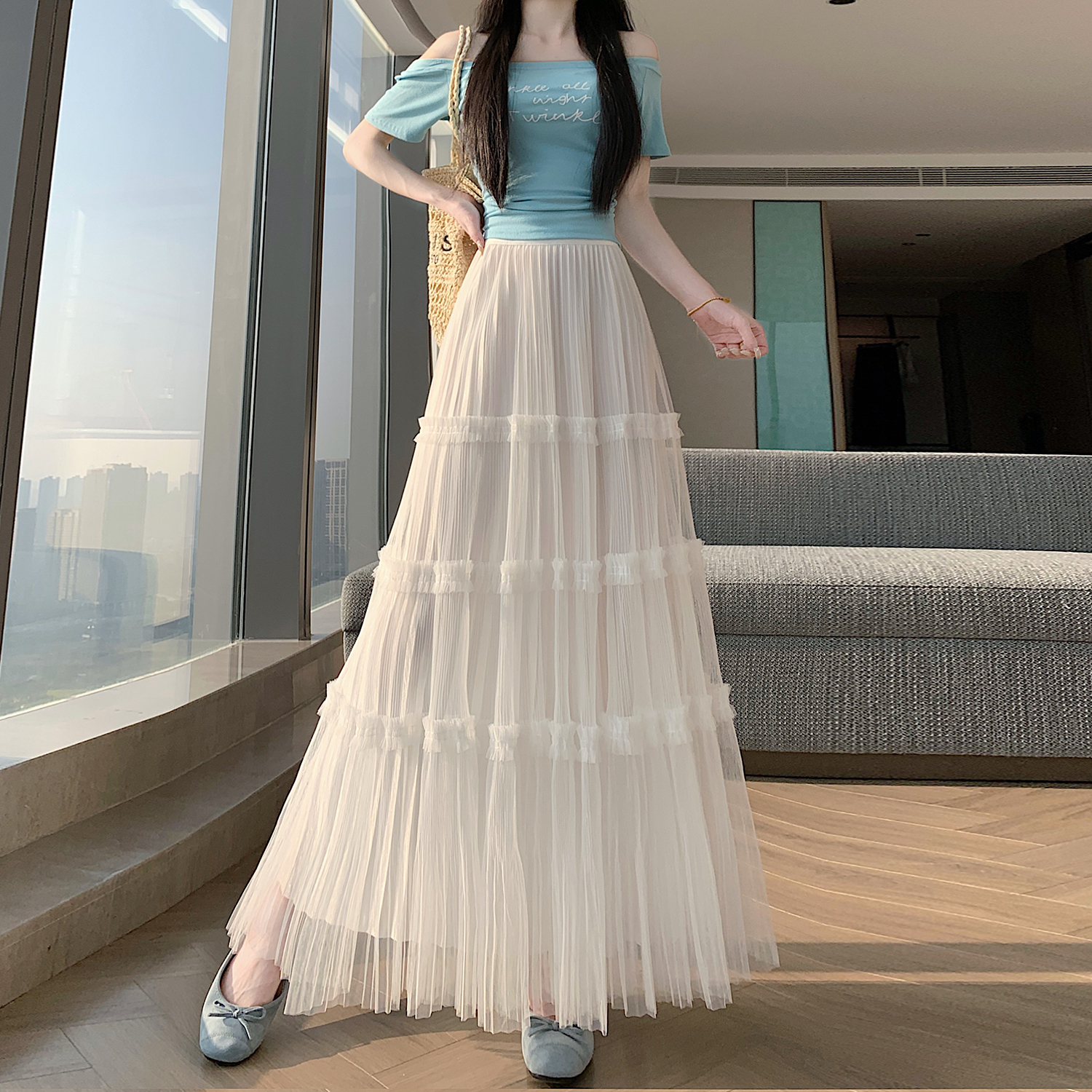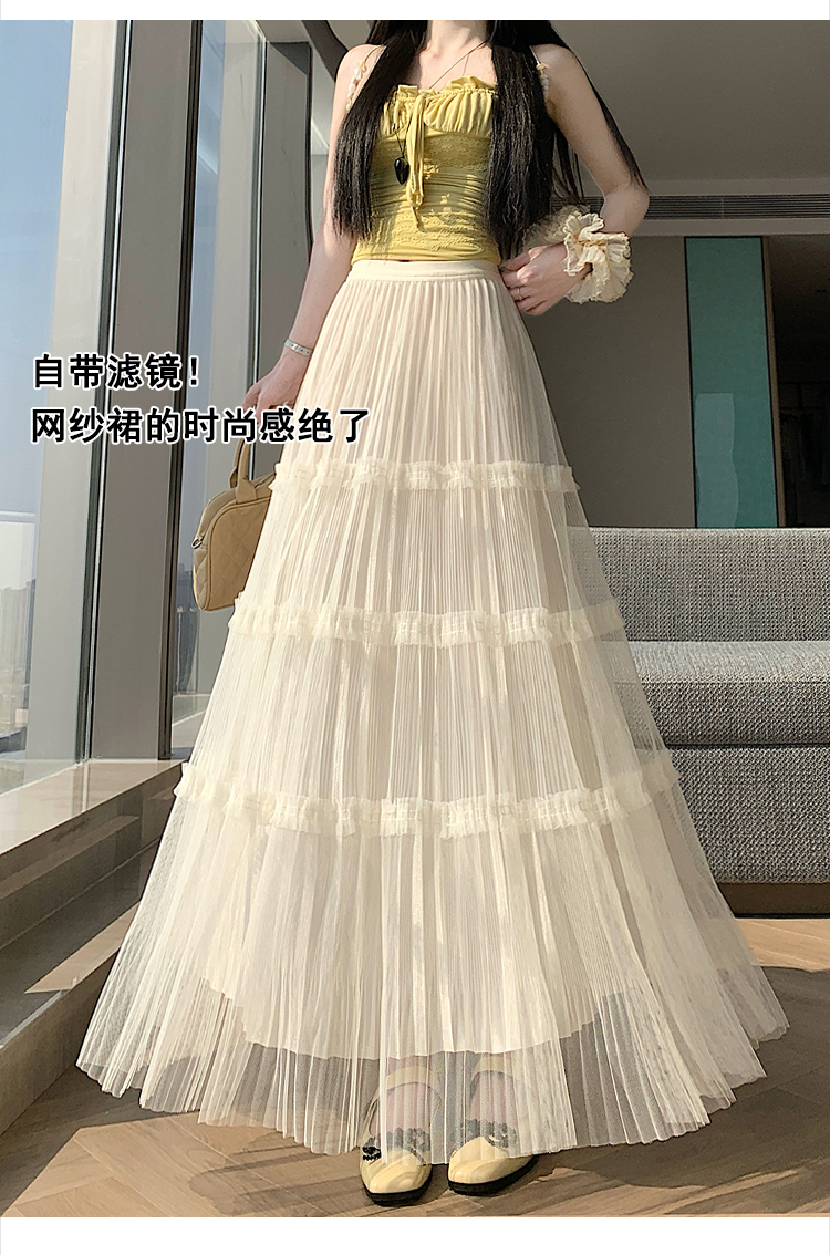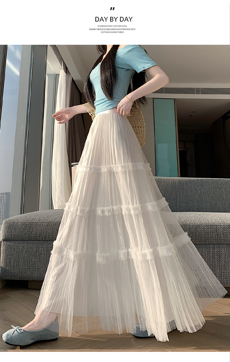 실사 망사 케이크 반신 스커트 여성 2026 봄 여름 새로운 슬림해 보이는 다용도 한 마디 플리츠 큰 진자 우산 치마 롱 스커트