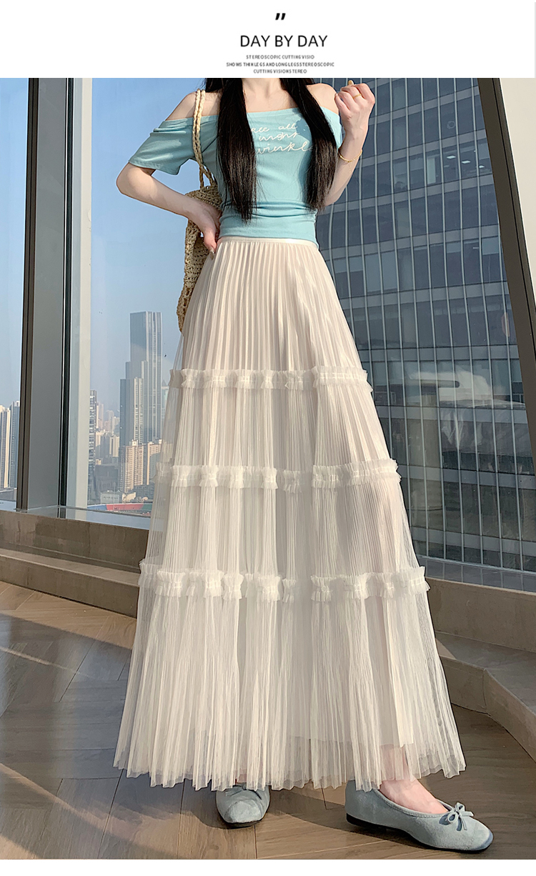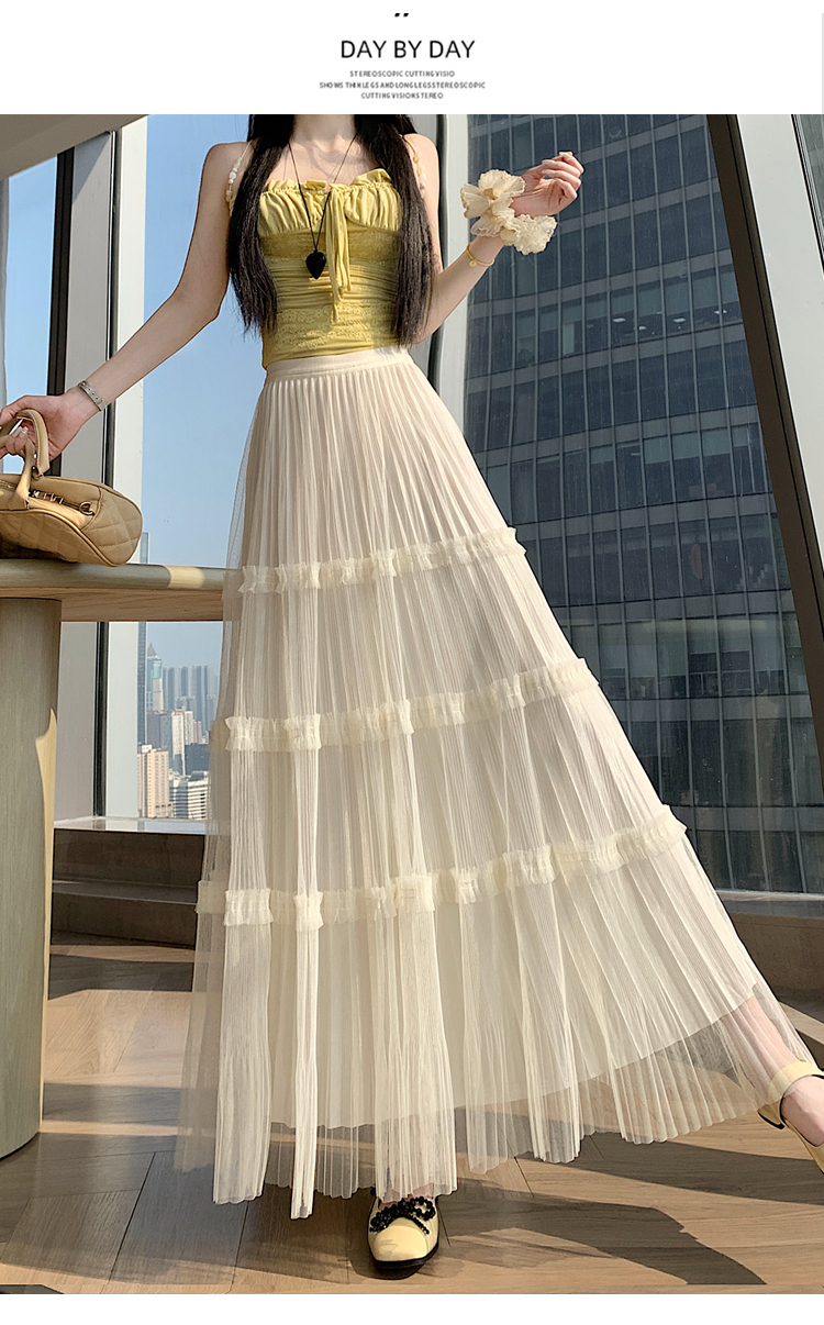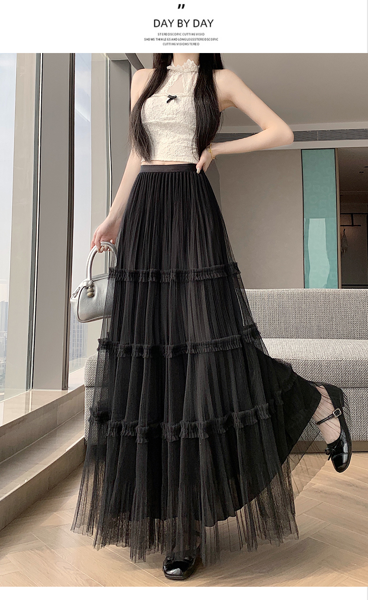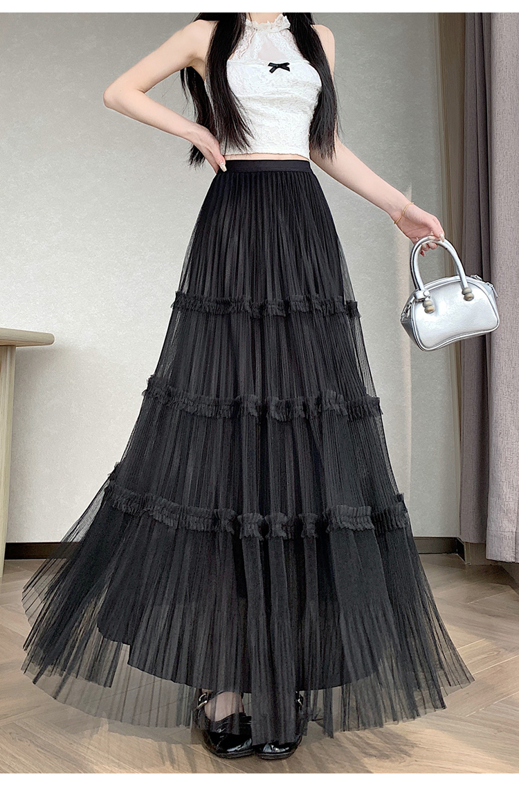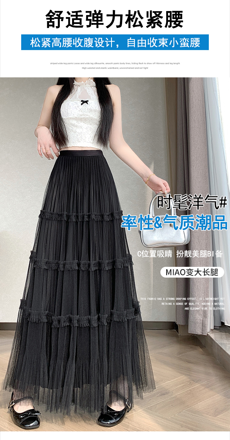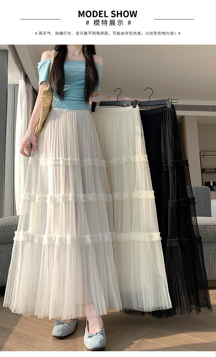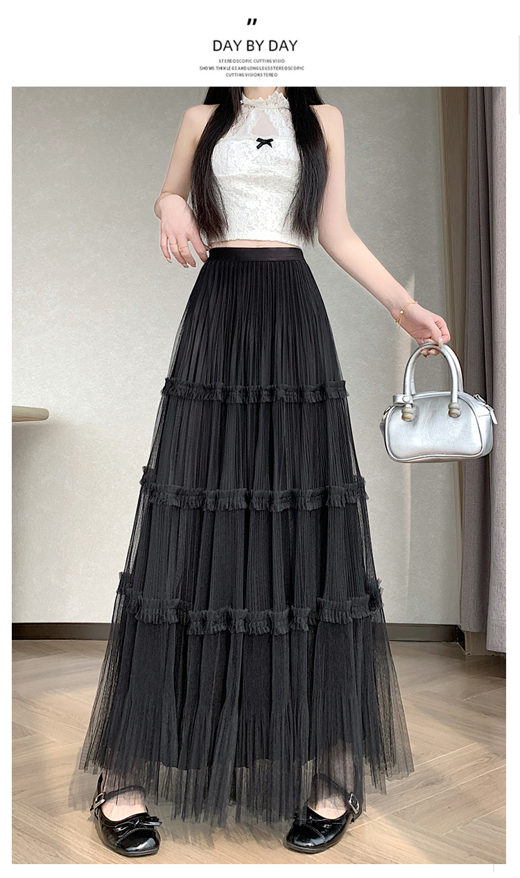 실사 망사 케이크 반신 스커트 여성 2026 봄 여름 새로운 슬림해 보이는 다용도 한 마디 플리츠 큰 진자 우산 치마 롱 스커트