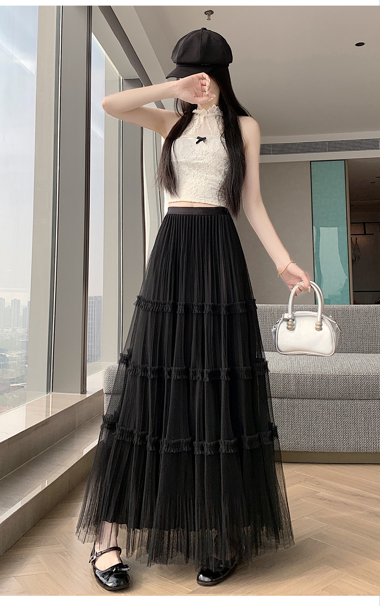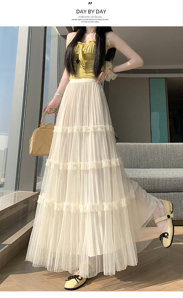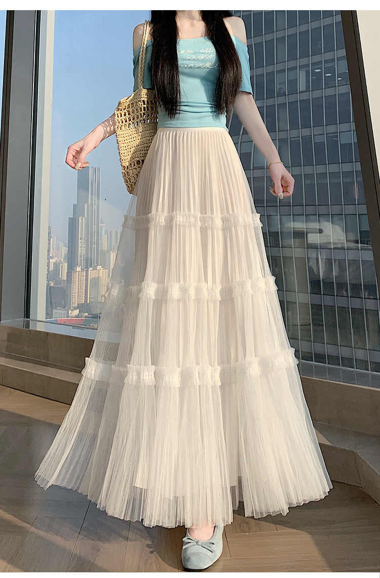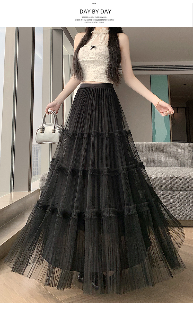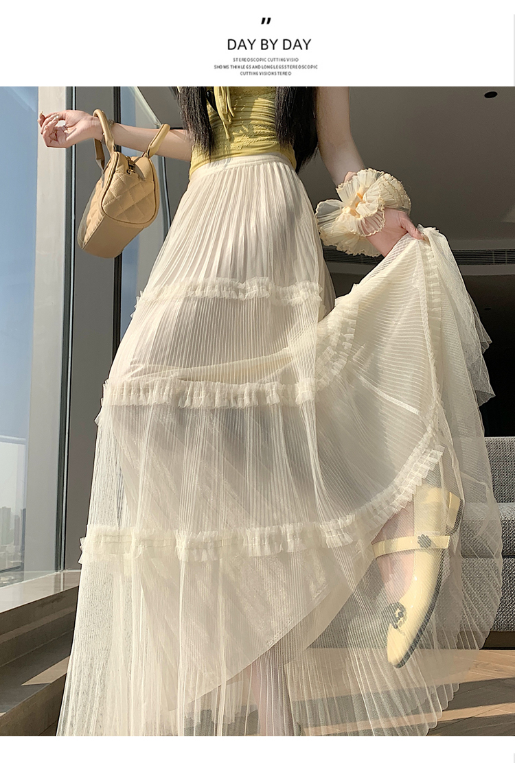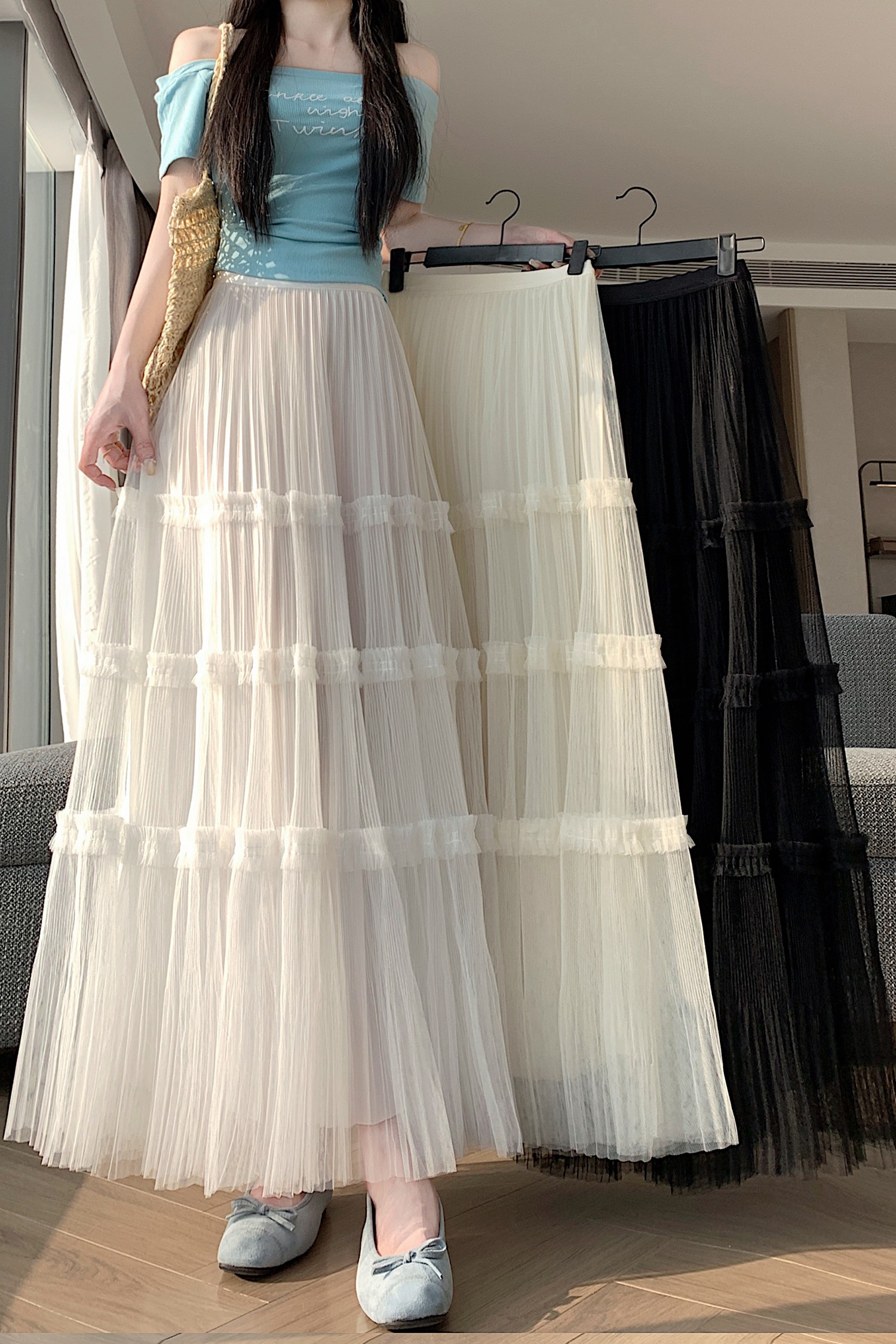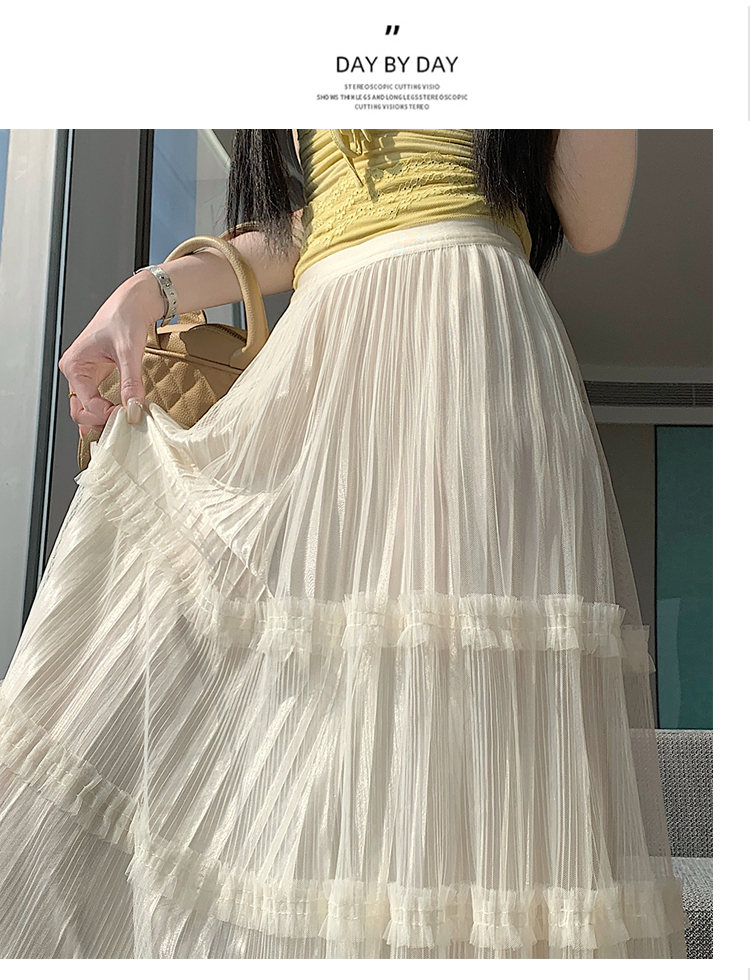 실사 망사 케이크 반신 스커트 여성 2026 봄 여름 새로운 슬림해 보이는 다용도 한 마디 플리츠 큰 진자 우산 치마 롱 스커트