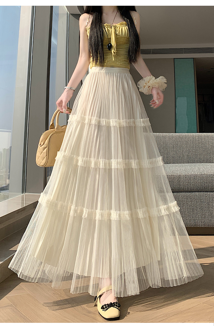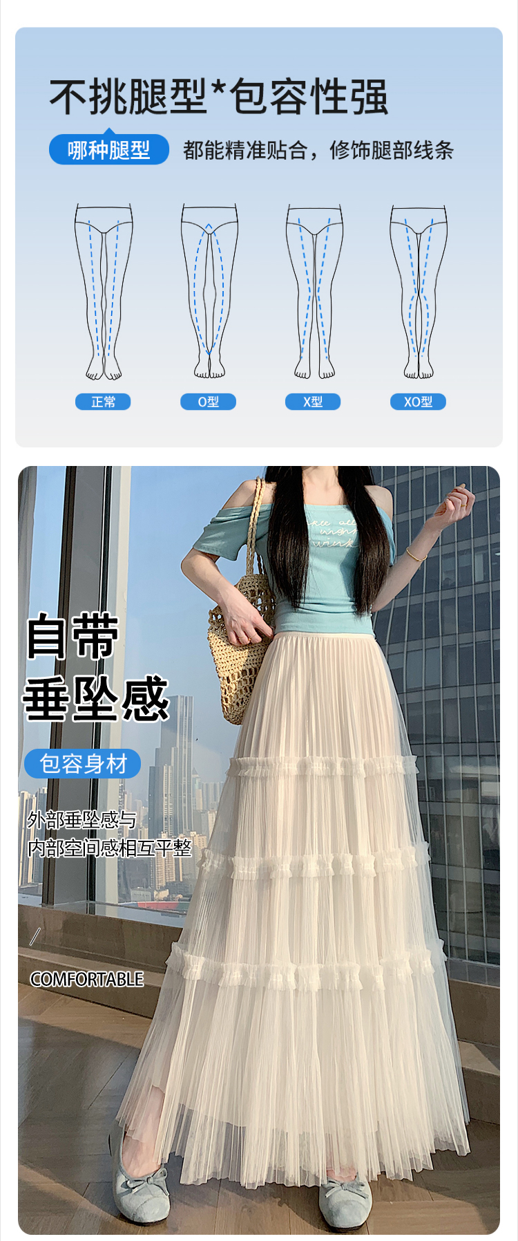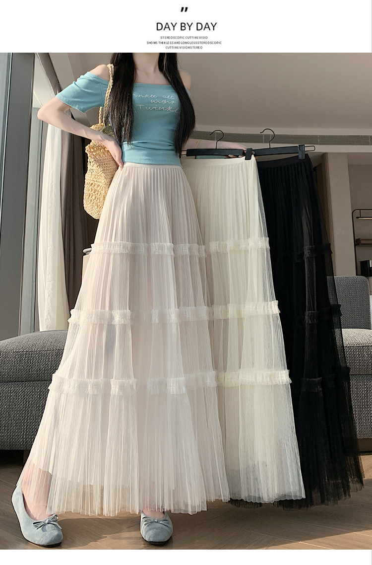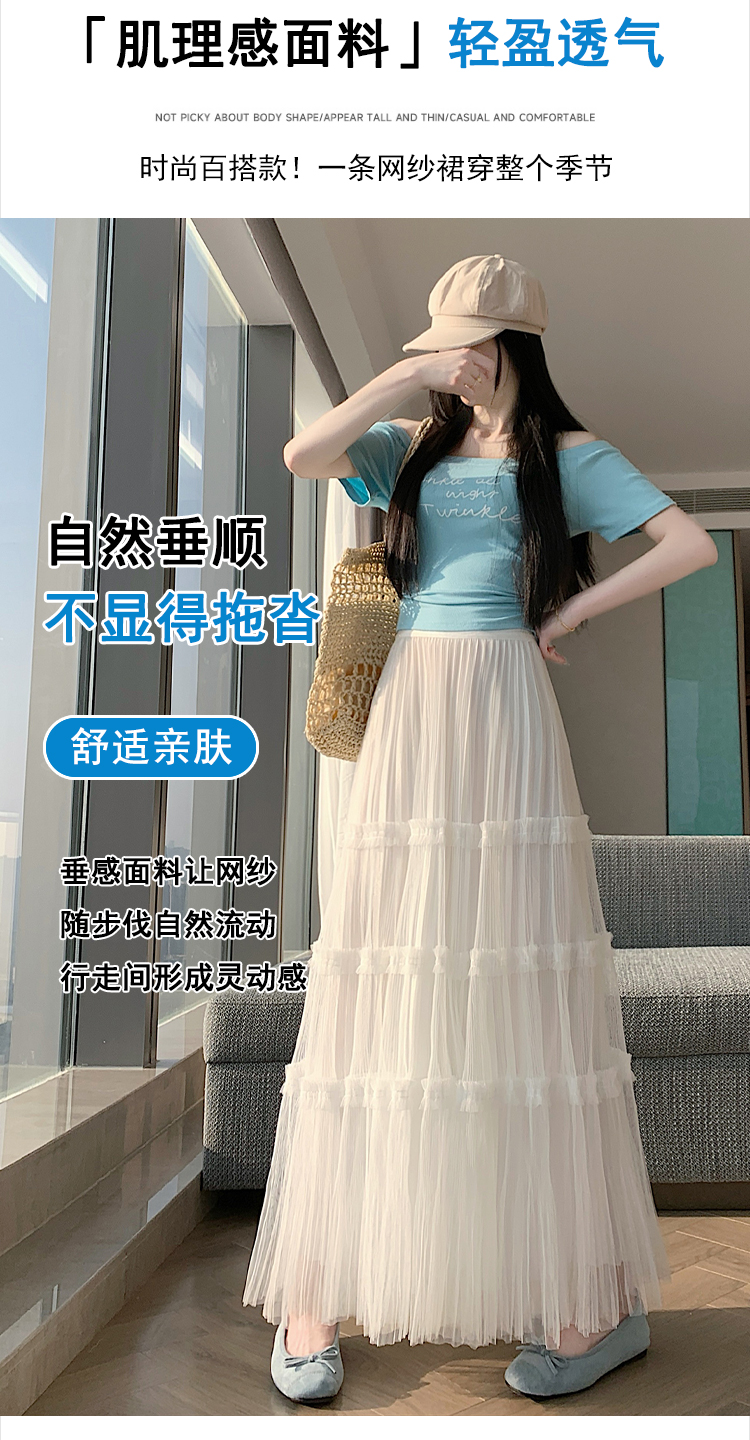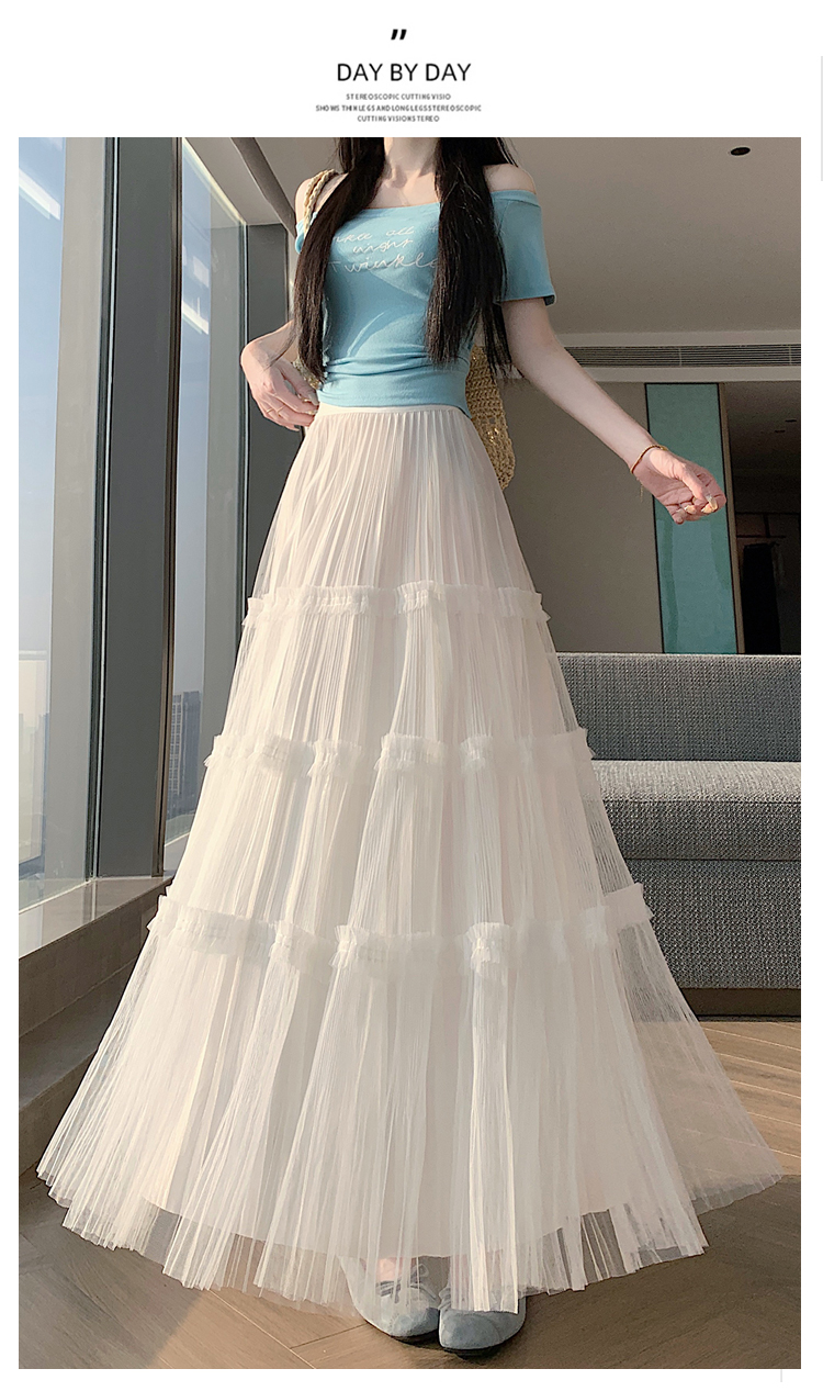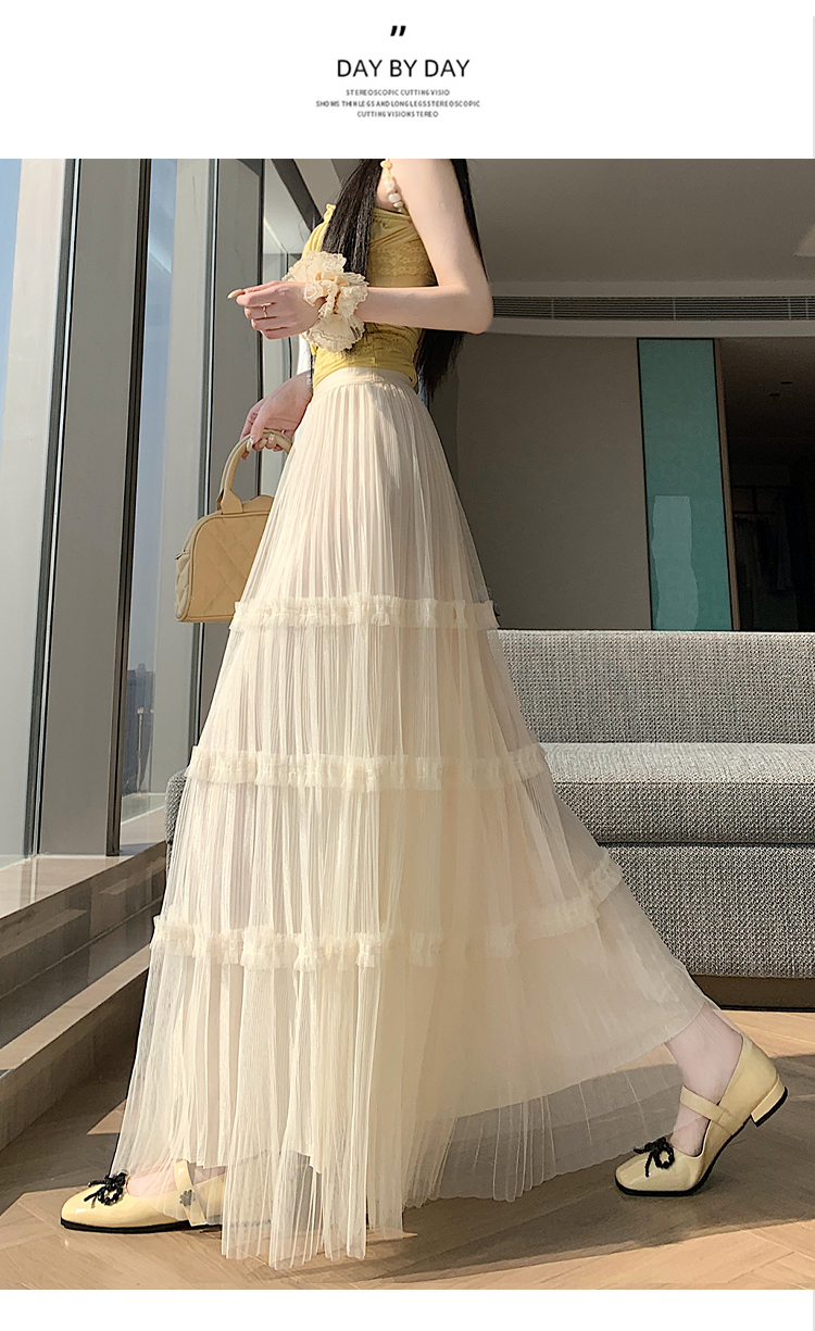 실사 망사 케이크 반신 스커트 여성 2026 봄 여름 새로운 슬림해 보이는 다용도 한 마디 플리츠 큰 진자 우산 치마 롱 스커트