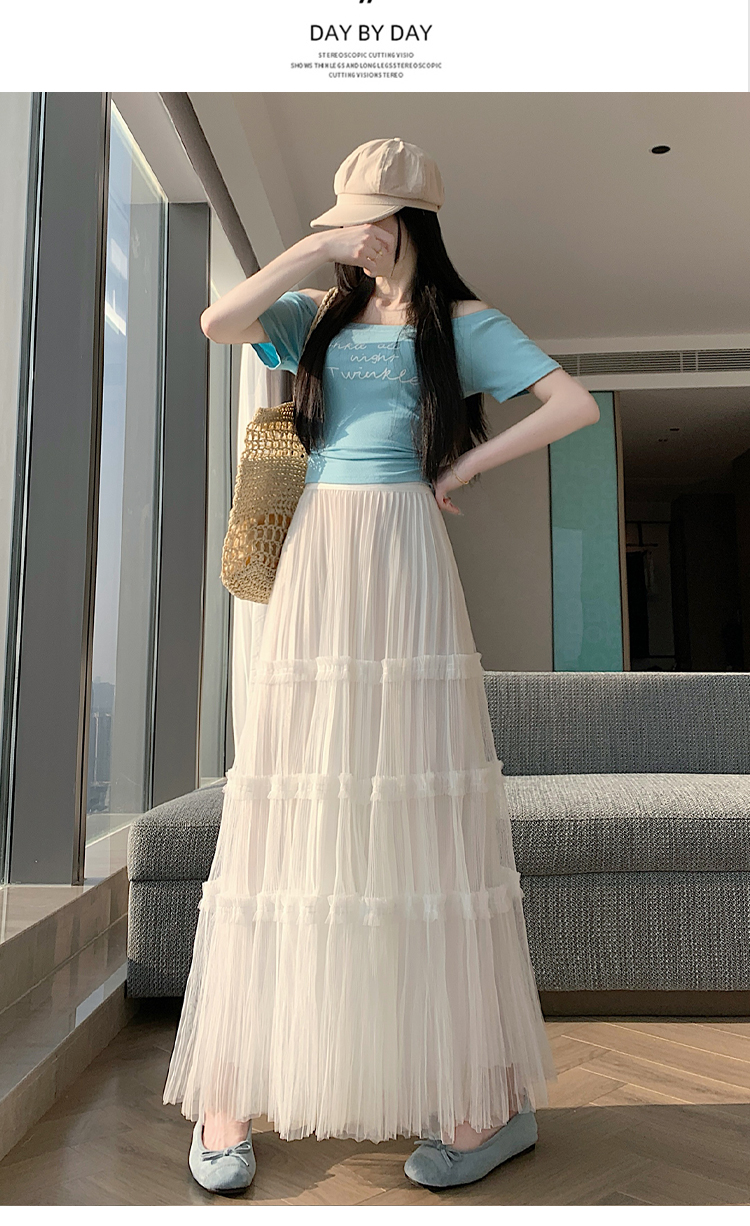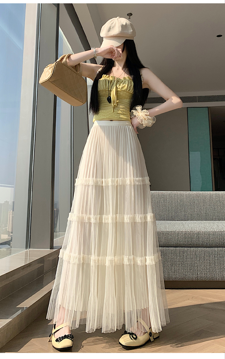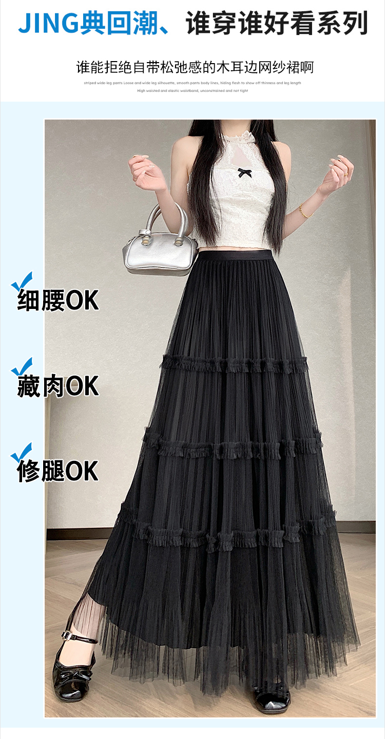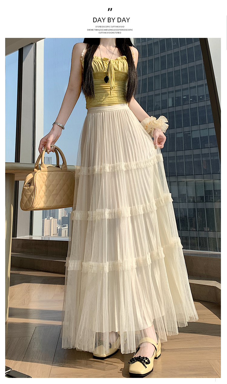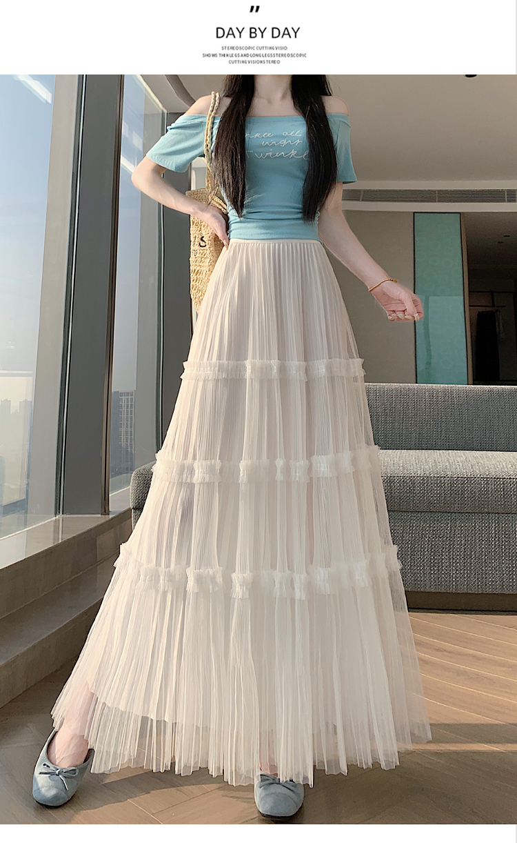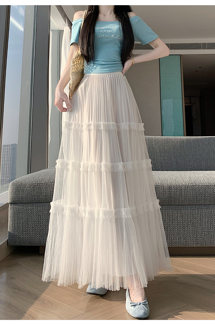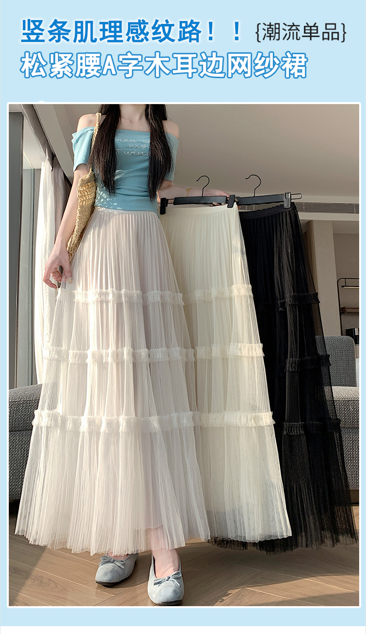 실사 망사 케이크 반신 스커트 여성 2026 봄 여름 새로운 슬림해 보이는 다용도 한 마디 플리츠 큰 진자 우산 치마 롱 스커트