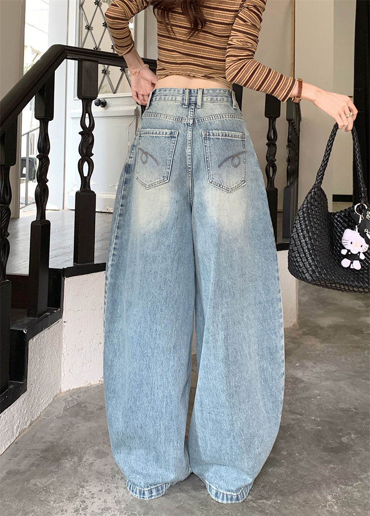 실사 아메리칸 레트로 자수 넓은 다리 청바지 여성 새로운 하이웨이스트 슬림해 보이는 한 마디 스트레이트 도루 센스 긴 바지