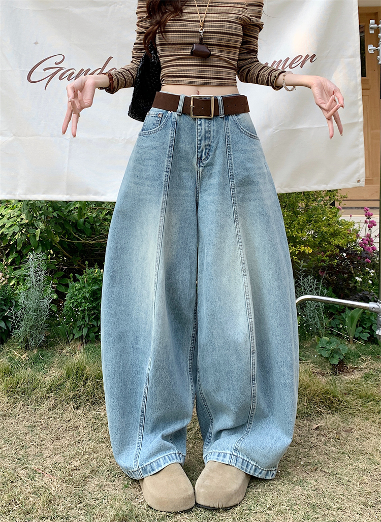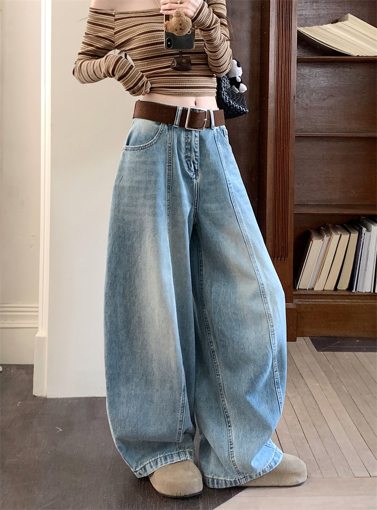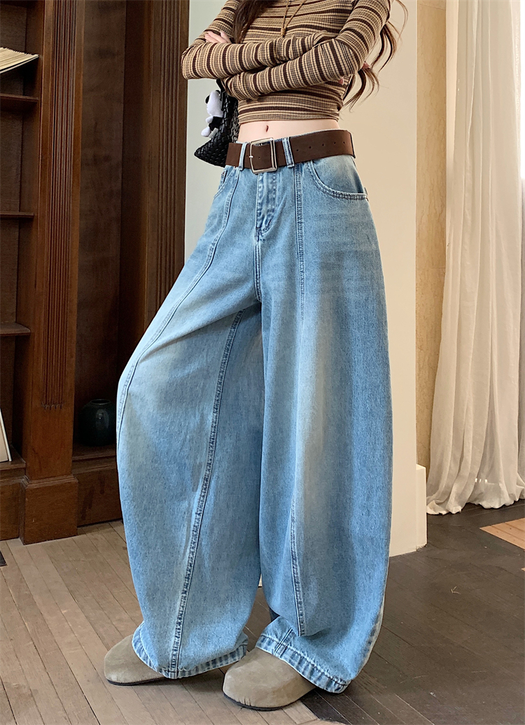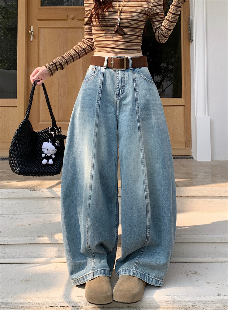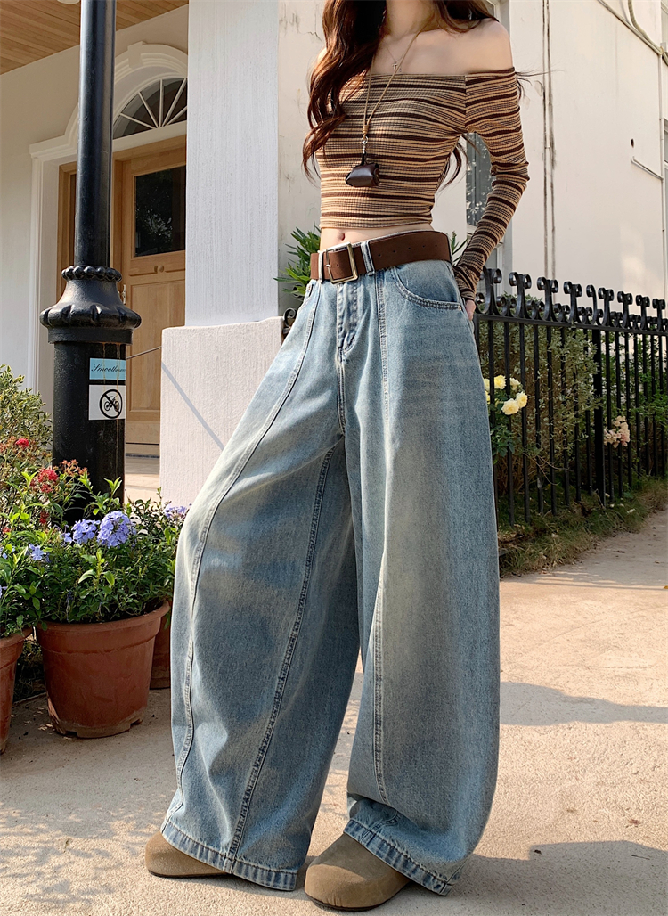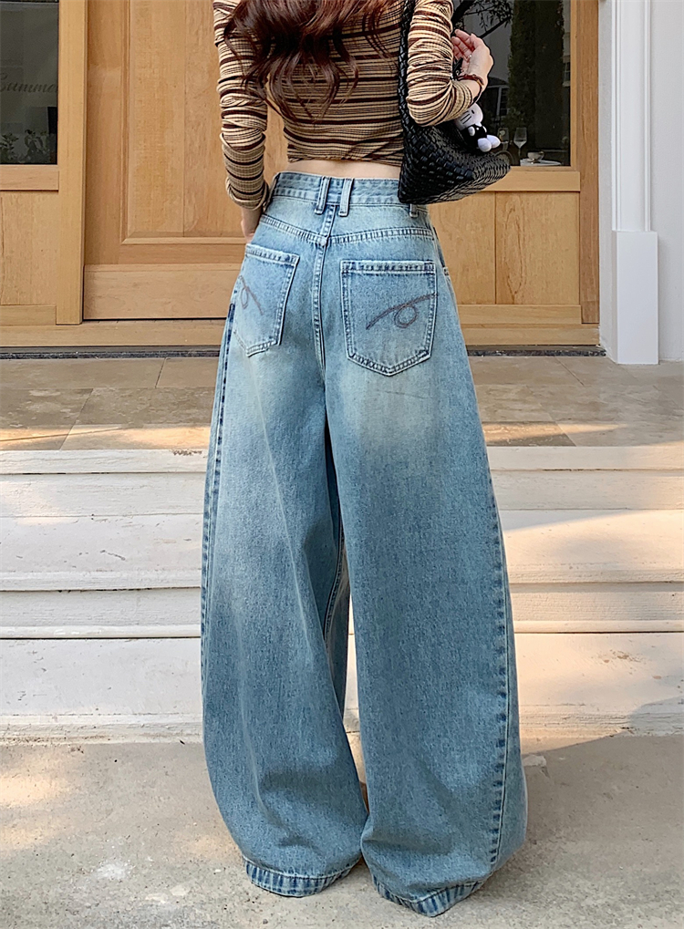 실사 아메리칸 레트로 넓은 다리 청바지 여성 새로운 하이웨이스트 슬림해 보이는 스트레이트 도루 센스 풍선 바닥 청소 긴 바지