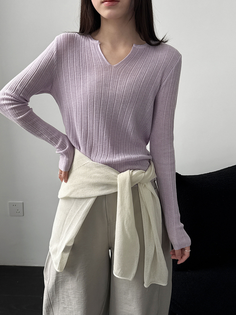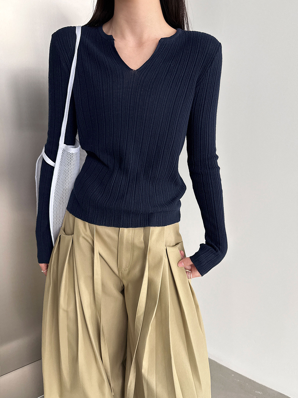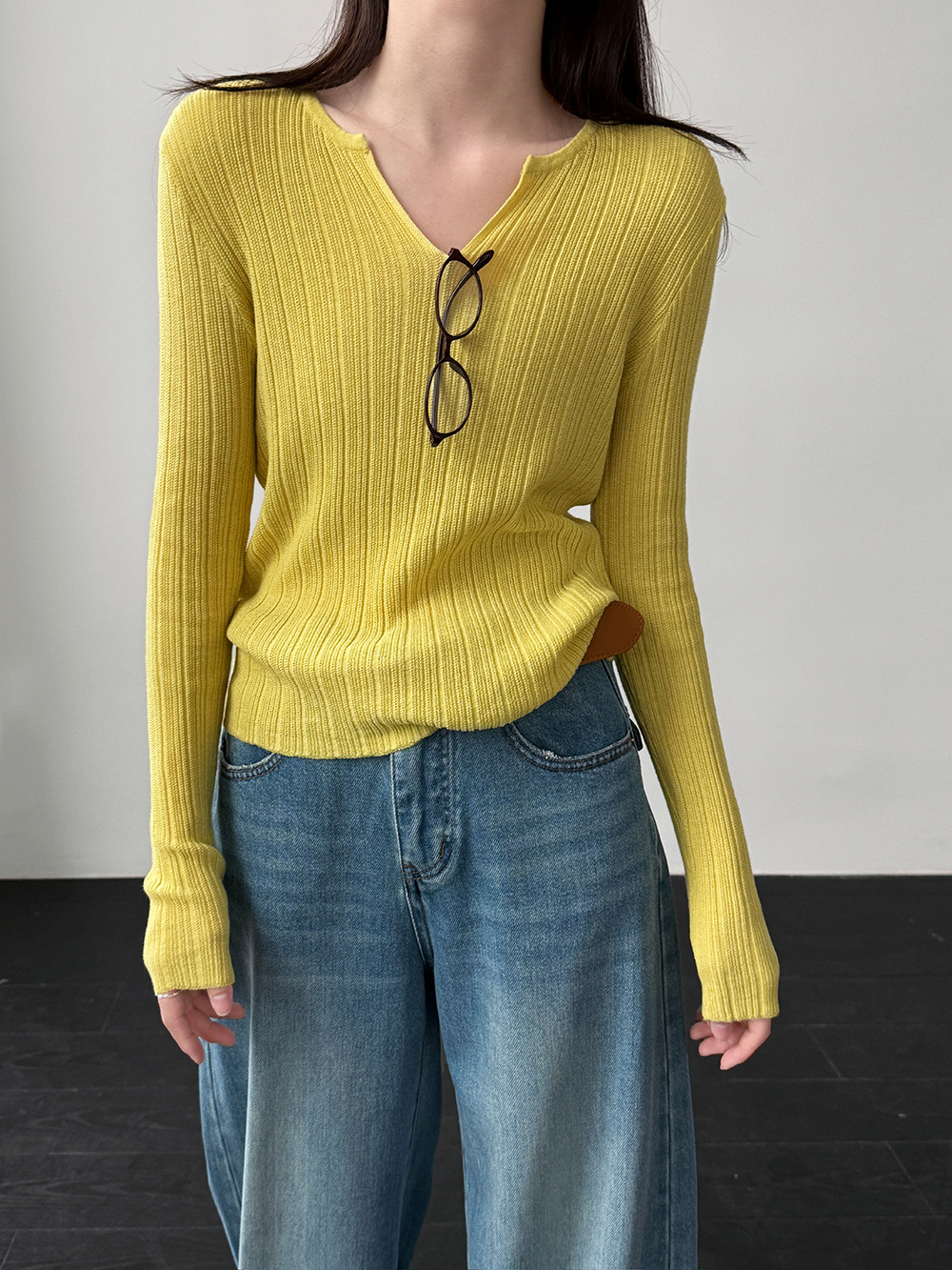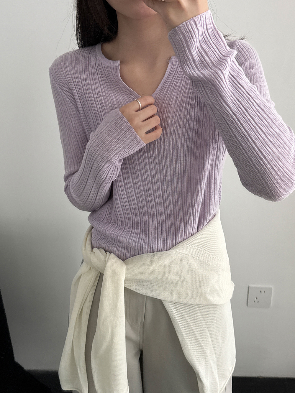 미니멀리즘 몸매 가꾸기 품격 Feifei 소매 양모 니트 맨위 여성 26 봄 새로운 다용도 티셔츠