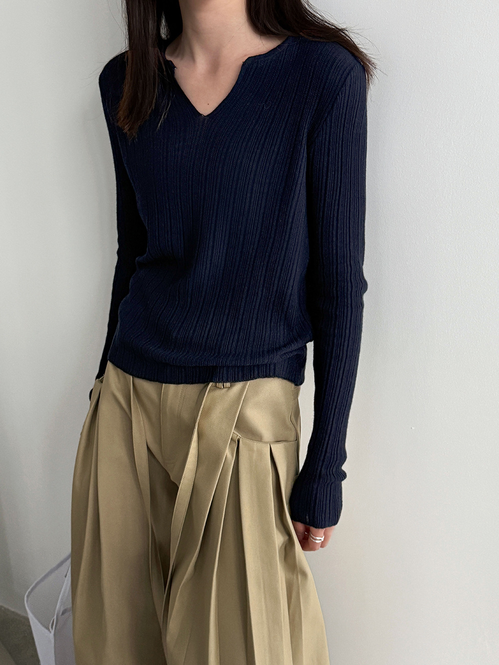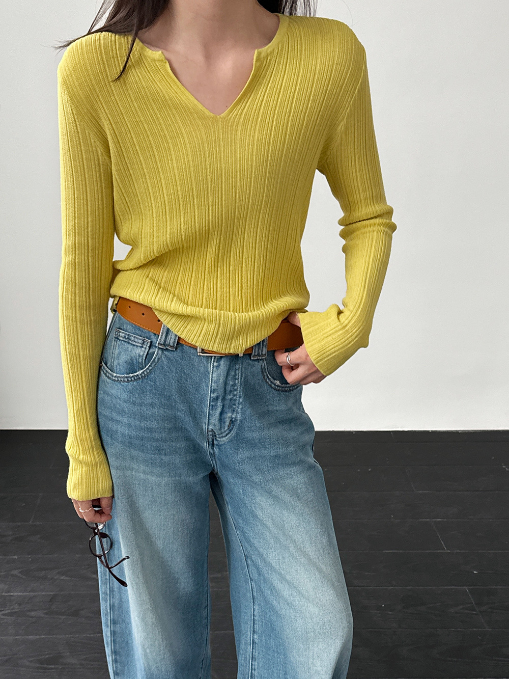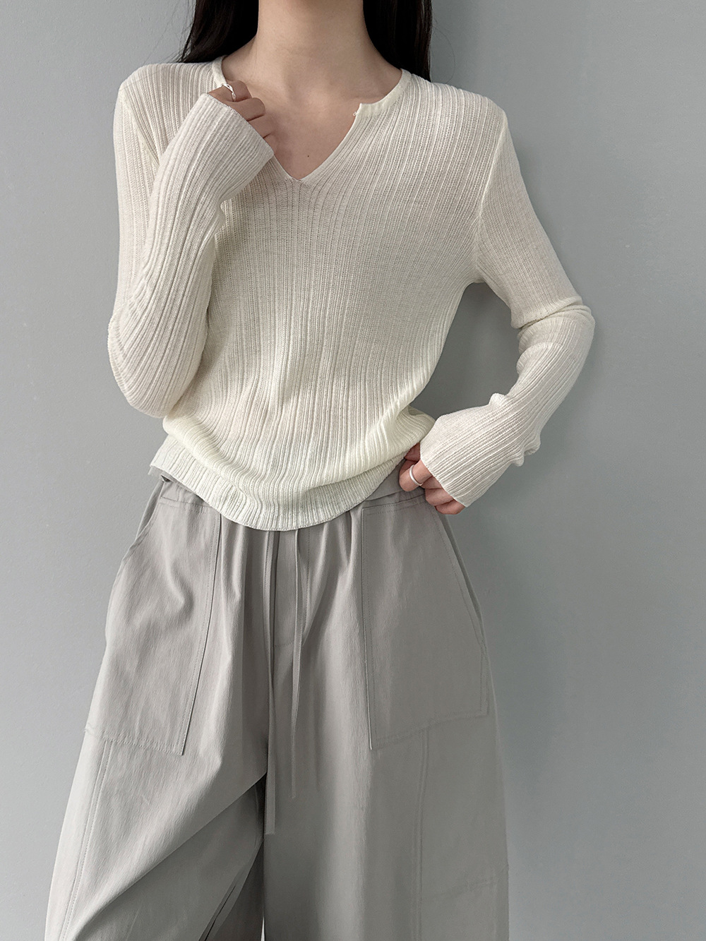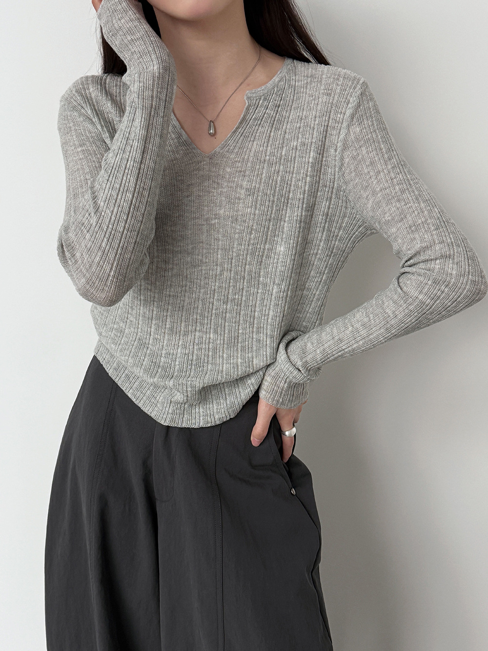 미니멀리즘 몸매 가꾸기 품격 Feifei 소매 양모 니트 맨위 여성 26 봄 새로운 다용도 티셔츠
