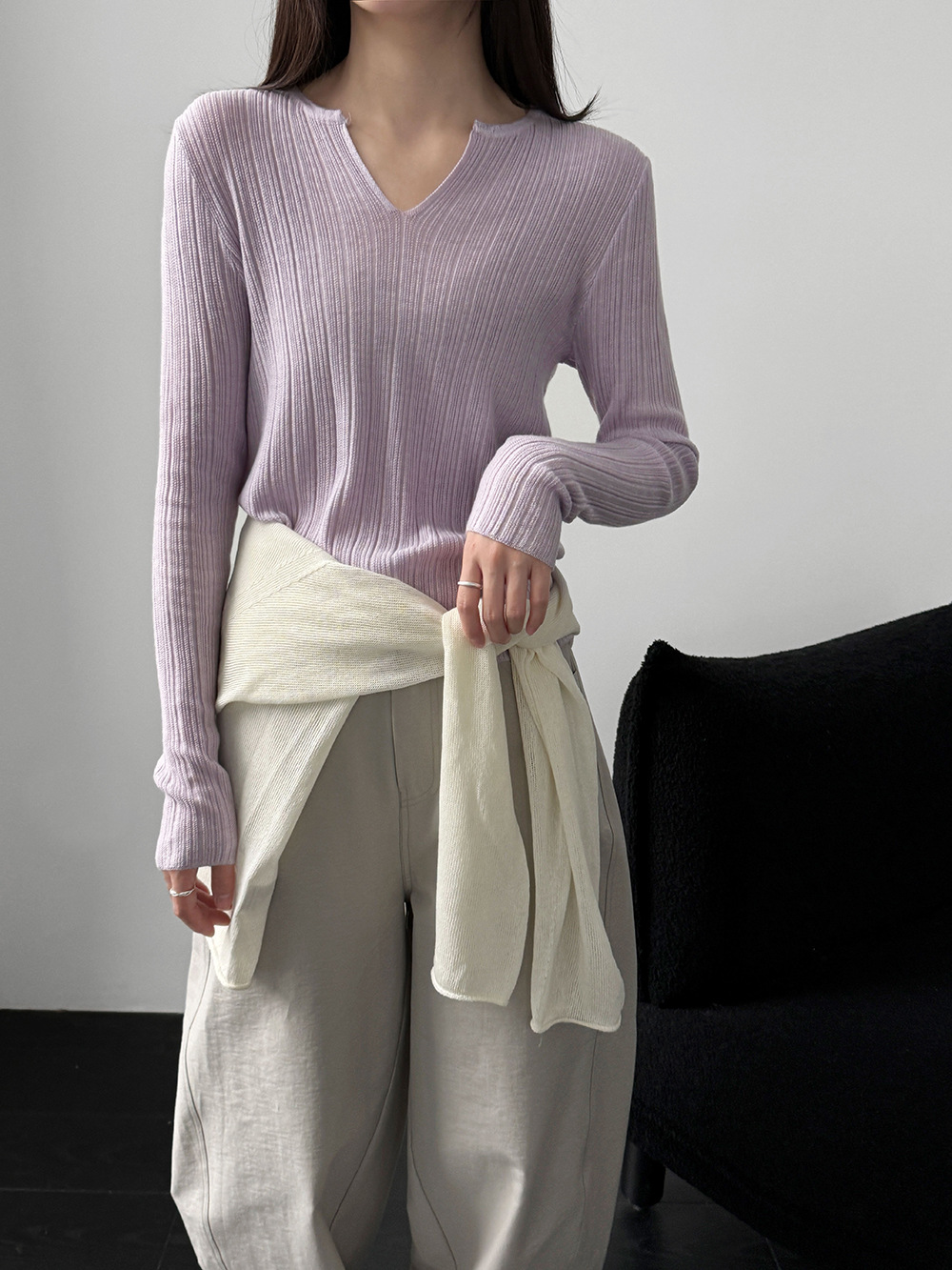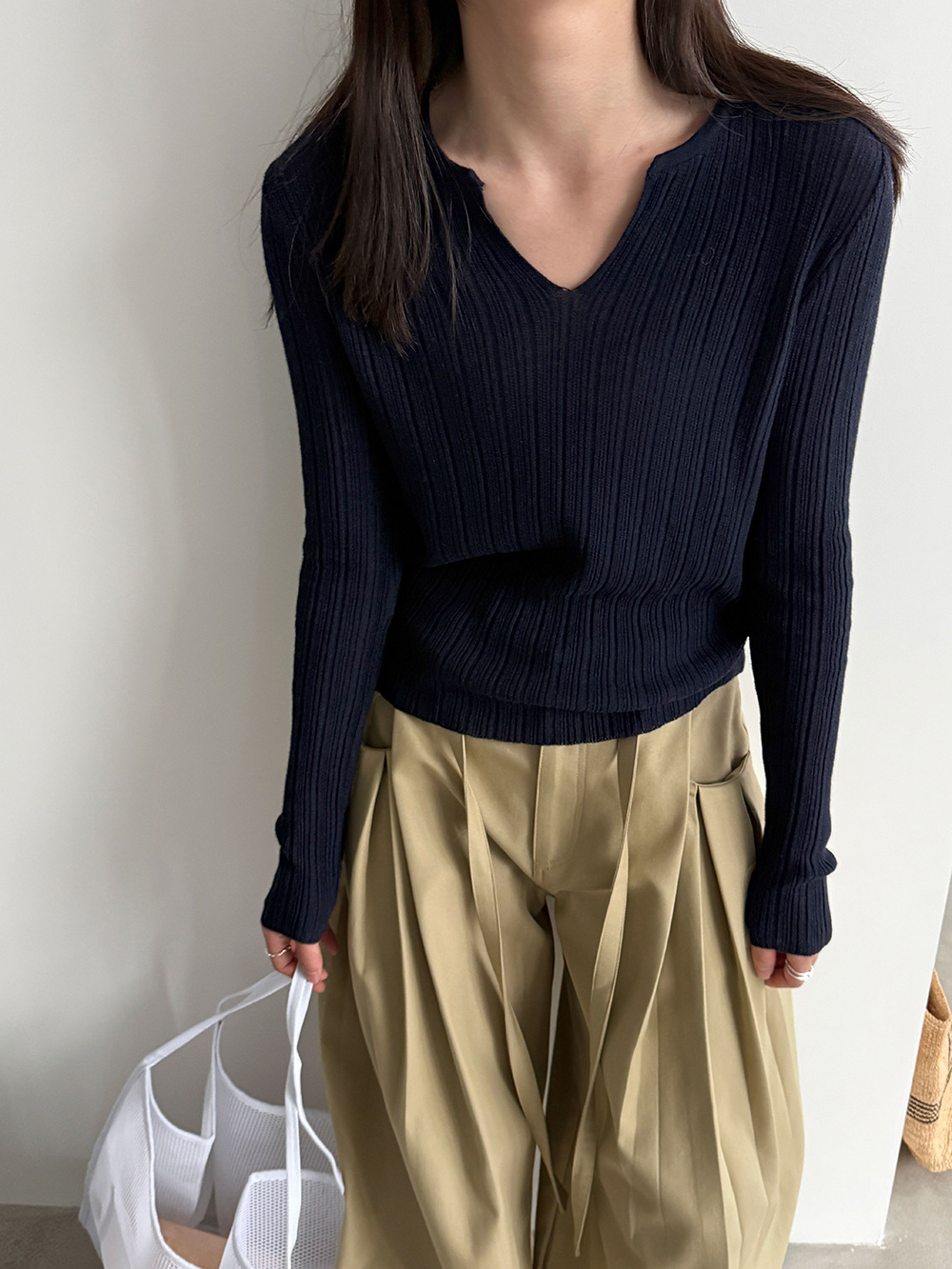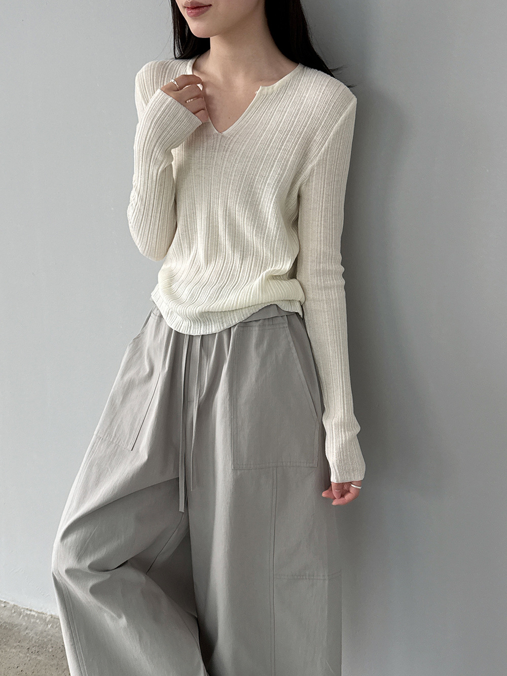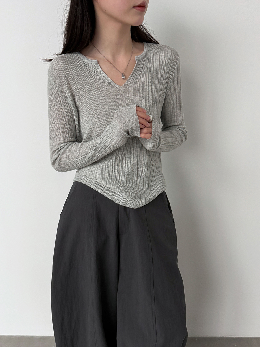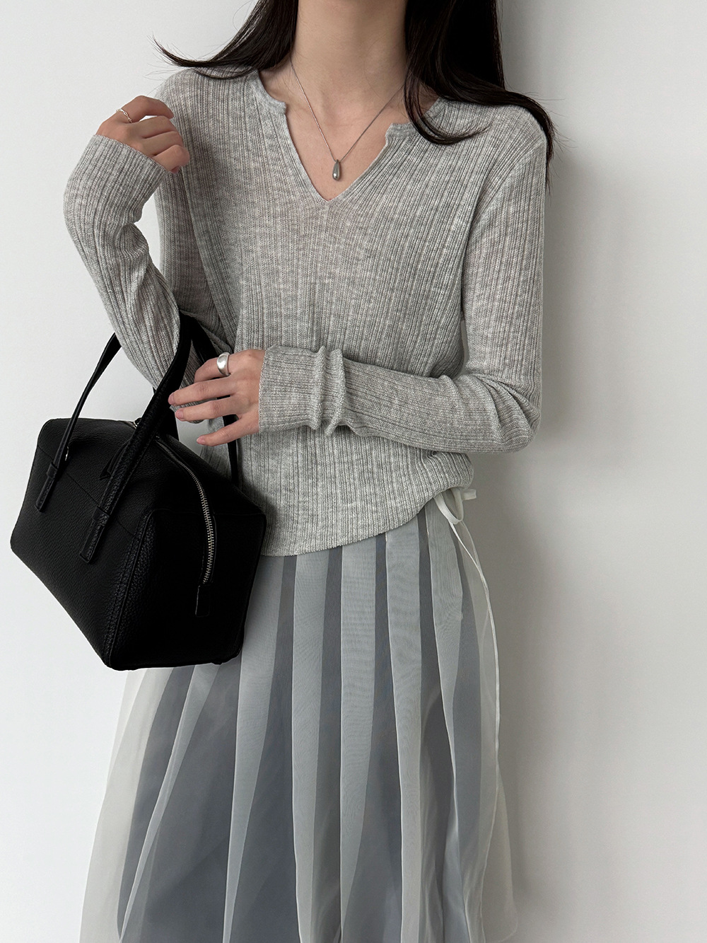 미니멀리즘 몸매 가꾸기 품격 Feifei 소매 양모 니트 맨위 여성 26 봄 새로운 다용도 티셔츠