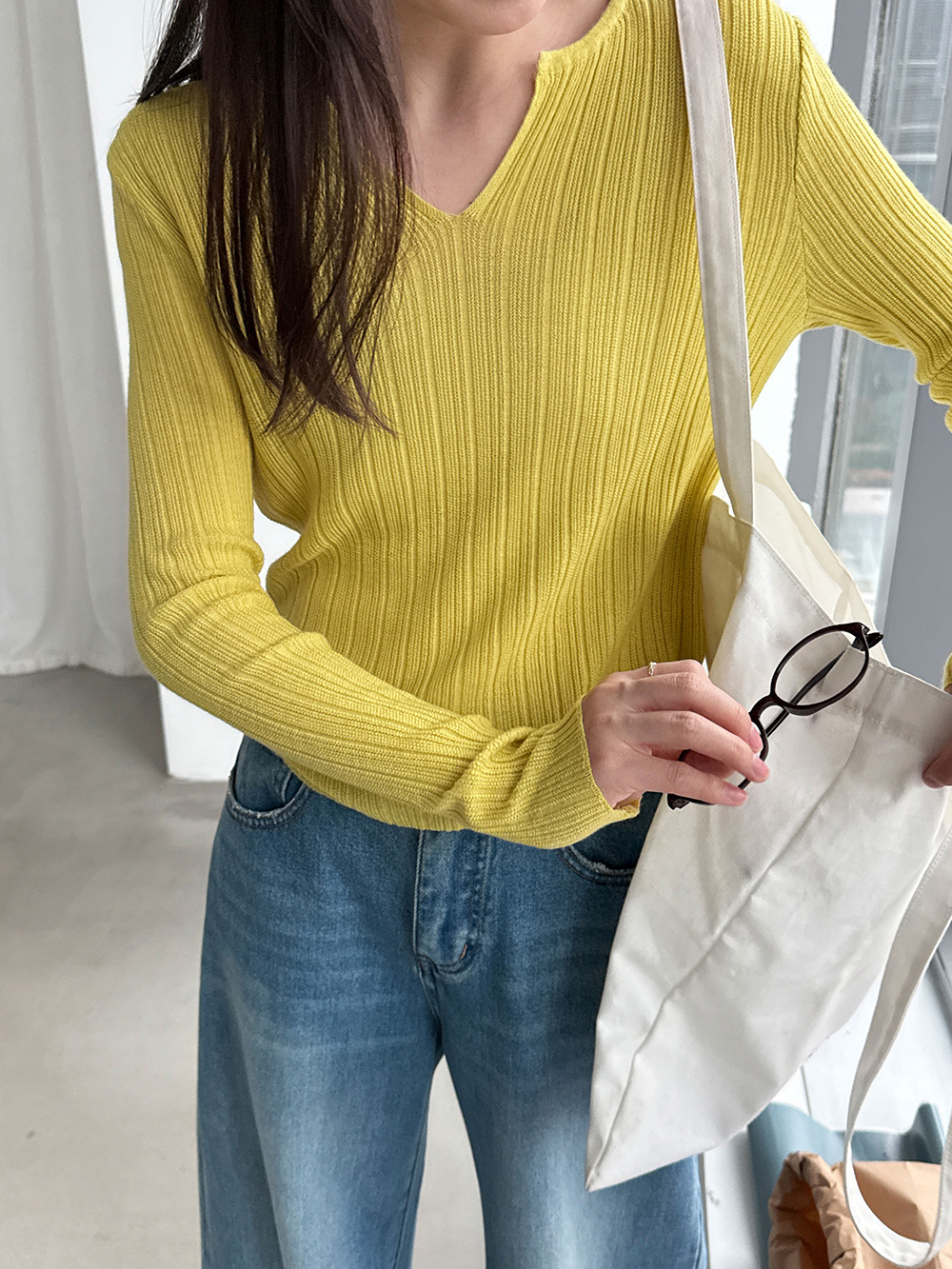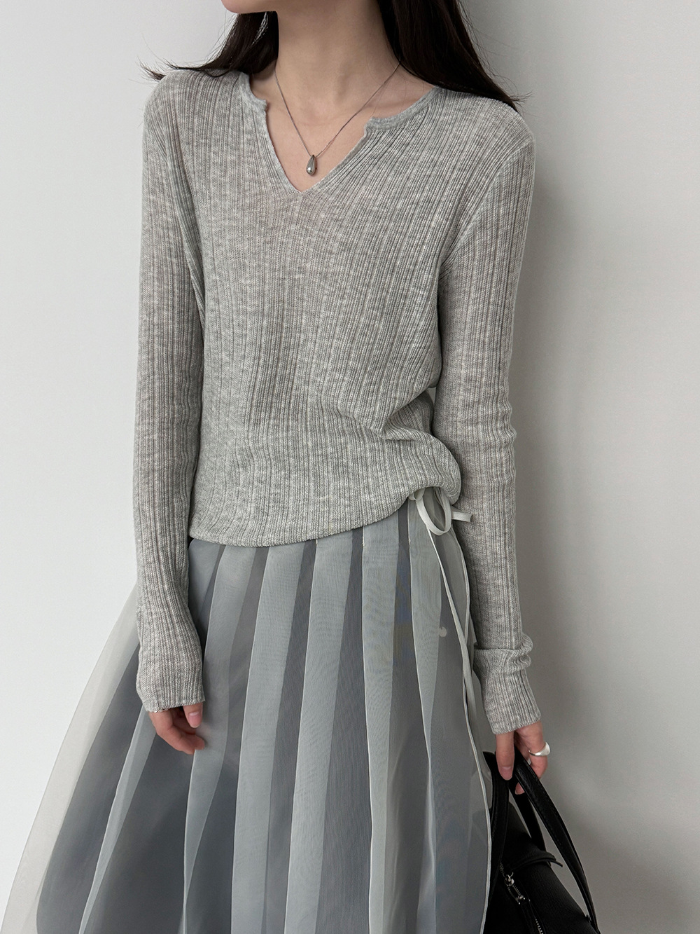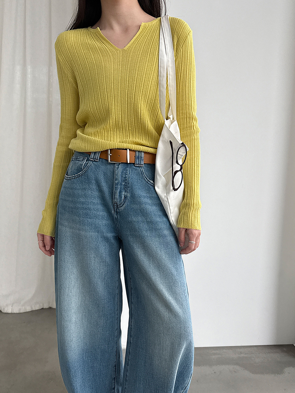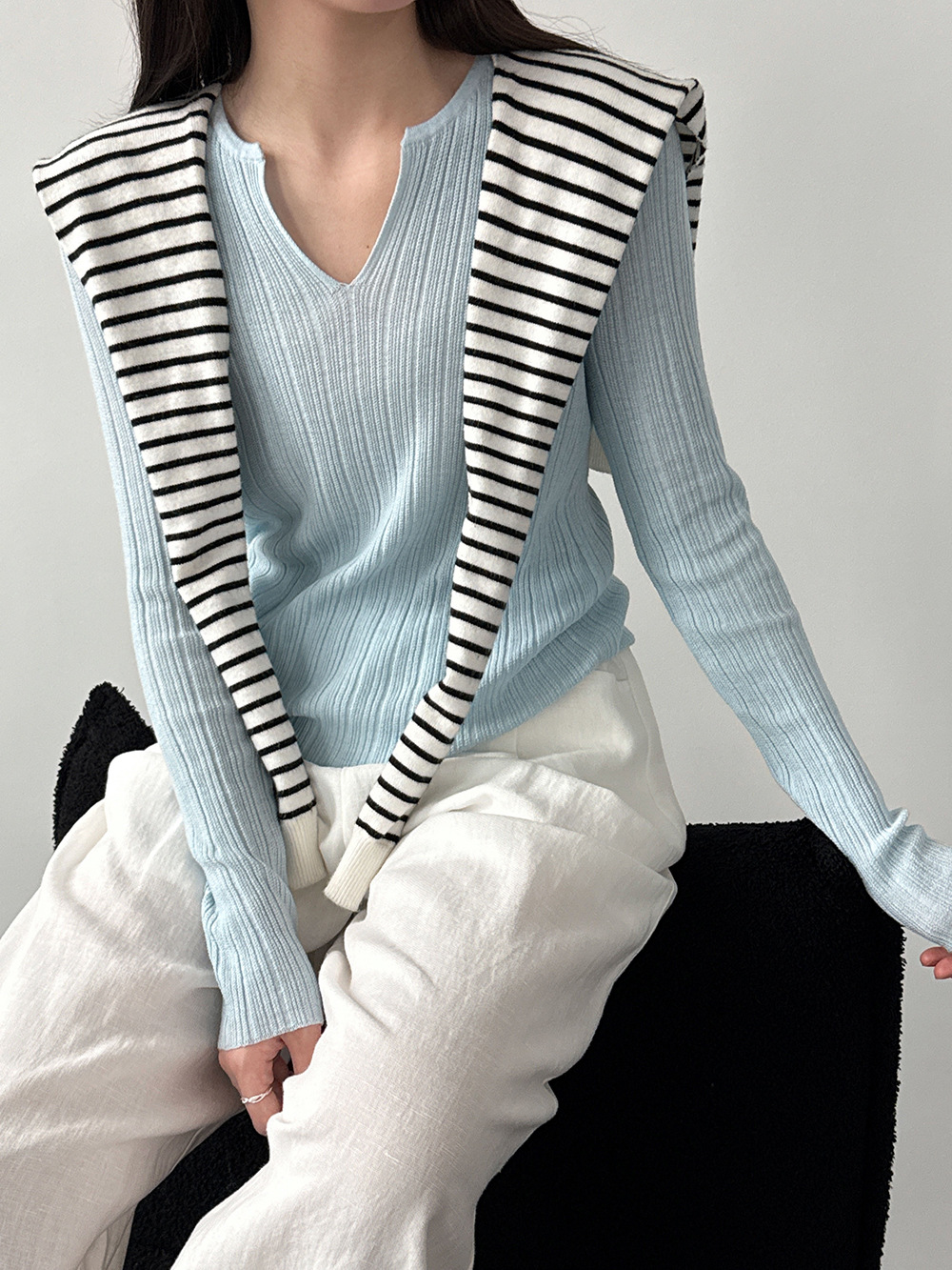 미니멀리즘 몸매 가꾸기 품격 Feifei 소매 양모 니트 맨위 여성 26 봄 새로운 다용도 티셔츠