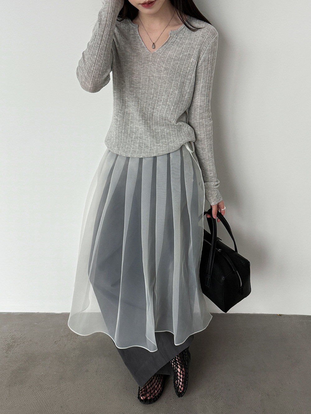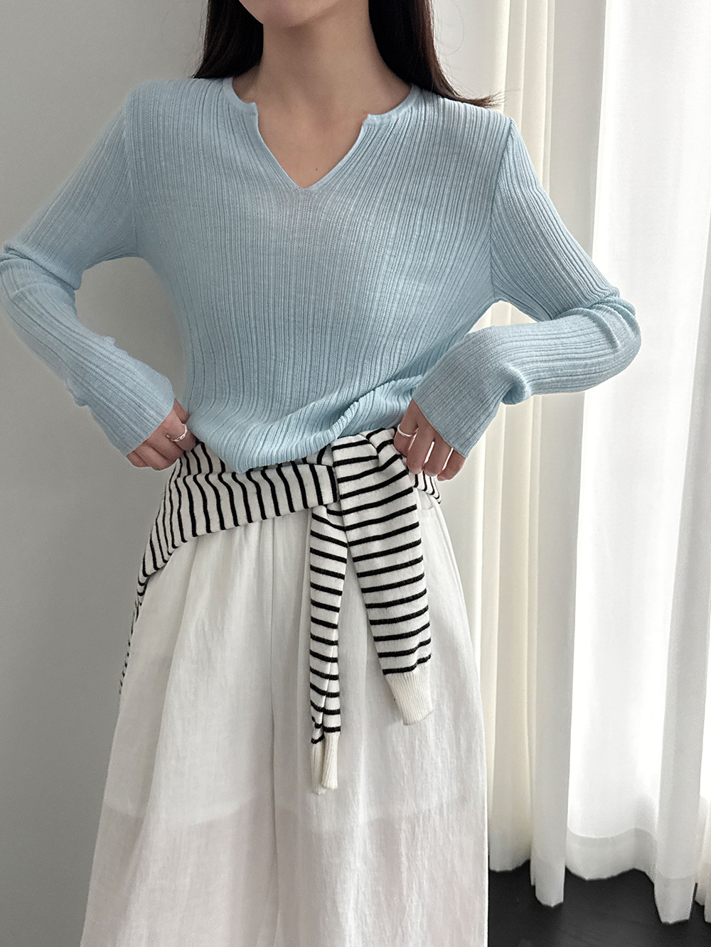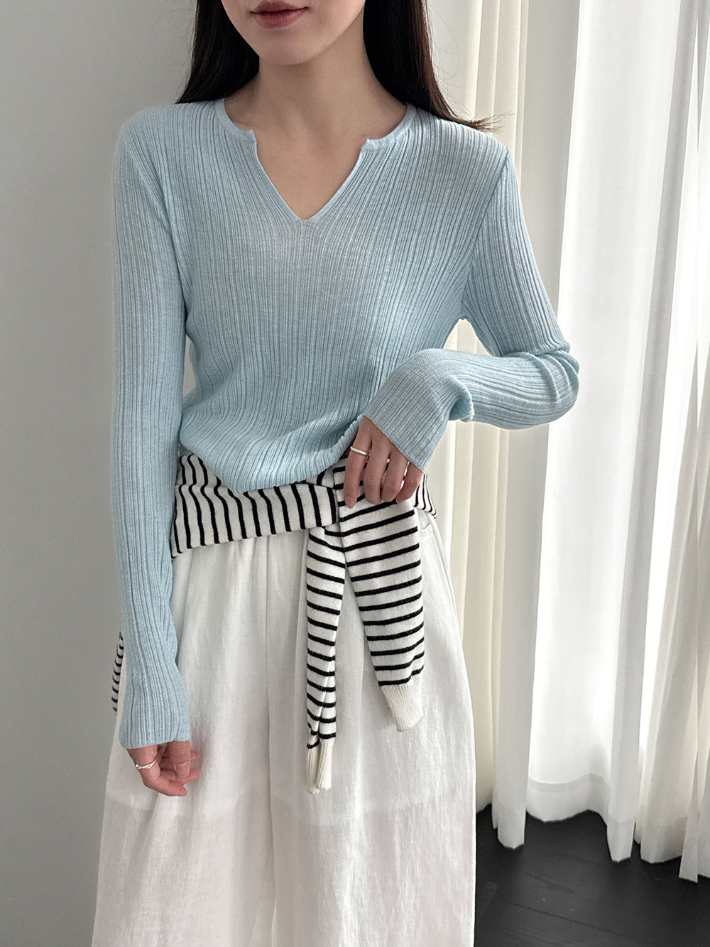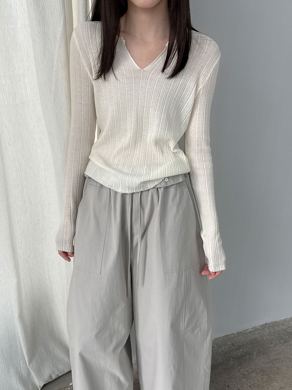 미니멀리즘 몸매 가꾸기 품격 Feifei 소매 양모 니트 맨위 여성 26 봄 새로운 다용도 티셔츠