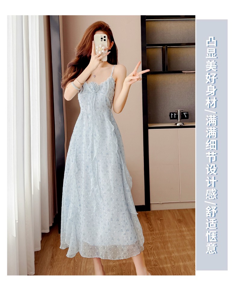 바다색 장미 차 휴식 프랑스식 드레스 2026 새로운 여성 여름 품격 쉬폰 슬립 드레스