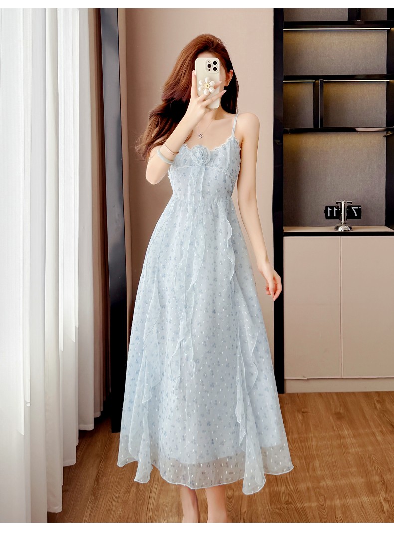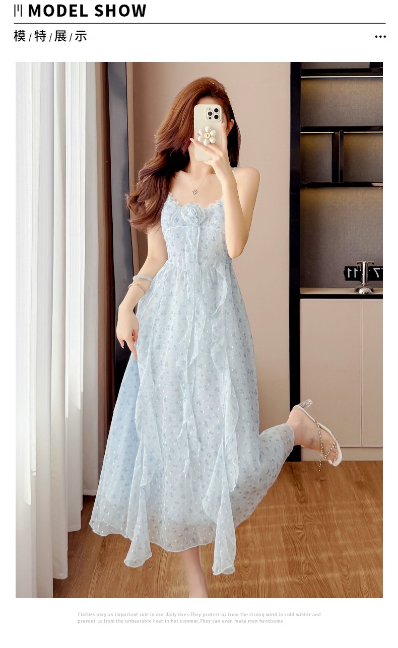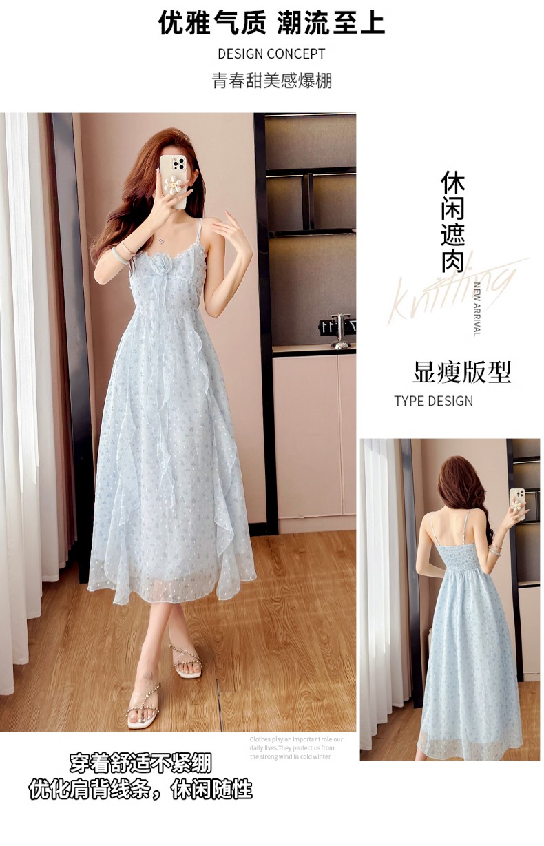 차 휴식 프랑스식 드레스 2026 새로운 여성 여름 부드러운 바람 프릴 요정 품격 쉬폰 슬립 롱 스커트