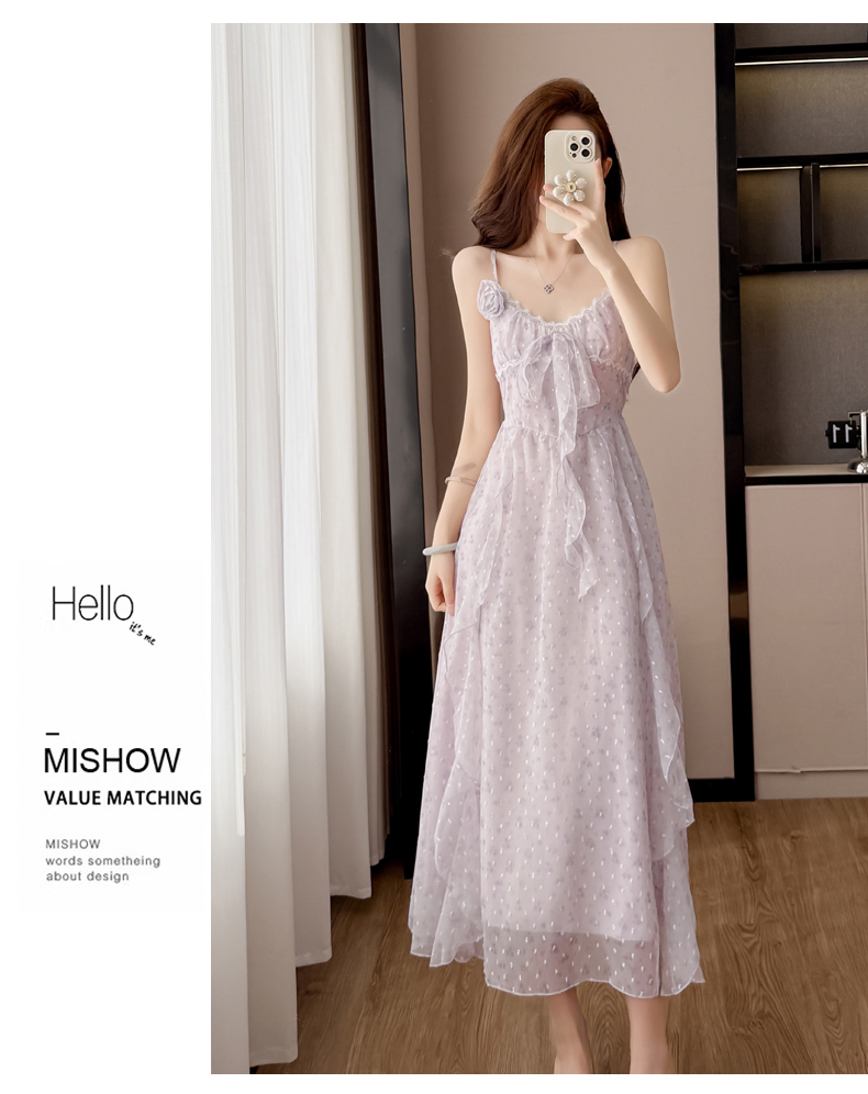 실사 정가 검은 건포도 보라색 순수한 욕망 품격 chao 디스플레이 화이트 행침 목 기타 착용 쉬폰 슬립 드레스 여름