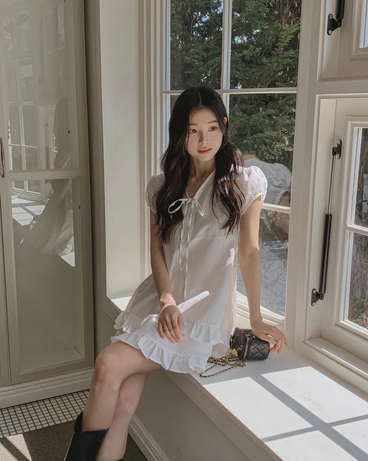 한국 chic 봄 새로운 프랑스식 빛 럭셔리 패션 품격 주름 장식 허리 수축 슬림해 보이는 드레스