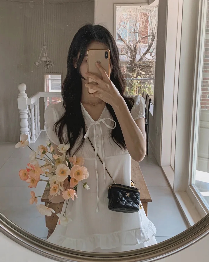 한국 봄 새로운 프랑스식 품격 부드러운 작은 대중 싱글 줄 버튼 다용도 치마 커튼 방귀 커튼 셔츠 맨위