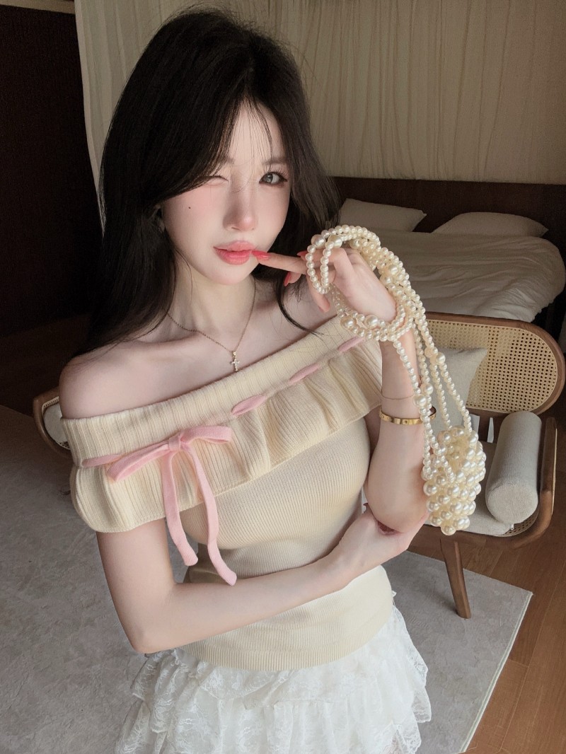 실사 정가 감소되지 않음 프랑스식 체크무늬 캐미솔 섹시함 디자인 센스 불규칙 망사 리본 맨위