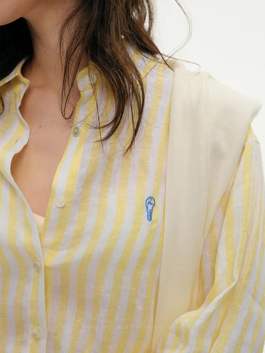 한 부서 디자인 센스 면 린넨 펌프 로프 허리 수축 스트라이프 여성 셔츠 봄 미니멀리즘 다용도 품격 다용도 루즈핏 맨위