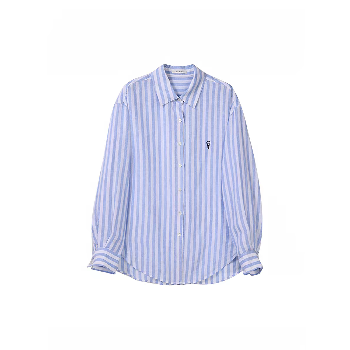 이른 봄 프랑스식 고급 센스 파란색 스트라이프 셔츠 맨위 여성 2026 새로운 루즈핏 자외선 차단 디자인 센스 셔츠 트렌디