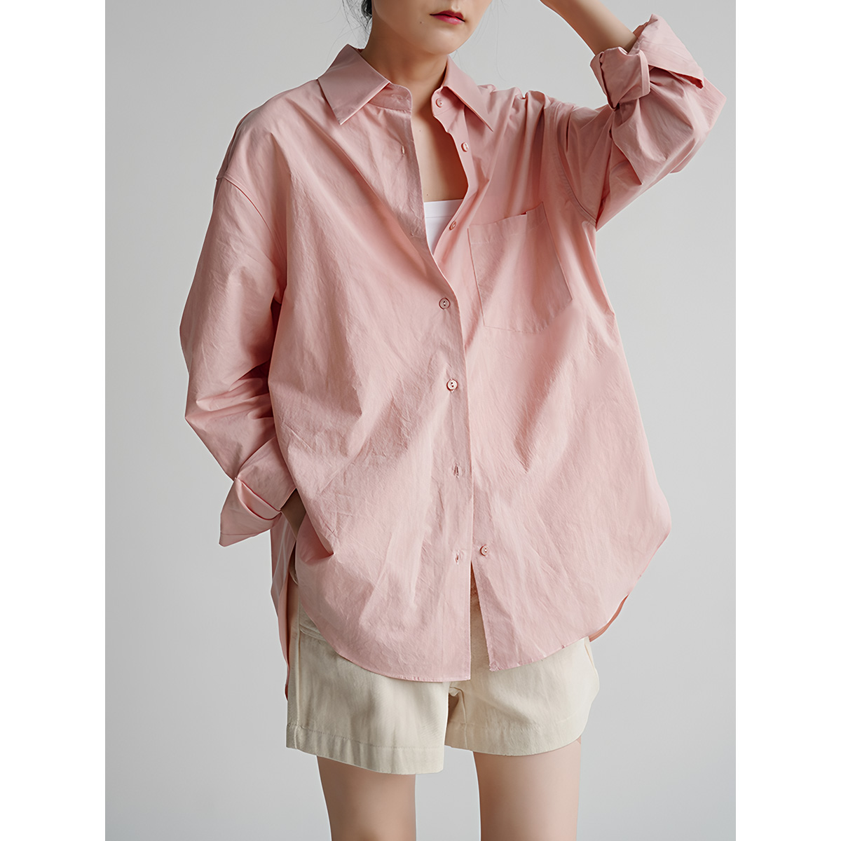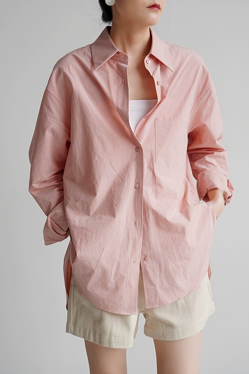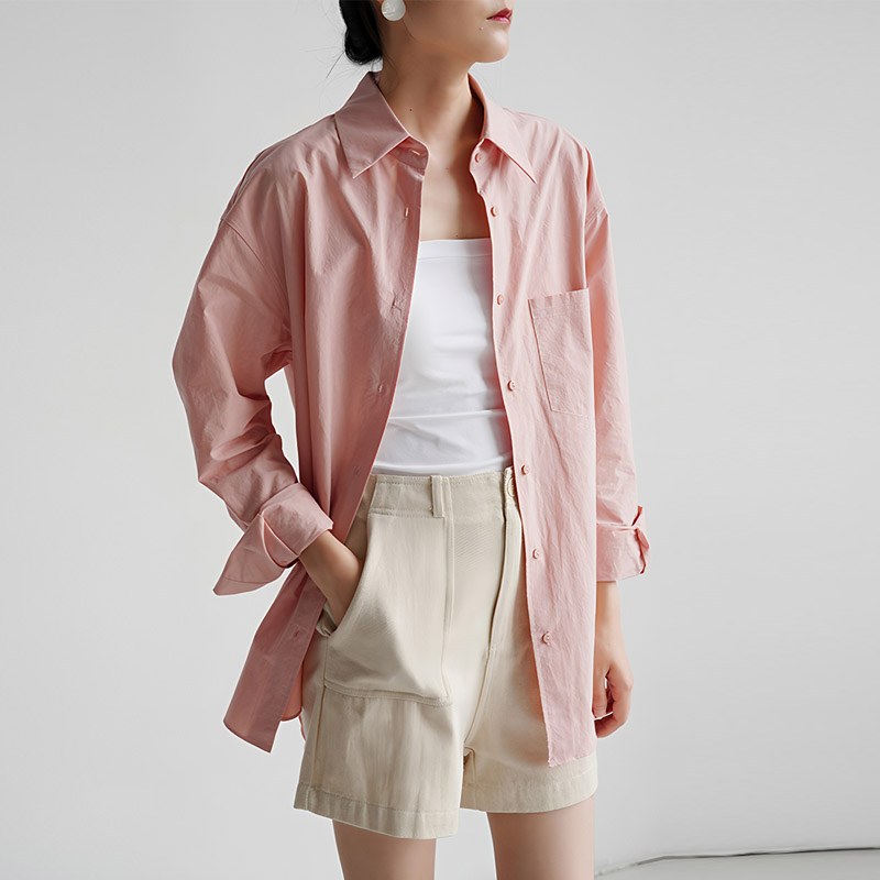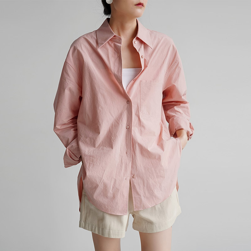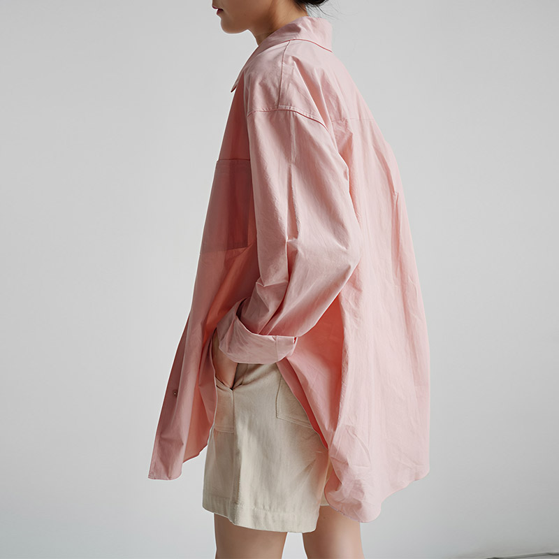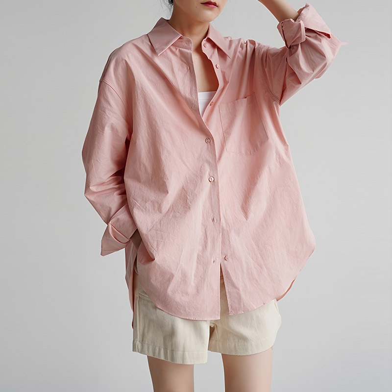 자유로움 미니멀리즘 출퇴근 품격 빛 분말 여성 셔츠 디자인 센스 남자 친구 바람 느긋한 루즈핏 작은 대중 맨위