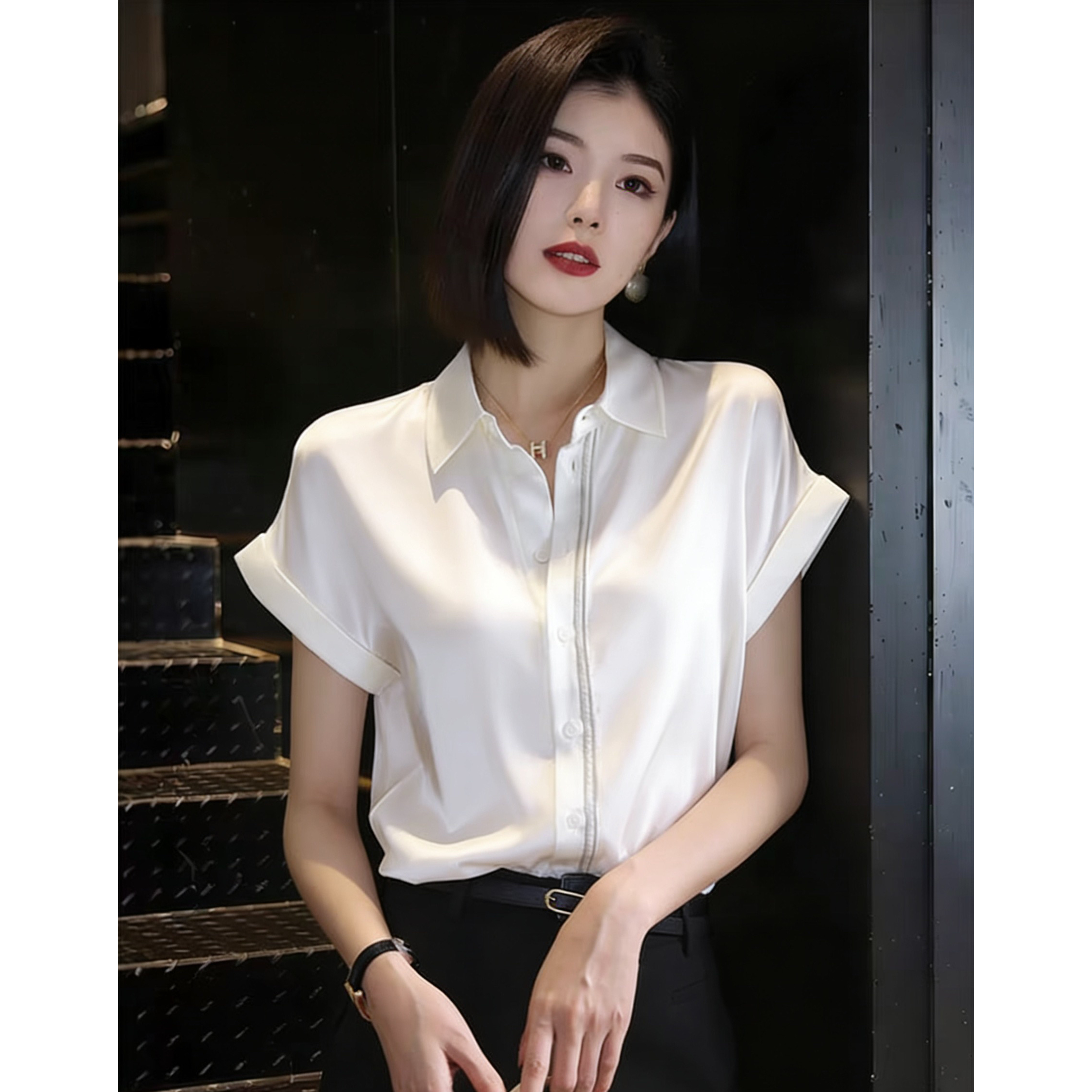 2026 화이트 여성 셔츠 여름 반팔 루즈핏 맨위 고급 품격 고급 센스 흰 셔츠 여성