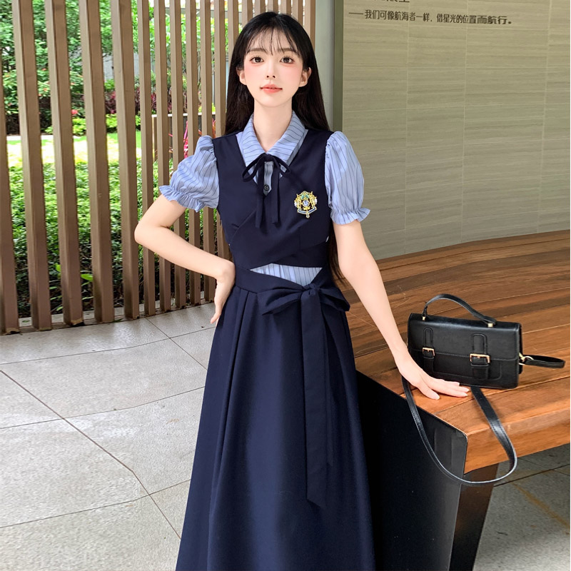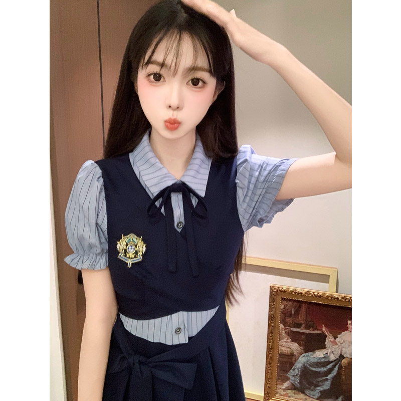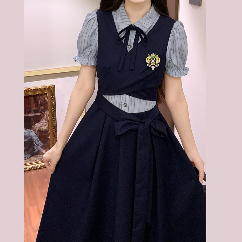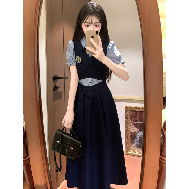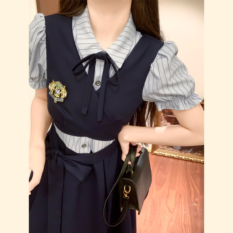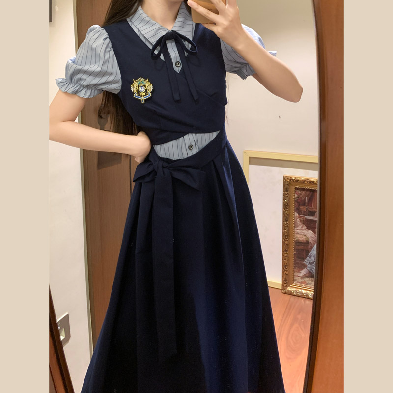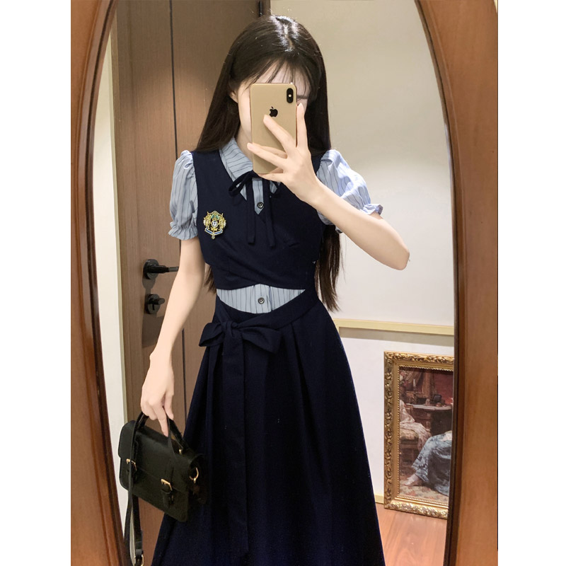실사 봄 새로운 착용 가져 가라. 여성 정식 경우 교 자본금 면접 학원 스타일 페이크 레이어드 디자인 센스 드레스