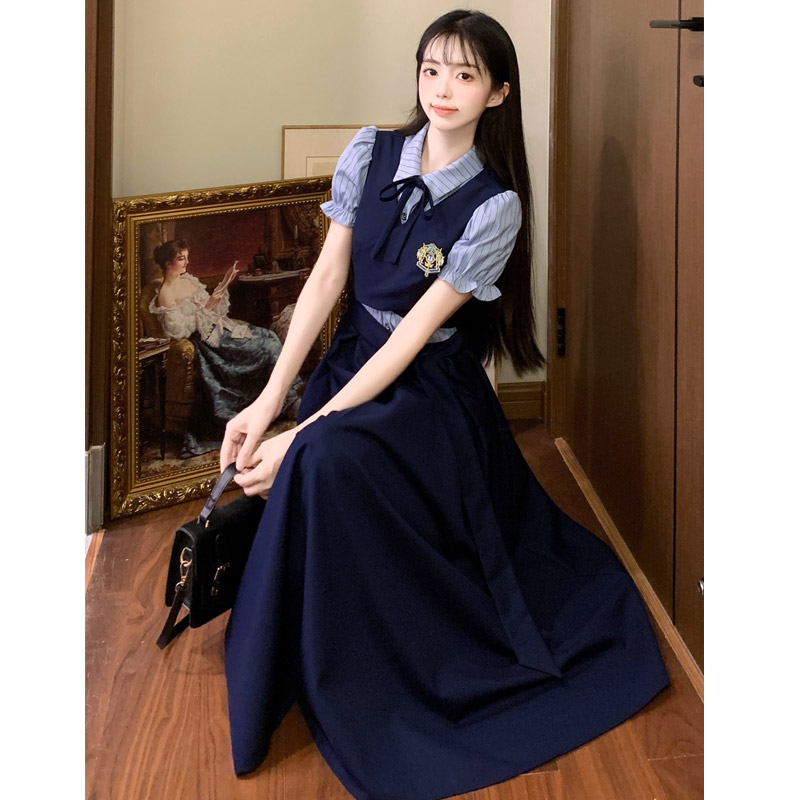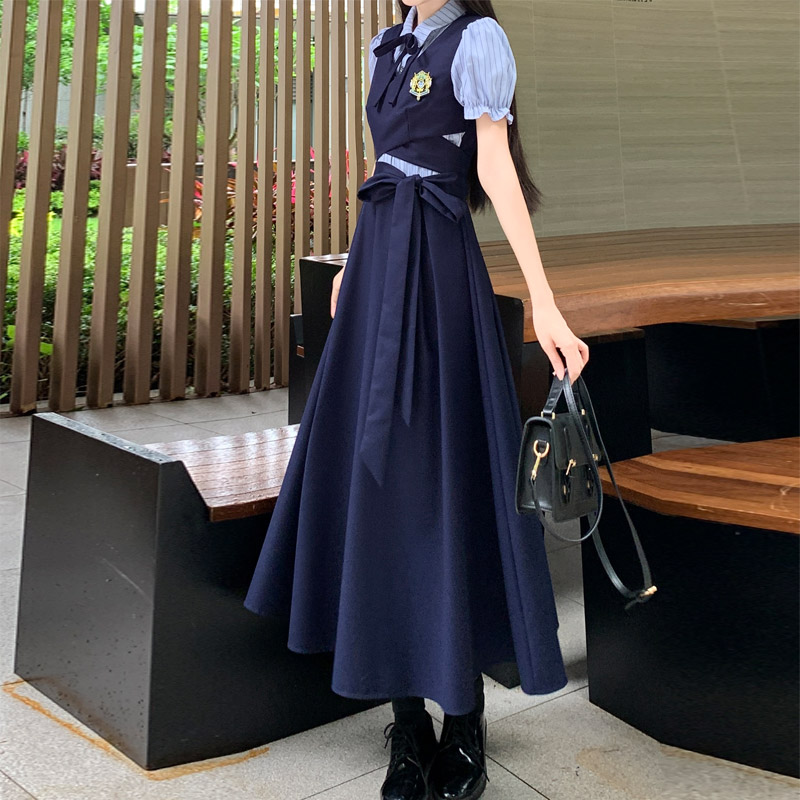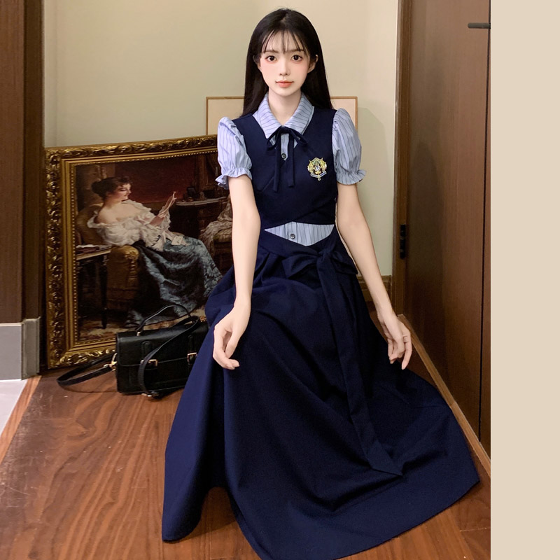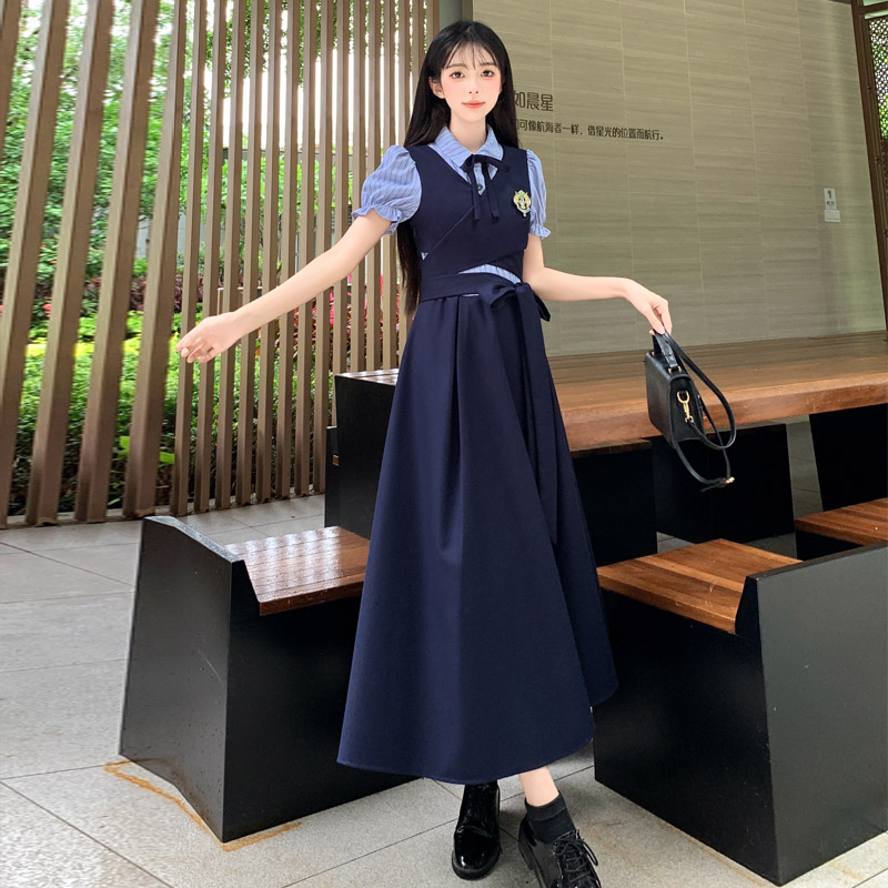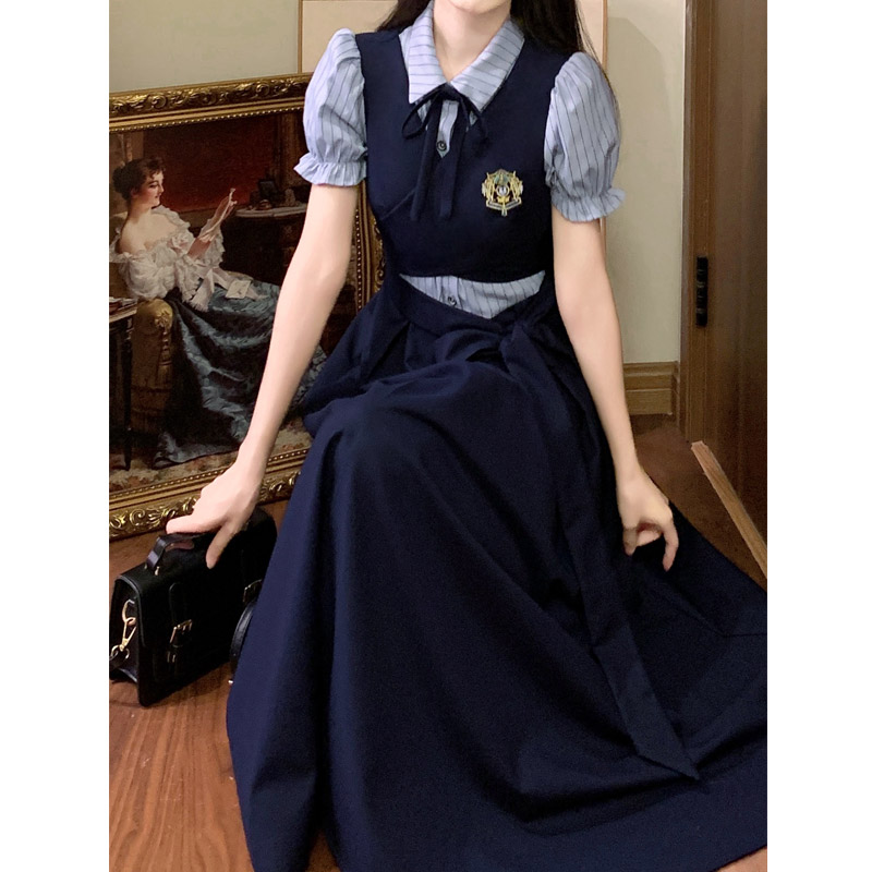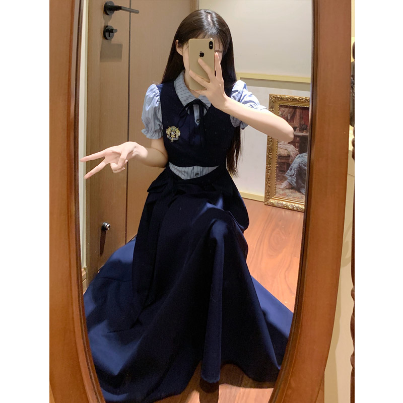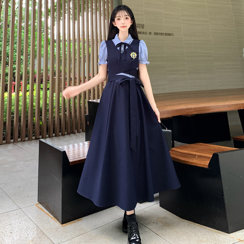 실사 봄 새로운 착용 가져 가라. 여성 정식 경우 교 자본금 면접 학원 스타일 페이크 레이어드 디자인 센스 드레스