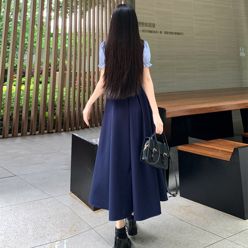 실사 프랑스식 레트로 여성 드레스 여름 허리 수축 슬림해 보이는 롱 스커트 빅 사이즈 지방 mm 신축성 레이스업 치마