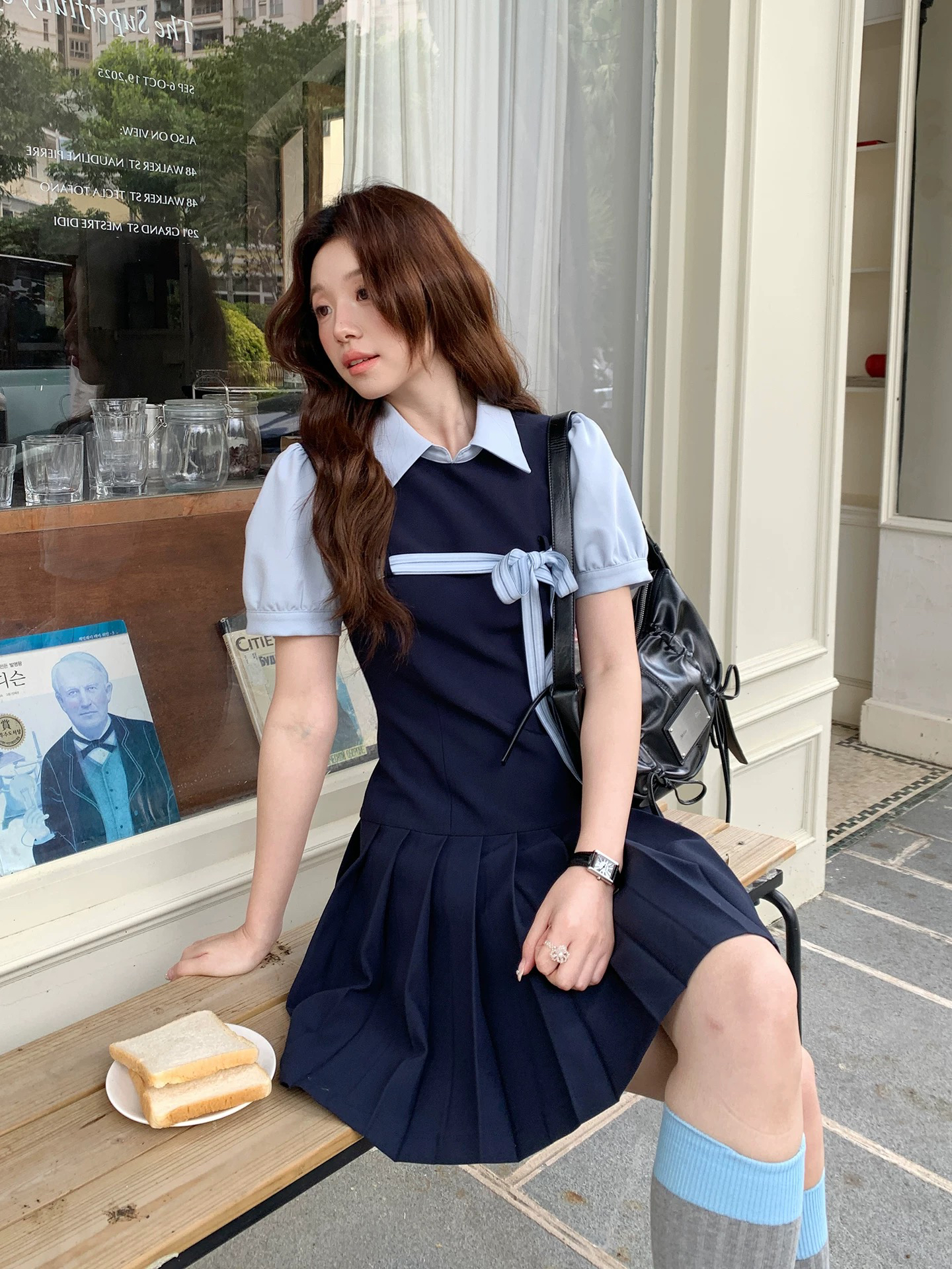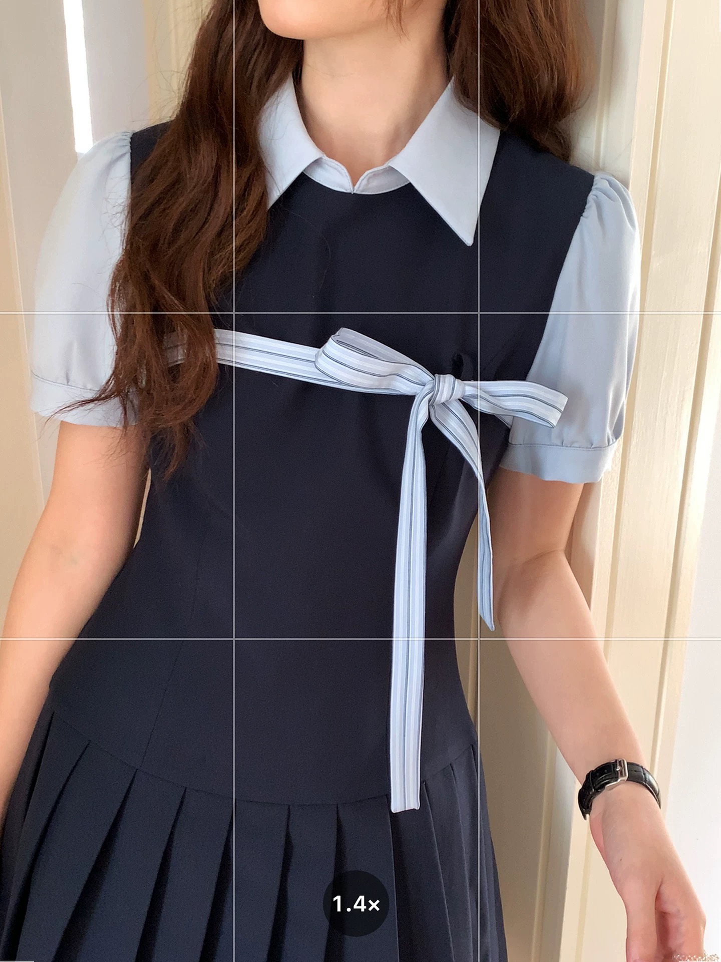 even 하나 원자바오 높음 지혜 miu 왕 한 부서 높음 지혜 센스 페이크 레이어드 miu 부서 드레스 학원 스타일 플리츠 짧은