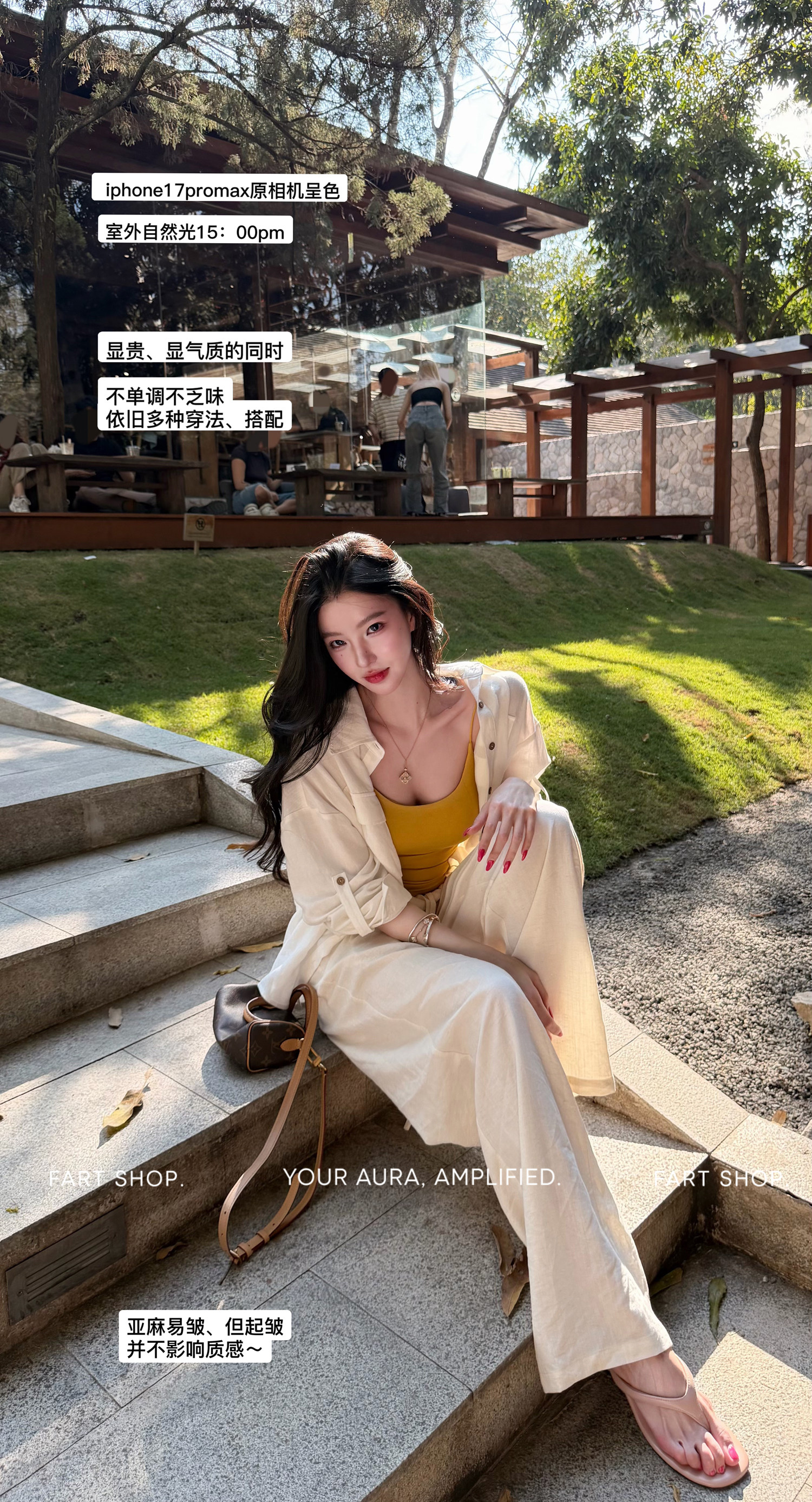 봄 아마 루즈핏 화이트 여성 셔츠 봄 여름 느슨함 맨위 조끼 캐주얼 바지 3종 세트