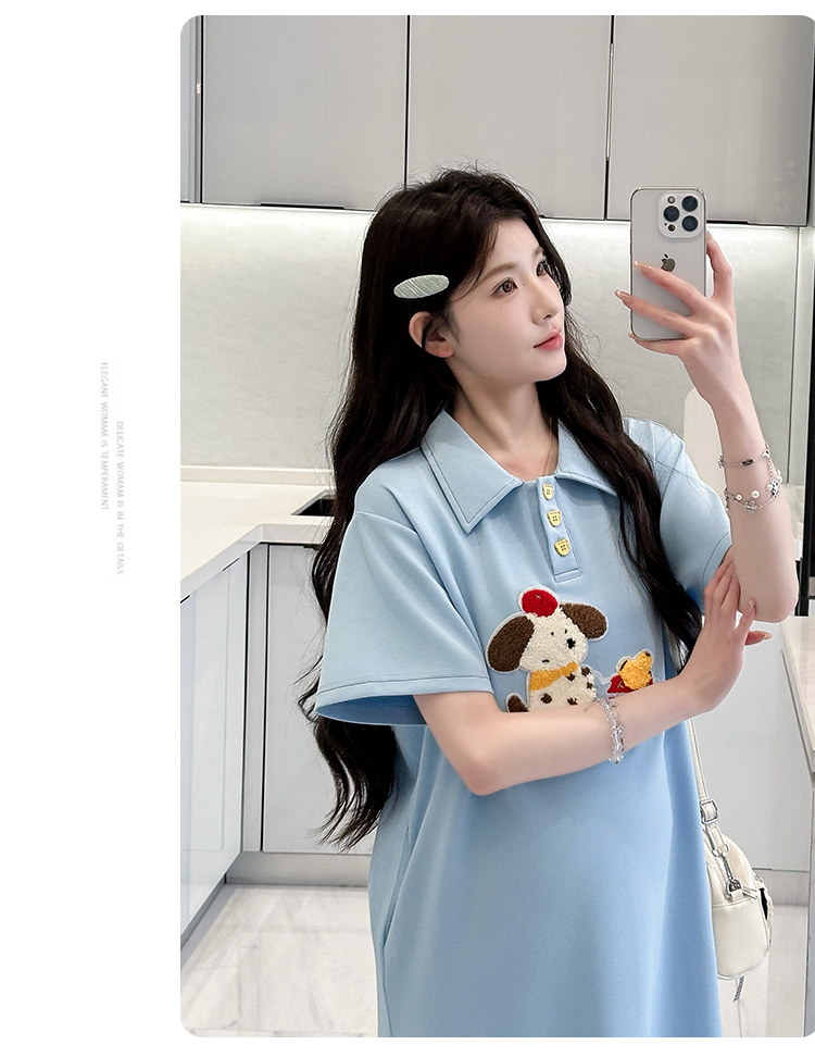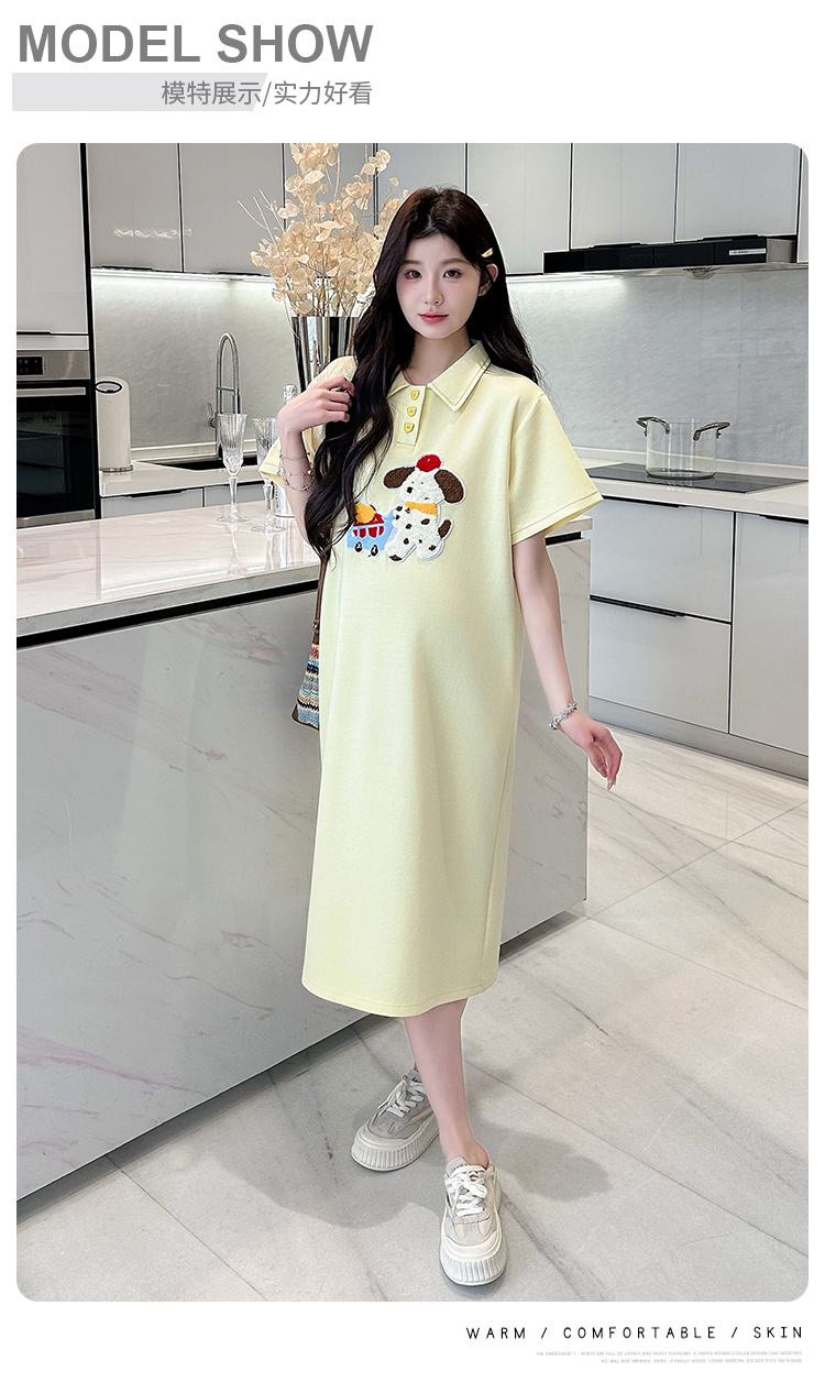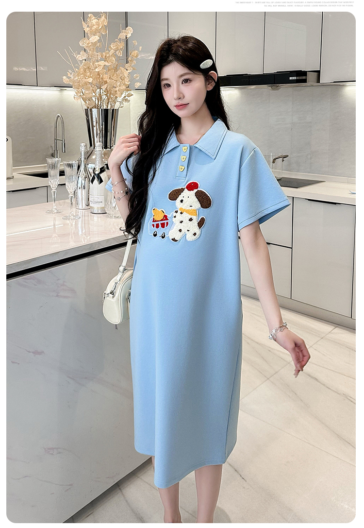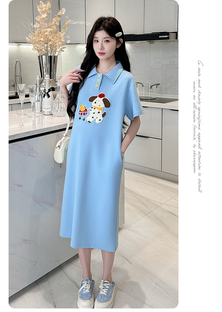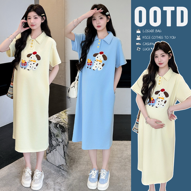 실사 지금 임산부 여름 드레스 206 새로운 패션 자수 POLO 칼라 외국 가스 세련된 강아지 드레스