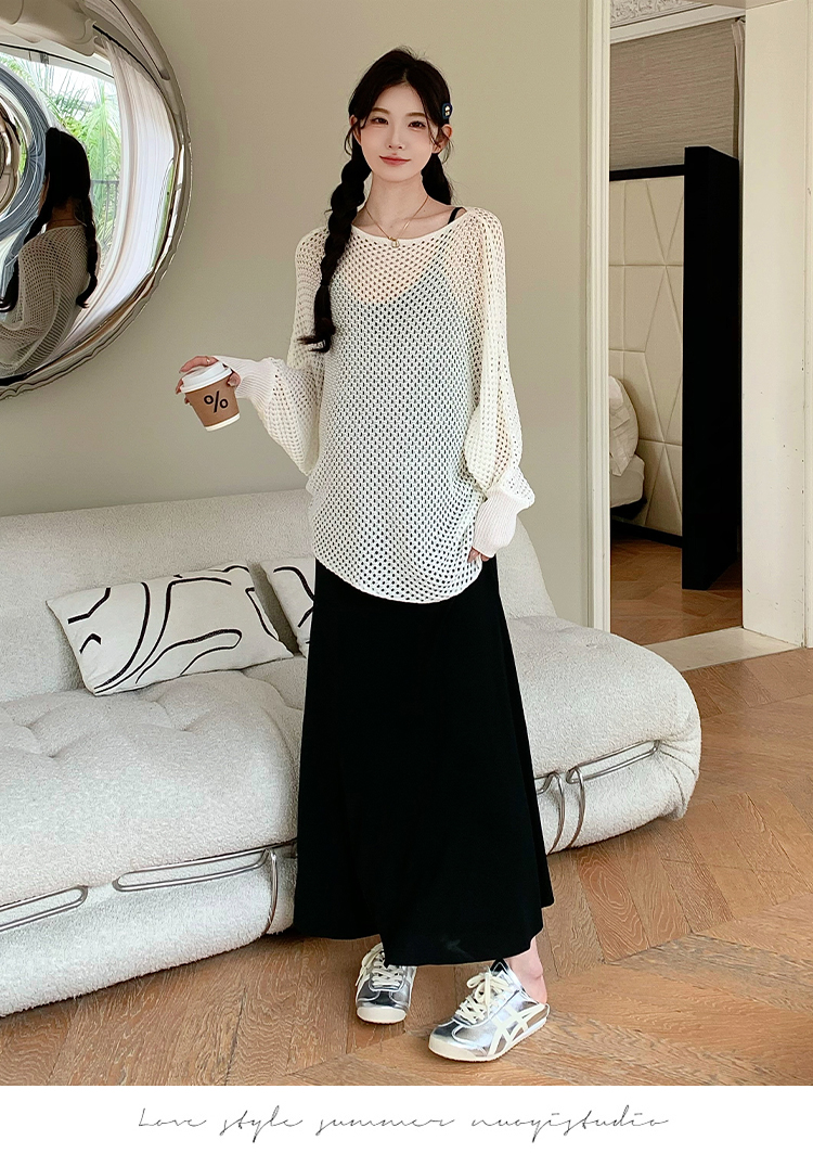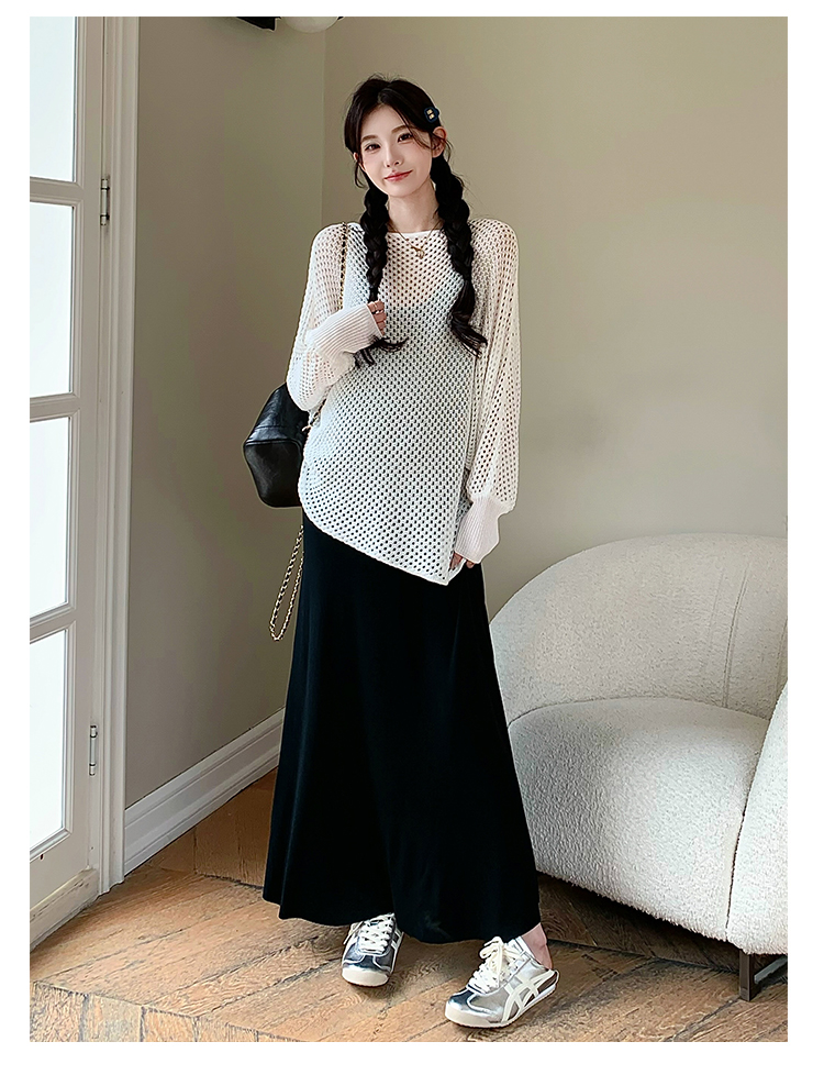실사 한국 스타일 루즈핏 투피스 세트 초박형 니트 태양 보호 셔츠 슬립 드레스 느긋한 바람 임산부 투피스 세트