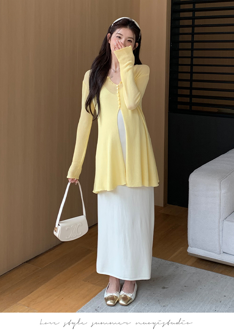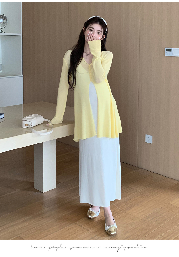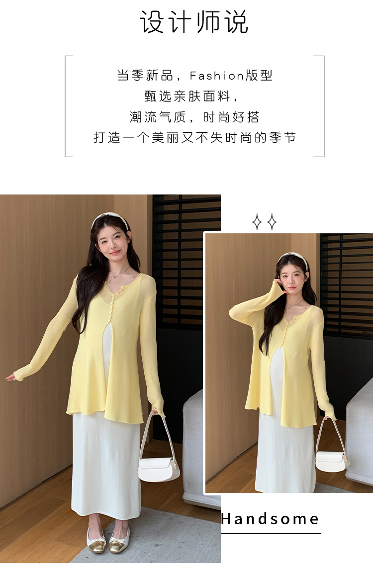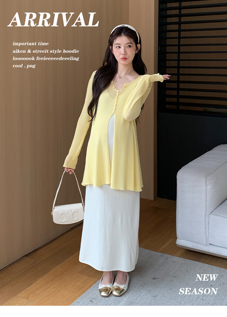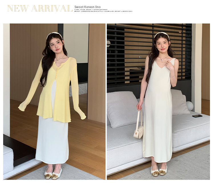 실사 인터넷 유명인 출산 착용 자외선 차단 패션 슬림해 보이는 슬립 드레스 품격 임산부 투피스 세트 임산부 세트