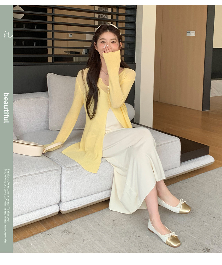 실사 선물 물품 새로운 한국 스타일 레이스 외국 가스 휴가 바람 슬립 드레스 자외선 차단 오픈 가디건 투피스 세트 임산부 세트