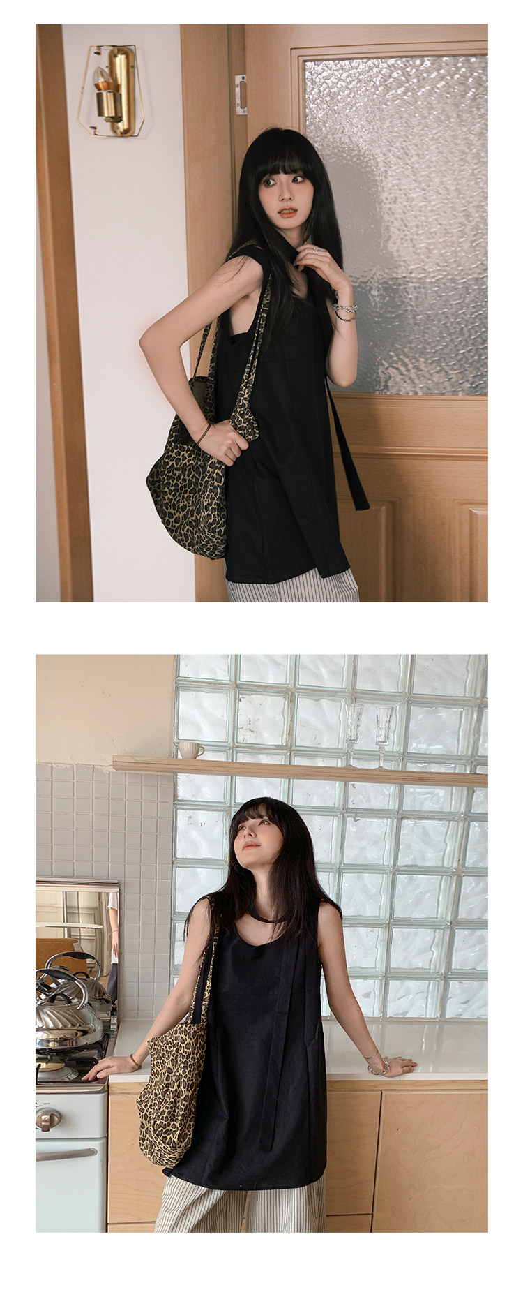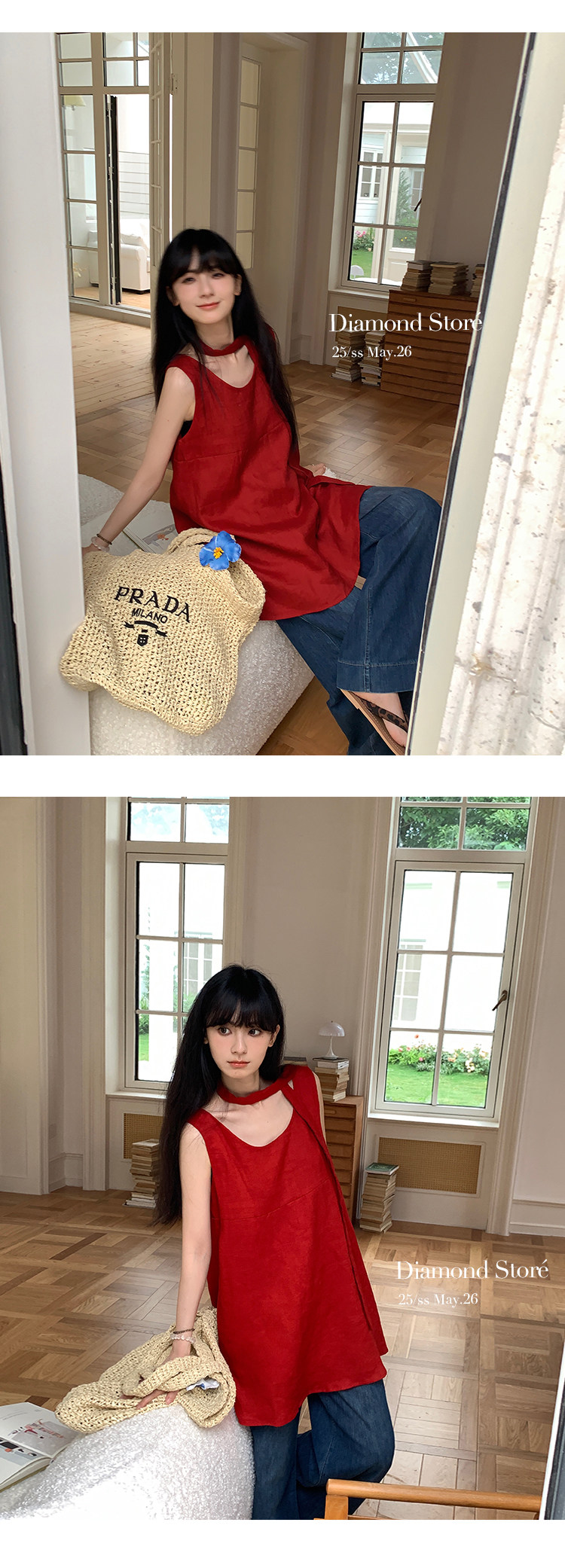 단색 라운드 넥 민소매 루즈핏 캐주얼 드레스
