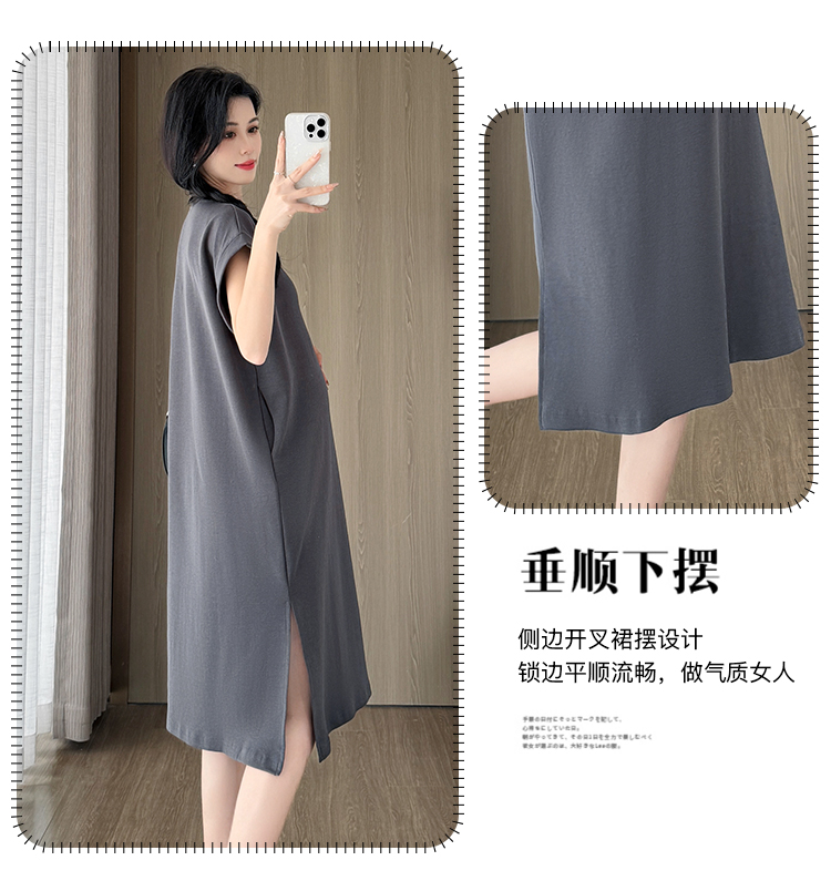 실사 2026 여름 새로운 임산부 조끼 원피스 라운드 넥 맨위 투피스 세트 루즈핏 표지 고기 세트