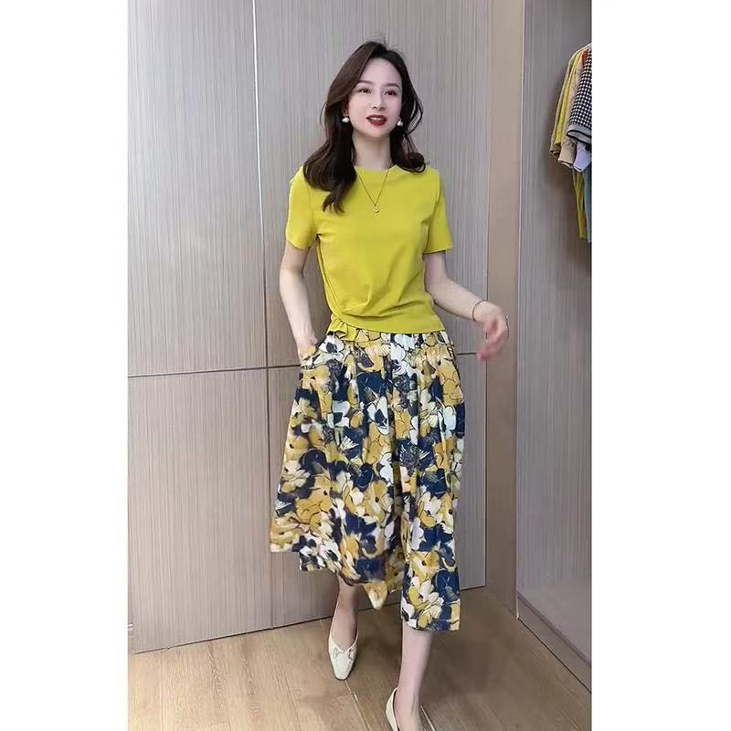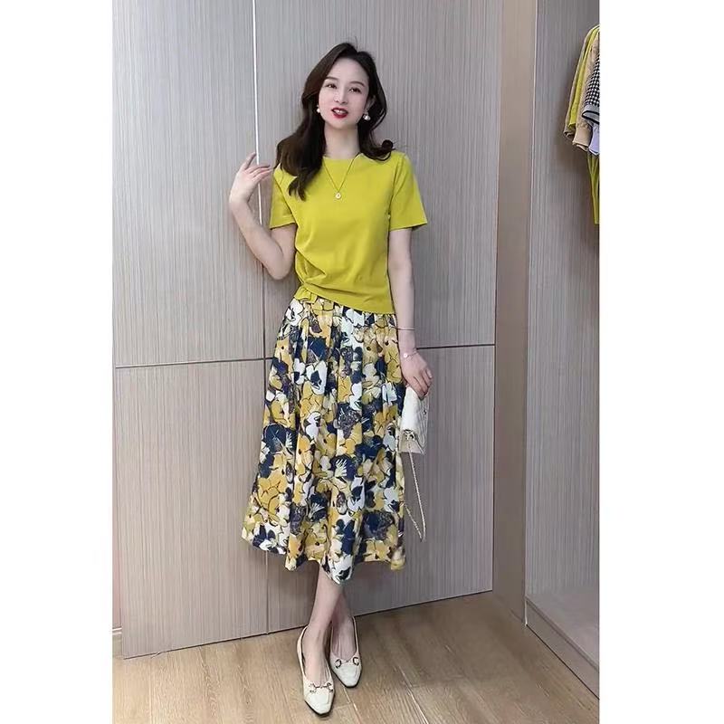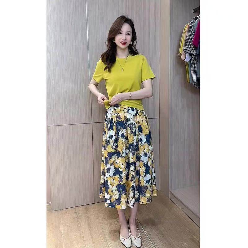 2026 문예 국풍 맨위 꽃무늬 반 스커트 품격 세트 여름 새로운