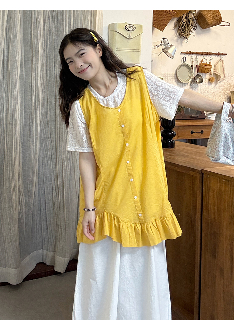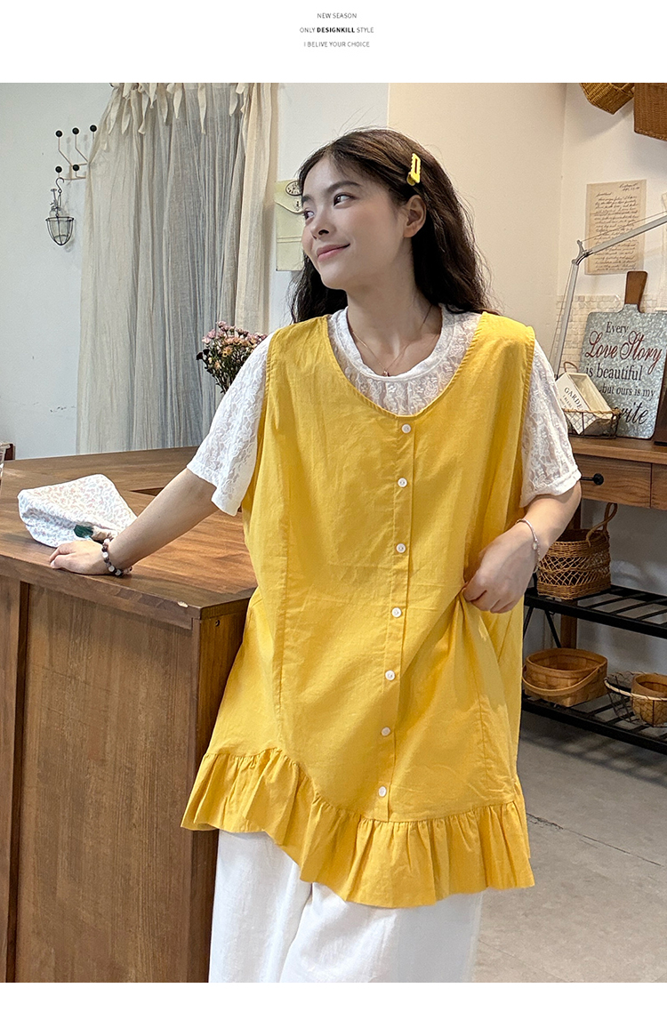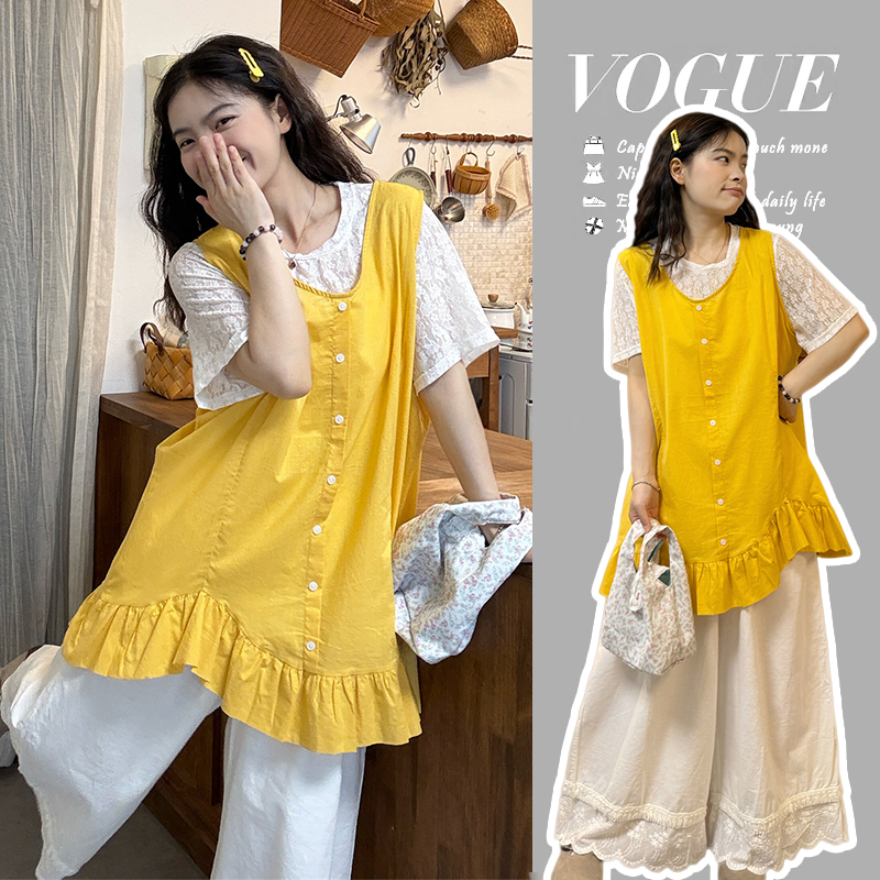 실사 2026 여름 새로운 임산부 조끼 원피스 라운드 넥 맨위 투피스 세트 루즈핏 표지 고기 세트
