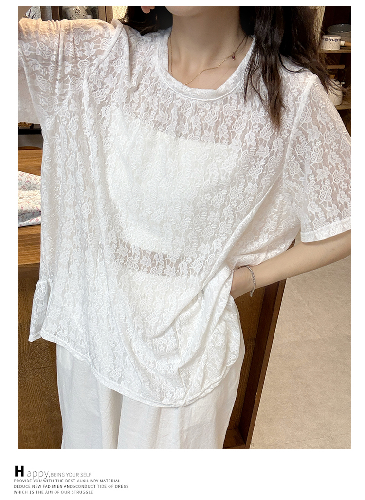실사 2026 여름 드레스 새로운 레이스 레이스 블라우스 조끼 반팔 티셔츠 레이스 치마 출산 착용 3종 세트
