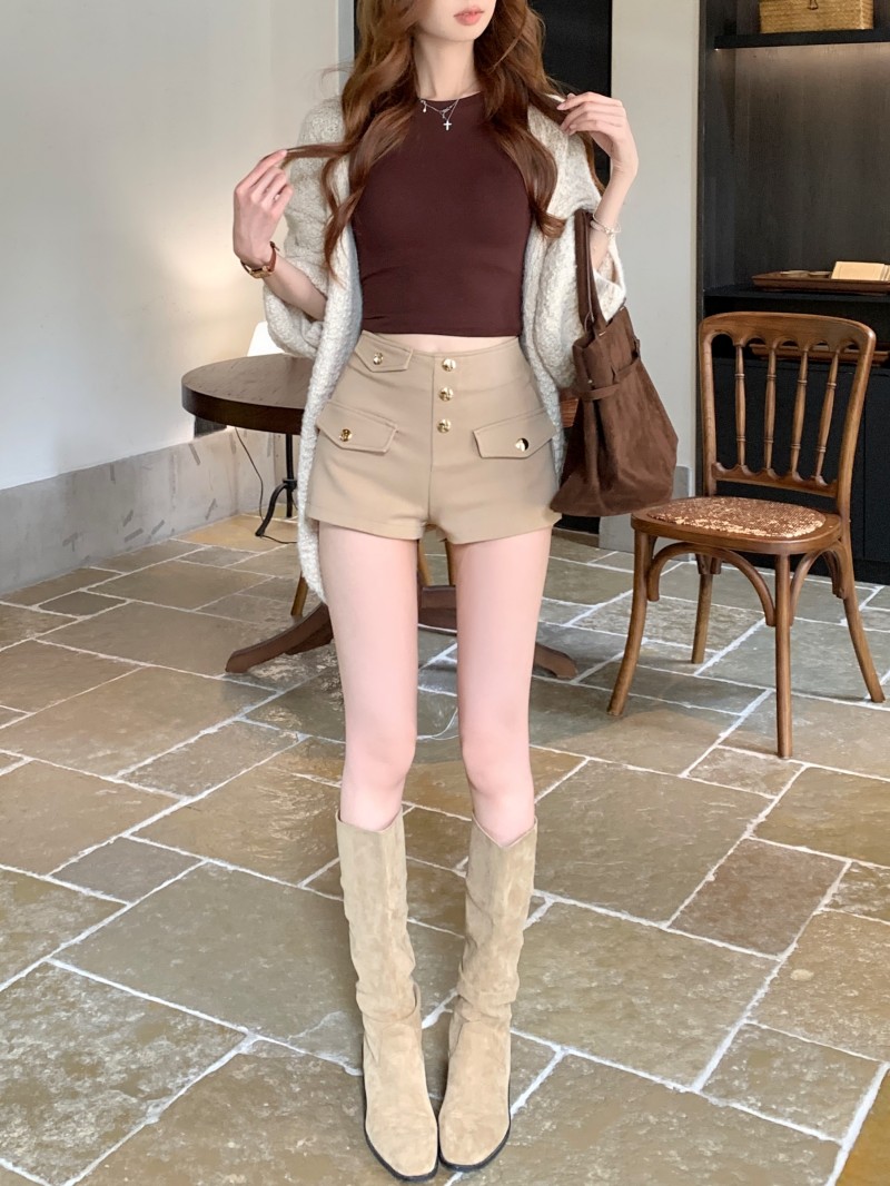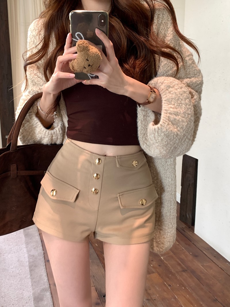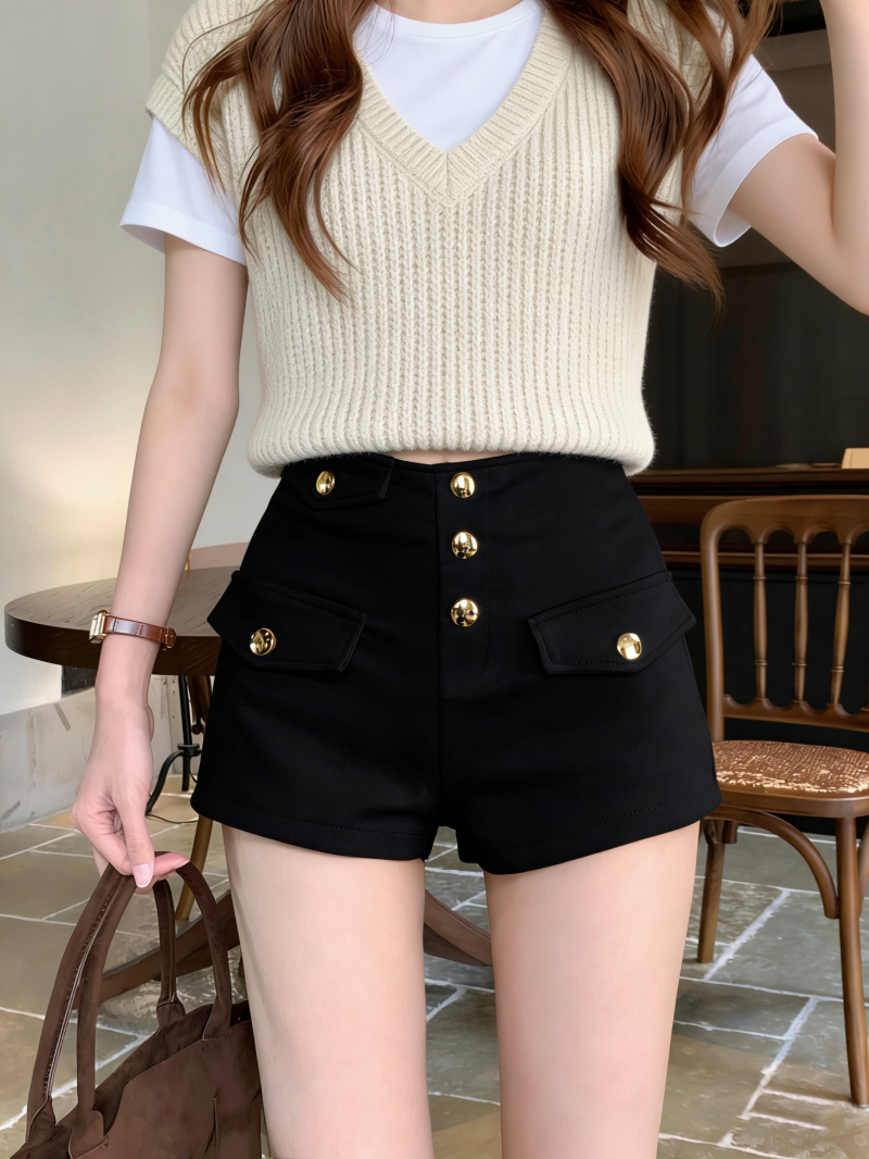 실사 정가 감소되지 않음 핫걸 반바지 하이웨이스트 슬림해 보이는 한 마디 다용도 캐주얼 핫 바지