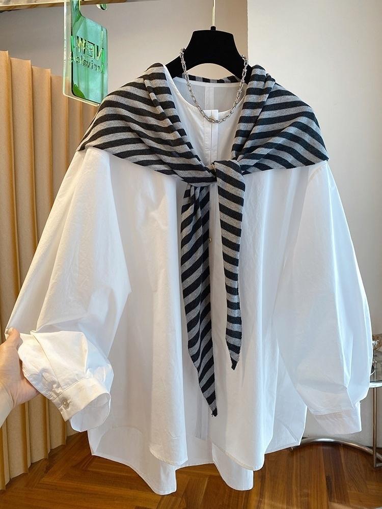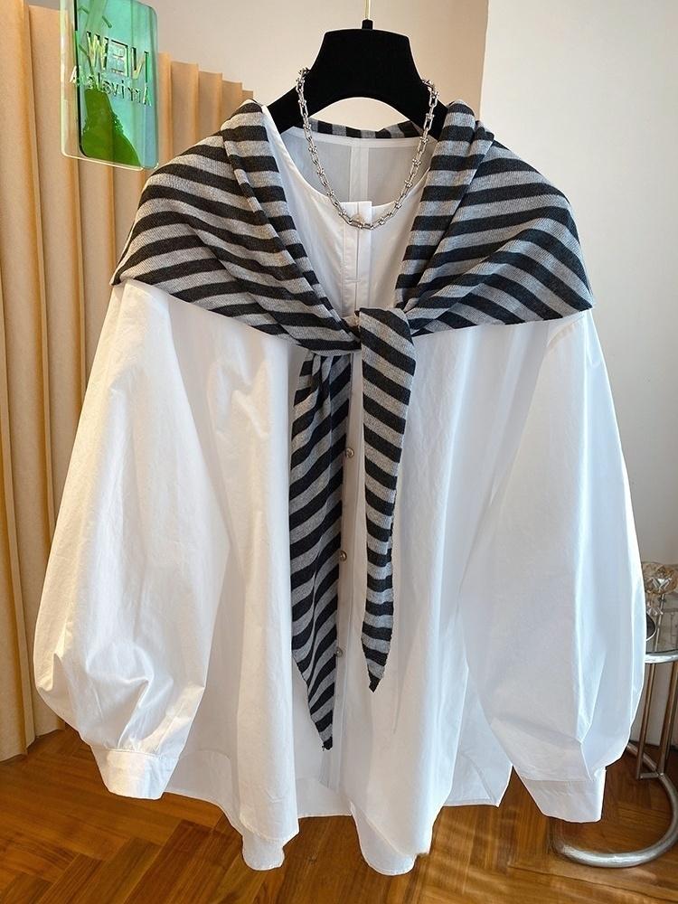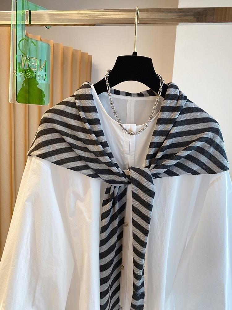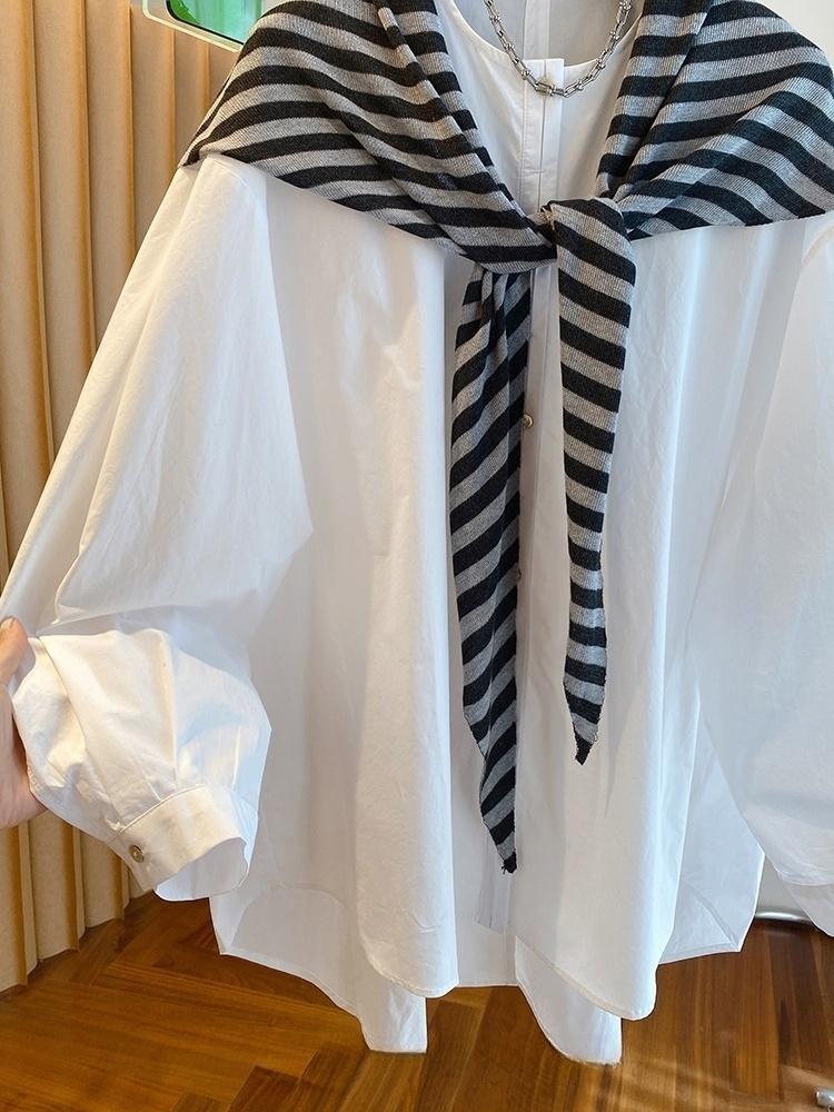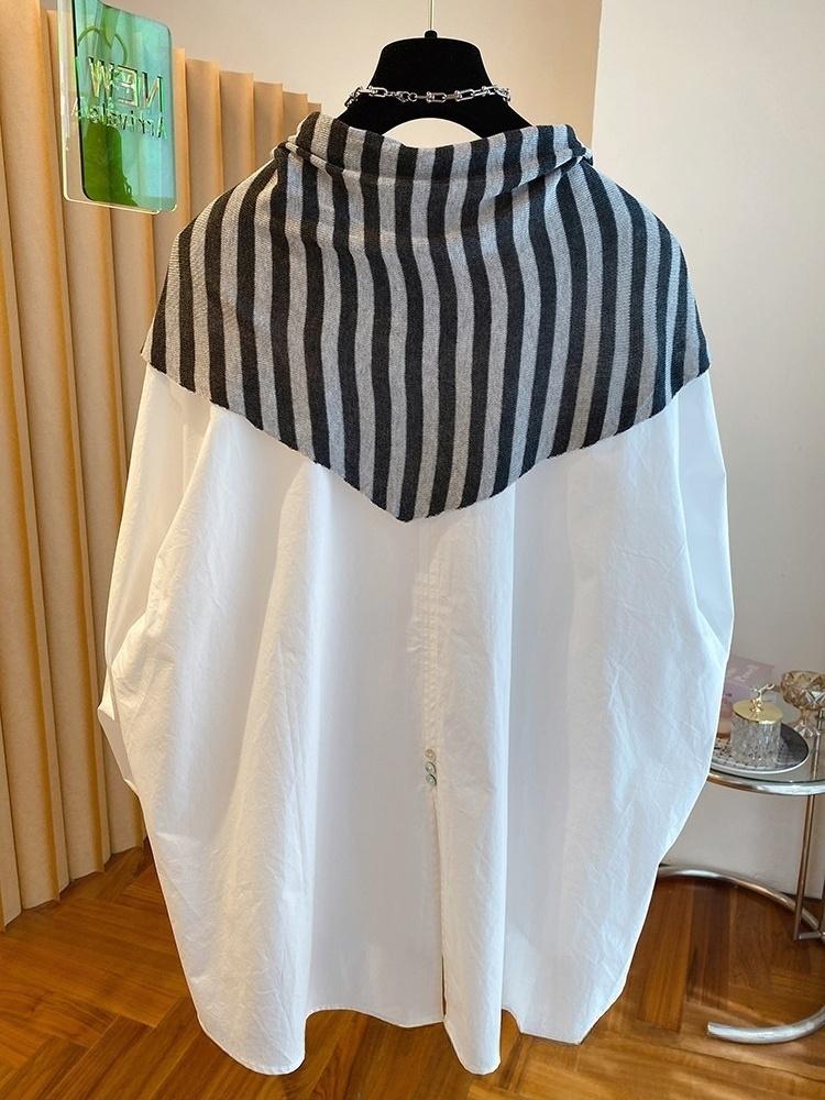 고급 센스 스트라이프 숄 긴팔 여성 셔츠 2026 새로운 봄 루즈핏 대 에디션 중간 길이 표지 엉덩이 맨위