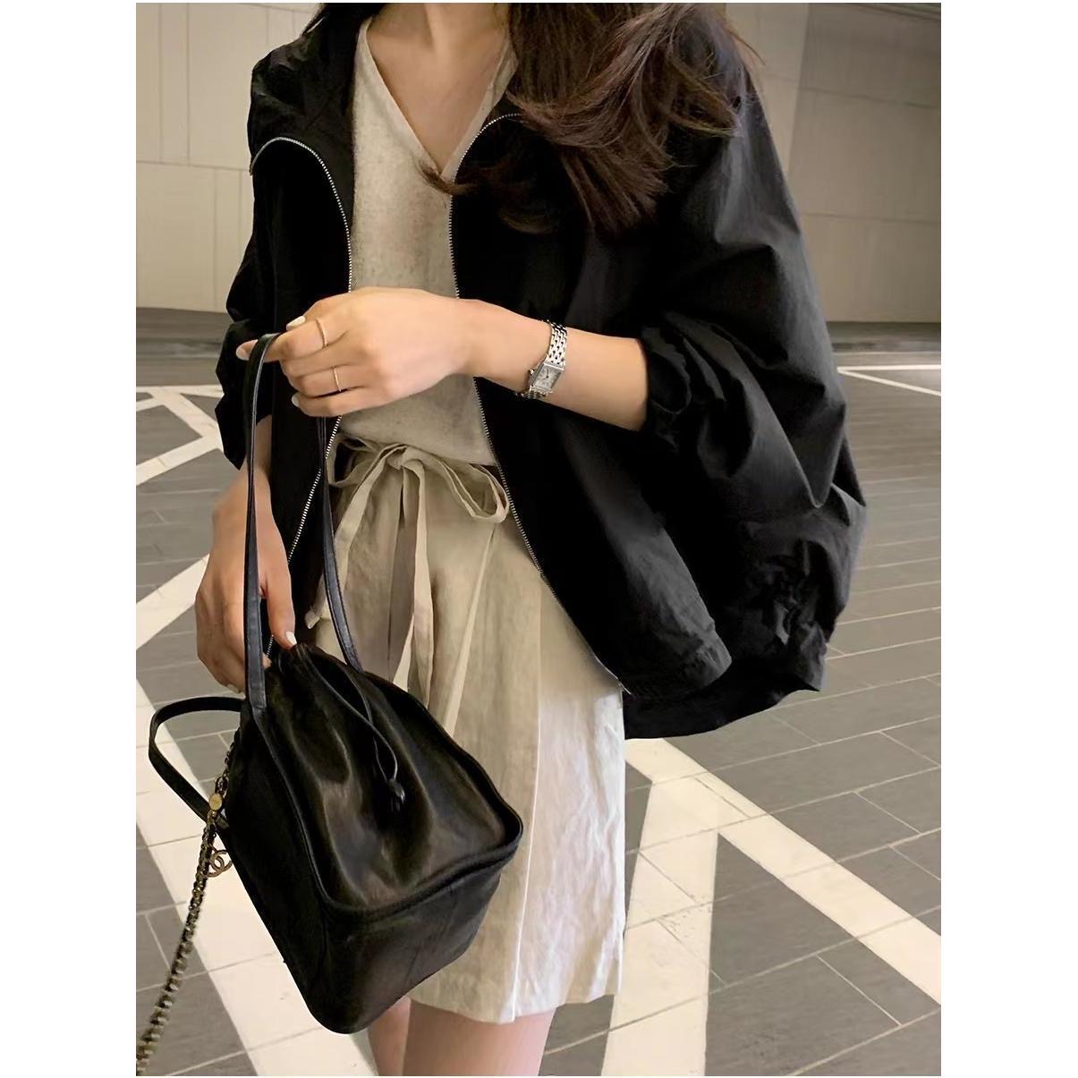 여름 한국 스타일 루즈핏 슬림해 보이는 다용도 레트로 여성 코트 2026 새로운 학생 캐주얼 긴팔 자외선 차단 의류 맨위