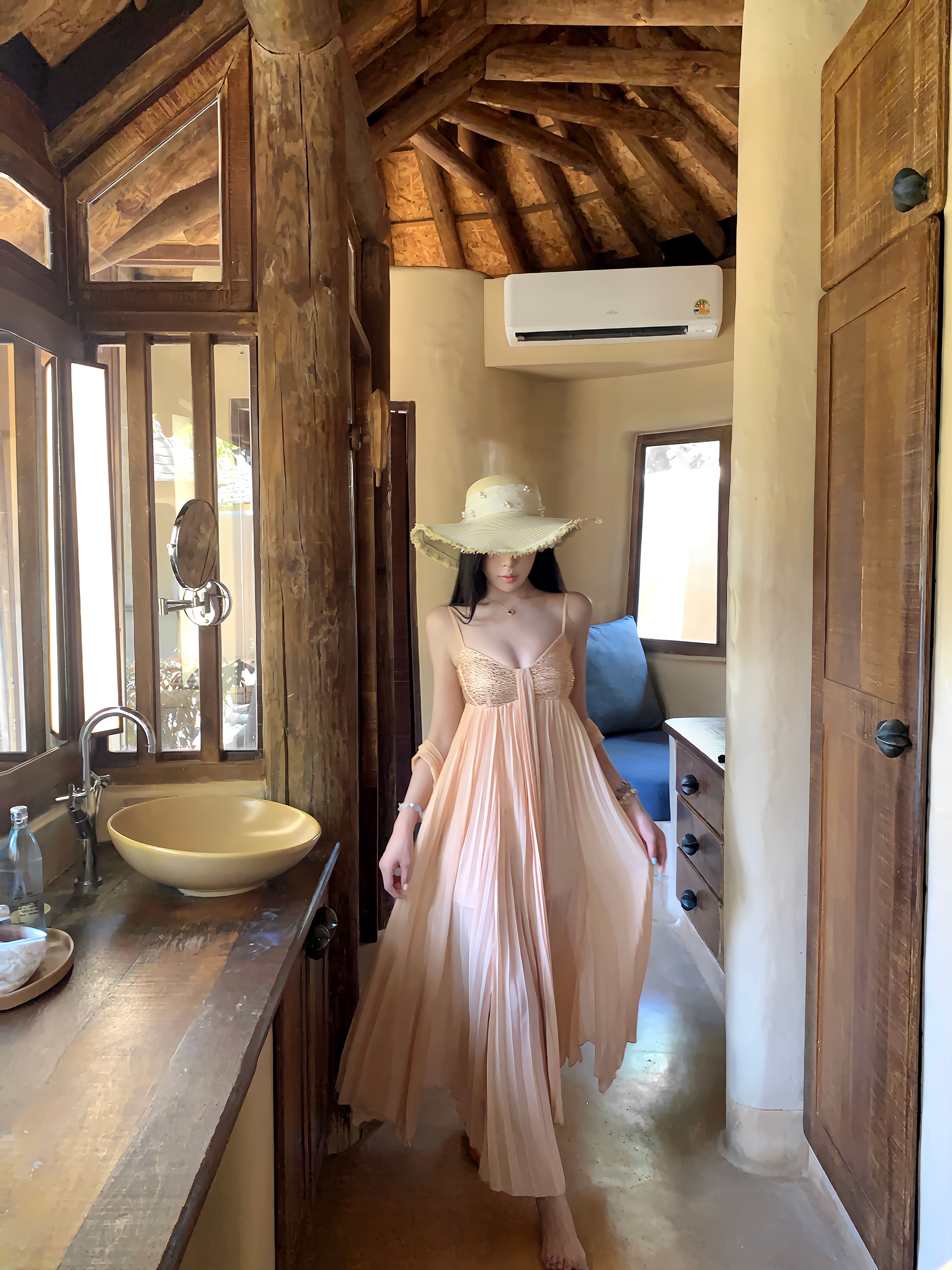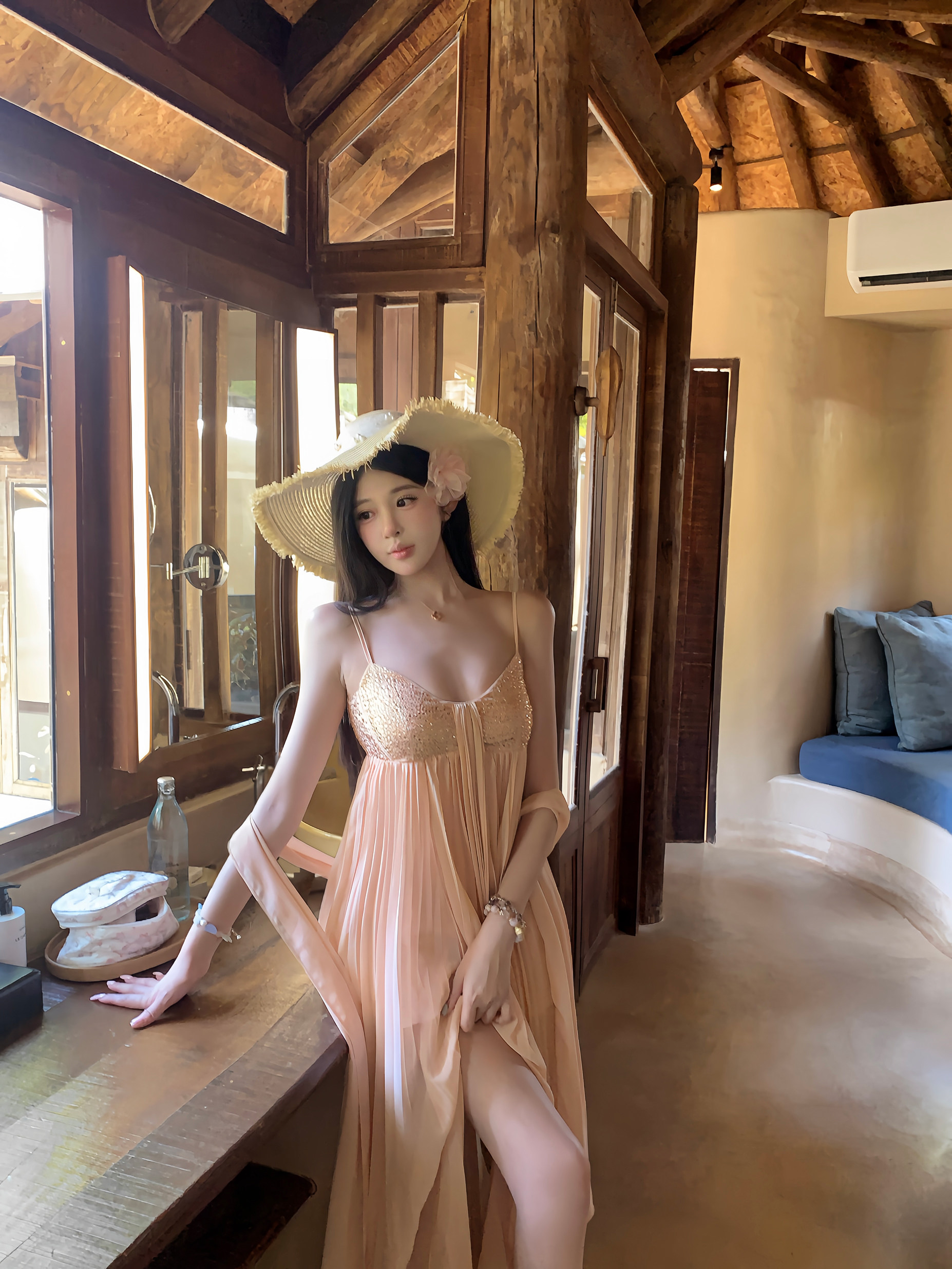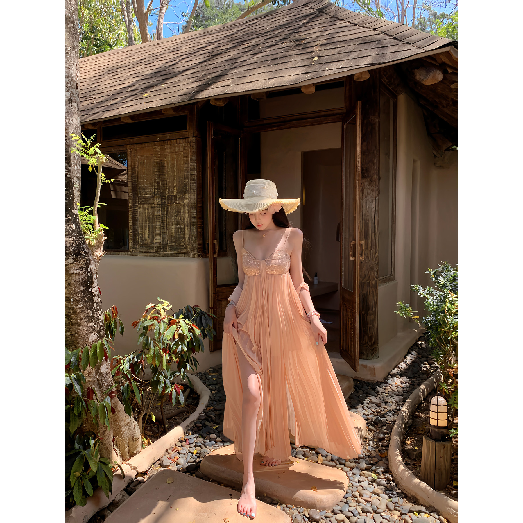 sisi jiang 矜贵 분말 훈련 빛 럭셔리 소녀 명문 여성 바람 허리 수축 자르기 슬림해 보이는 그라데이션 드레스
