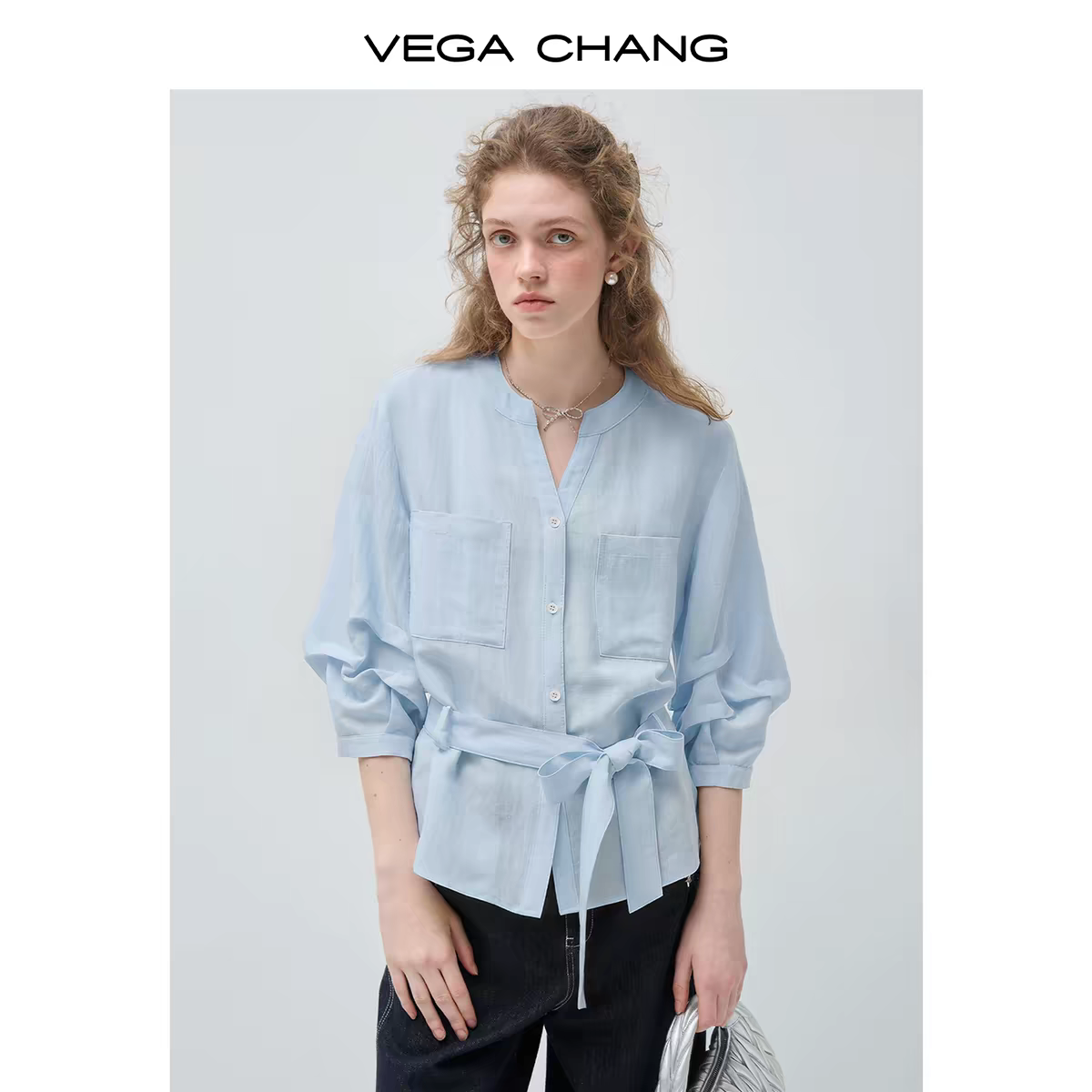 한 부서 파란색 아마 자외선 차단 여성 셔츠 봄 여름 긴팔 루즈핏 펌프 로프 디자인 센스 작은 대중 쇼트 스타일 셔츠 맨위
