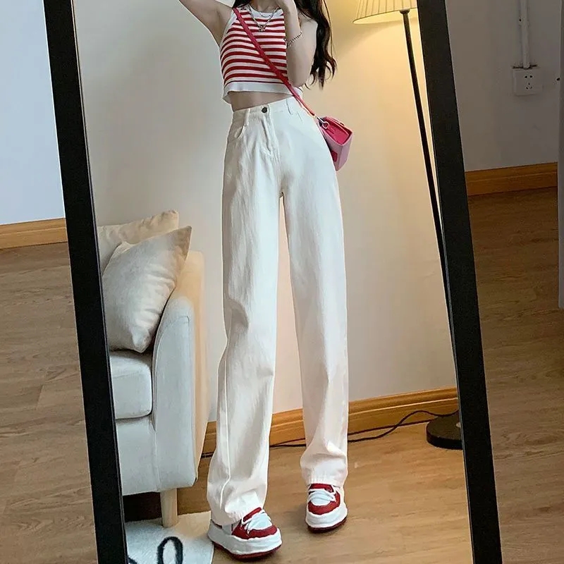 높은 품질 원본 봄 아메리칸 와이드 레그 팬츠 아이들 트렌디 도루 센스 루즈핏 스트레이트 팬츠 하이웨이스트 슬림해 보이는 다용도 캐주얼 바지