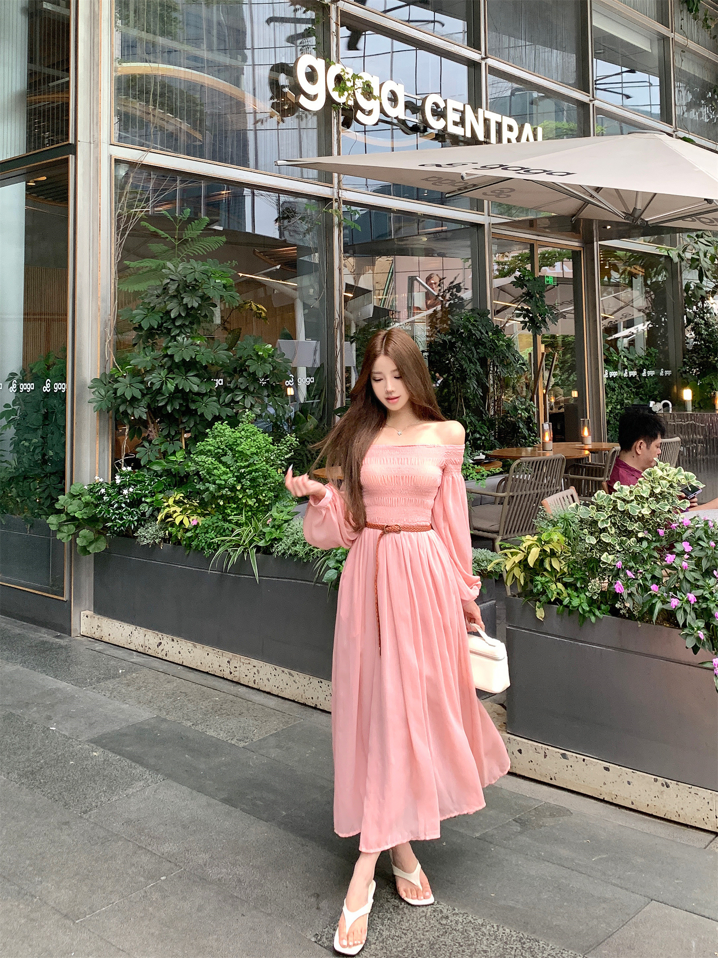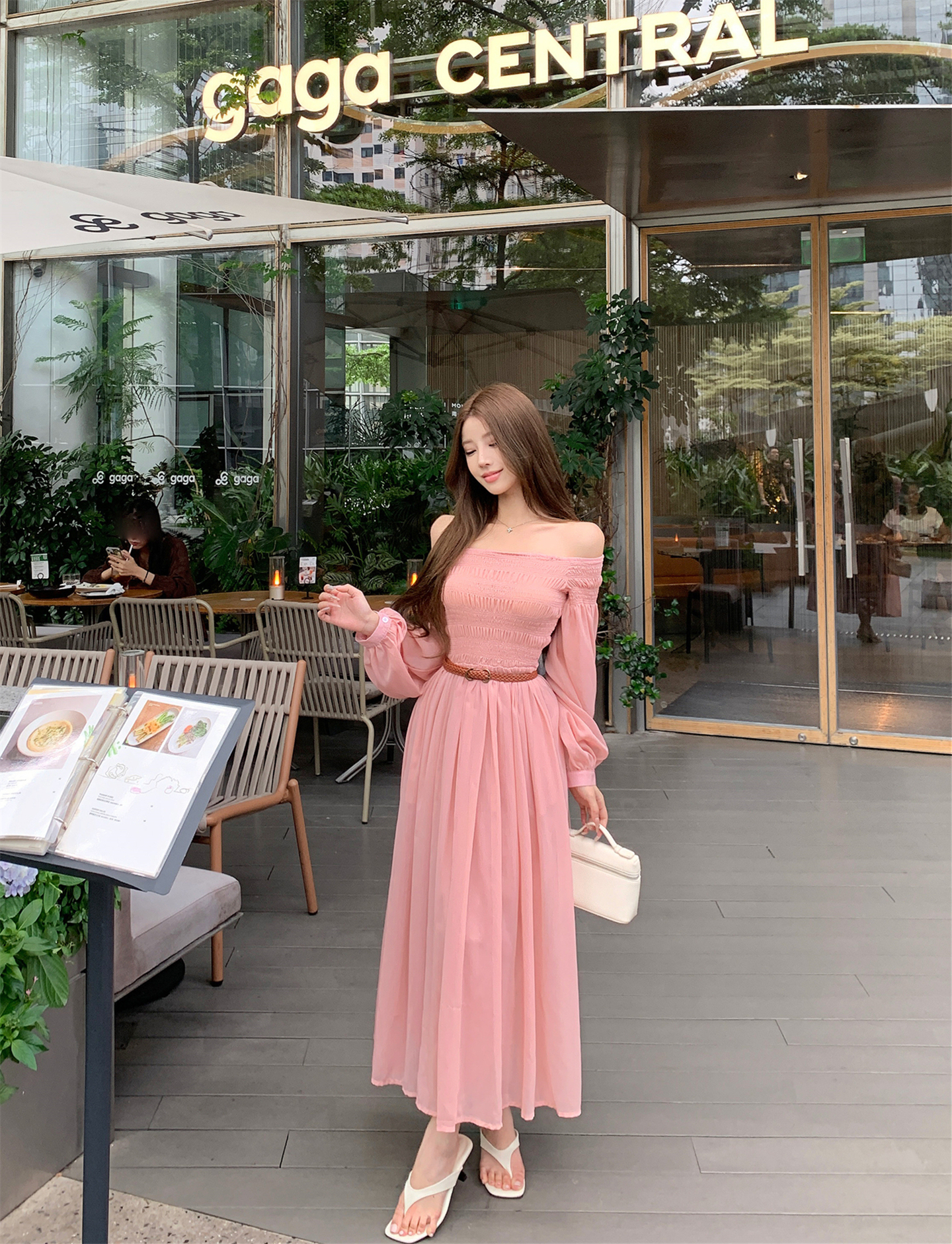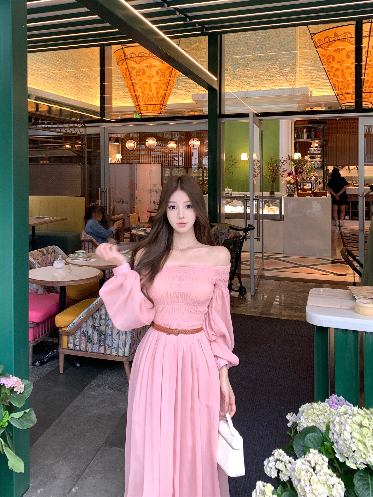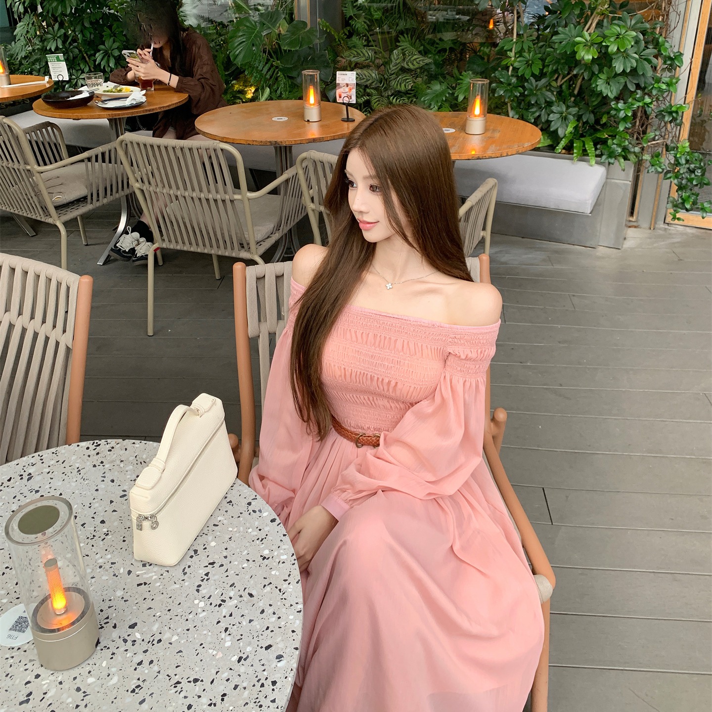 실사 자오 이슬 생각하기 같은 단락 여성 드레스 여름 프랑스식 오프숄더 고급 센스 튜브탑 아름다운 스타 분말 롱 스커트