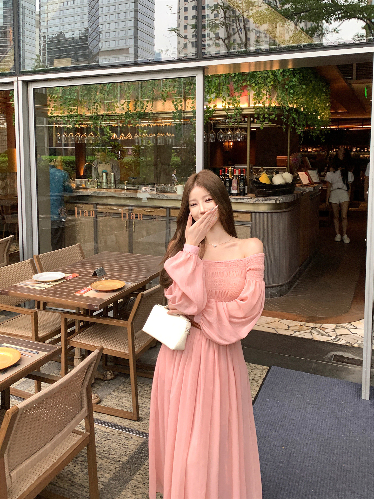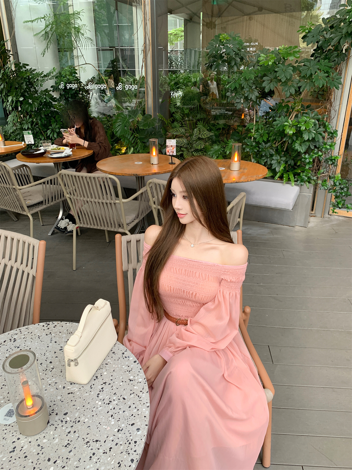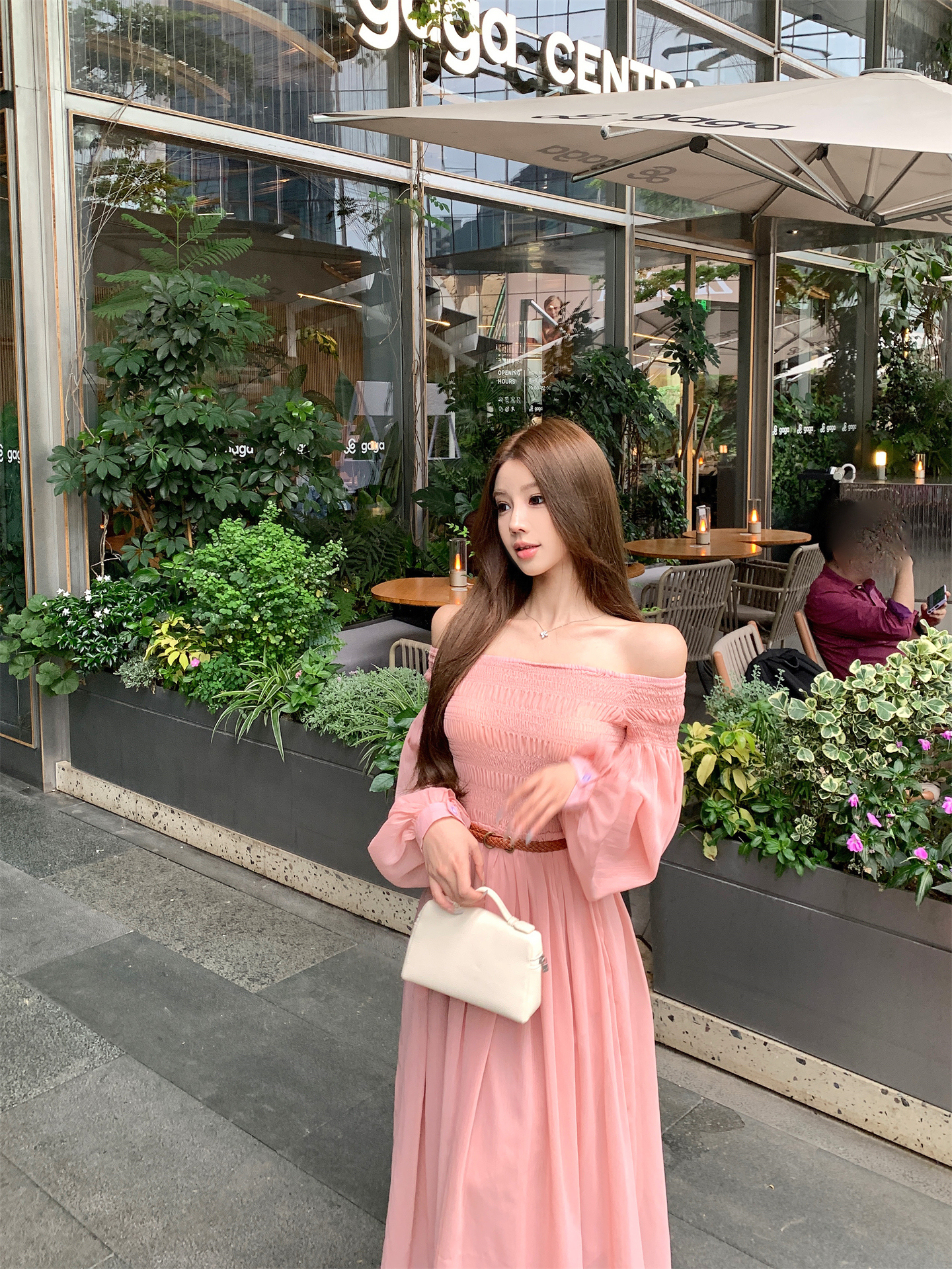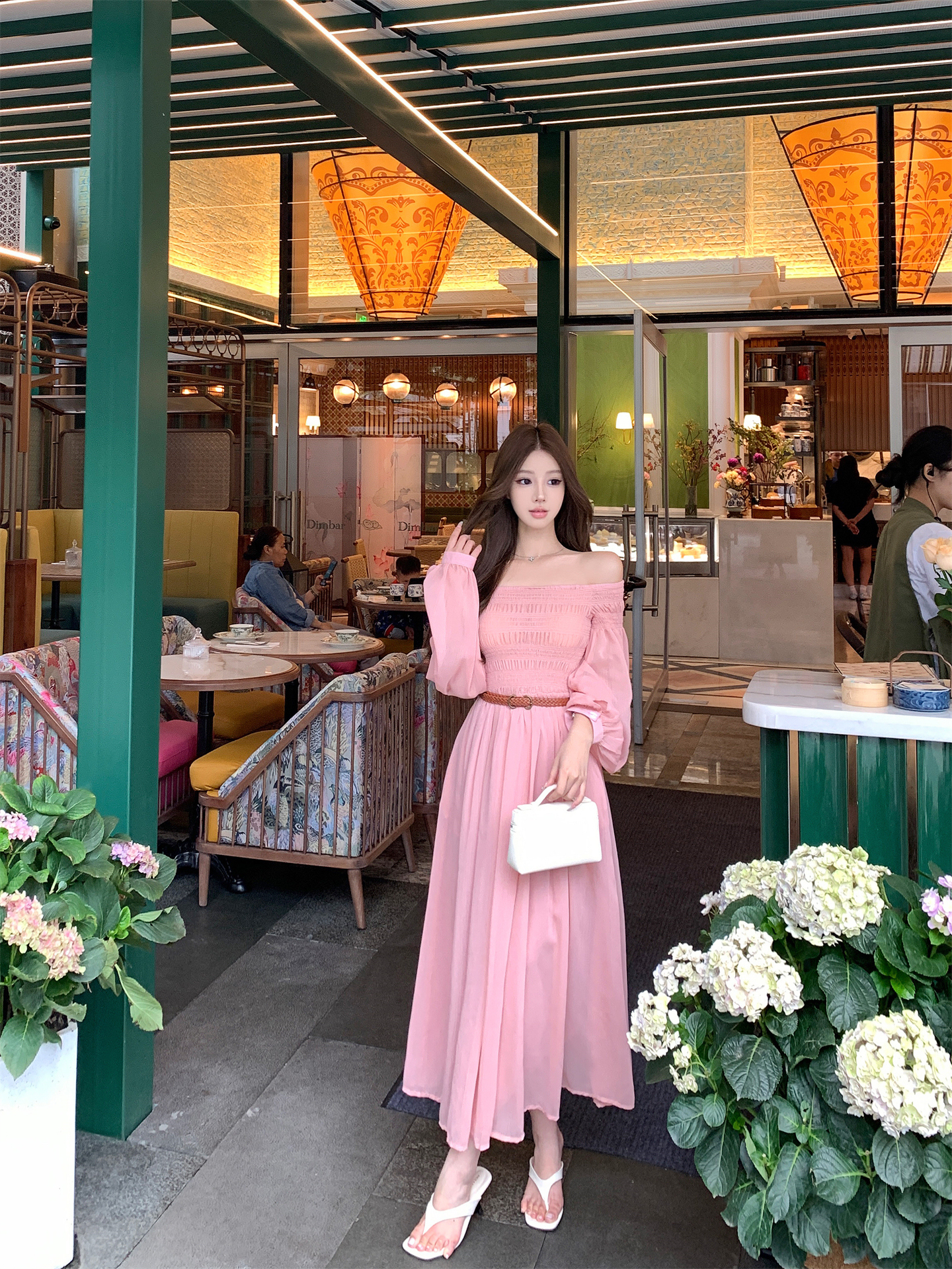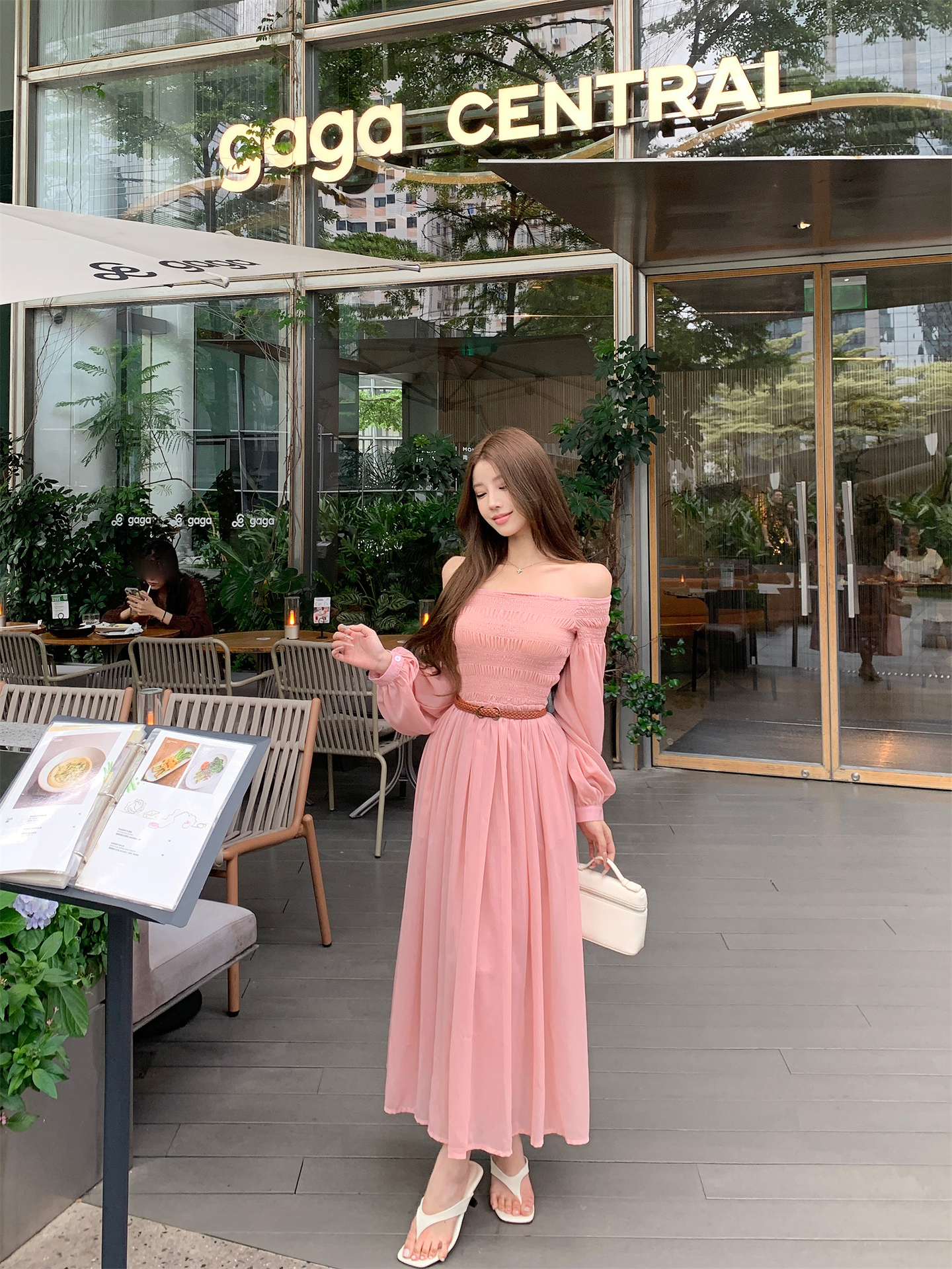 실사 자오 이슬 생각하기 같은 단락 여성 드레스 여름 프랑스식 오프숄더 고급 센스 튜브탑 아름다운 스타 분말 롱 스커트