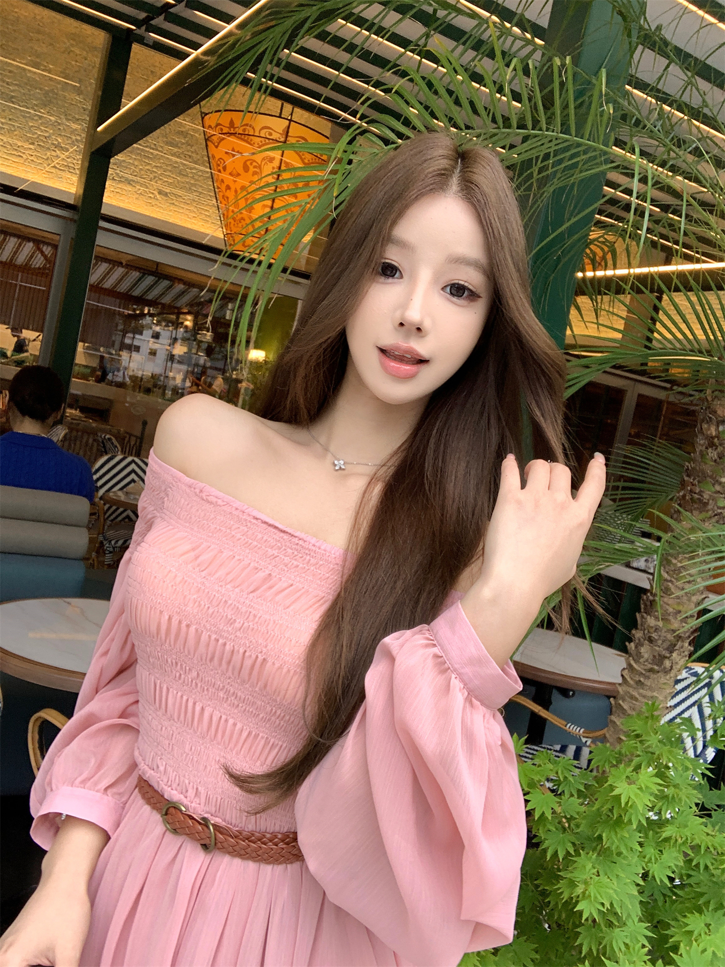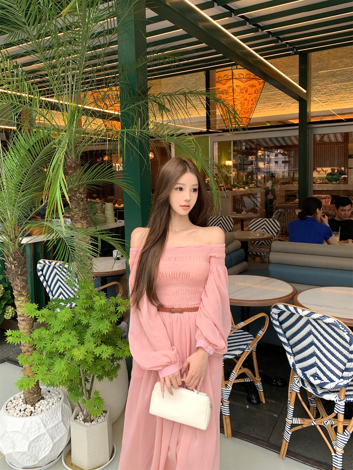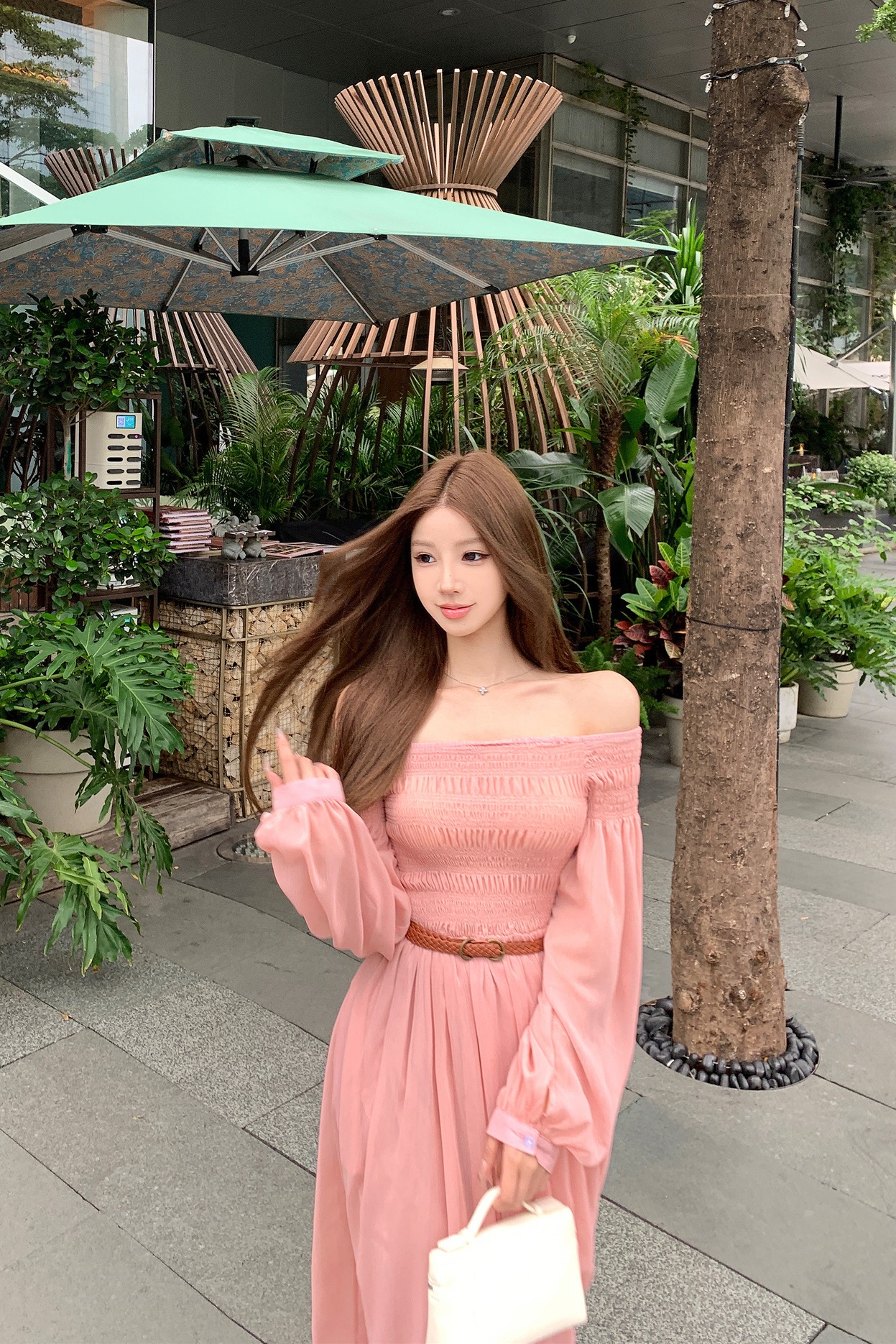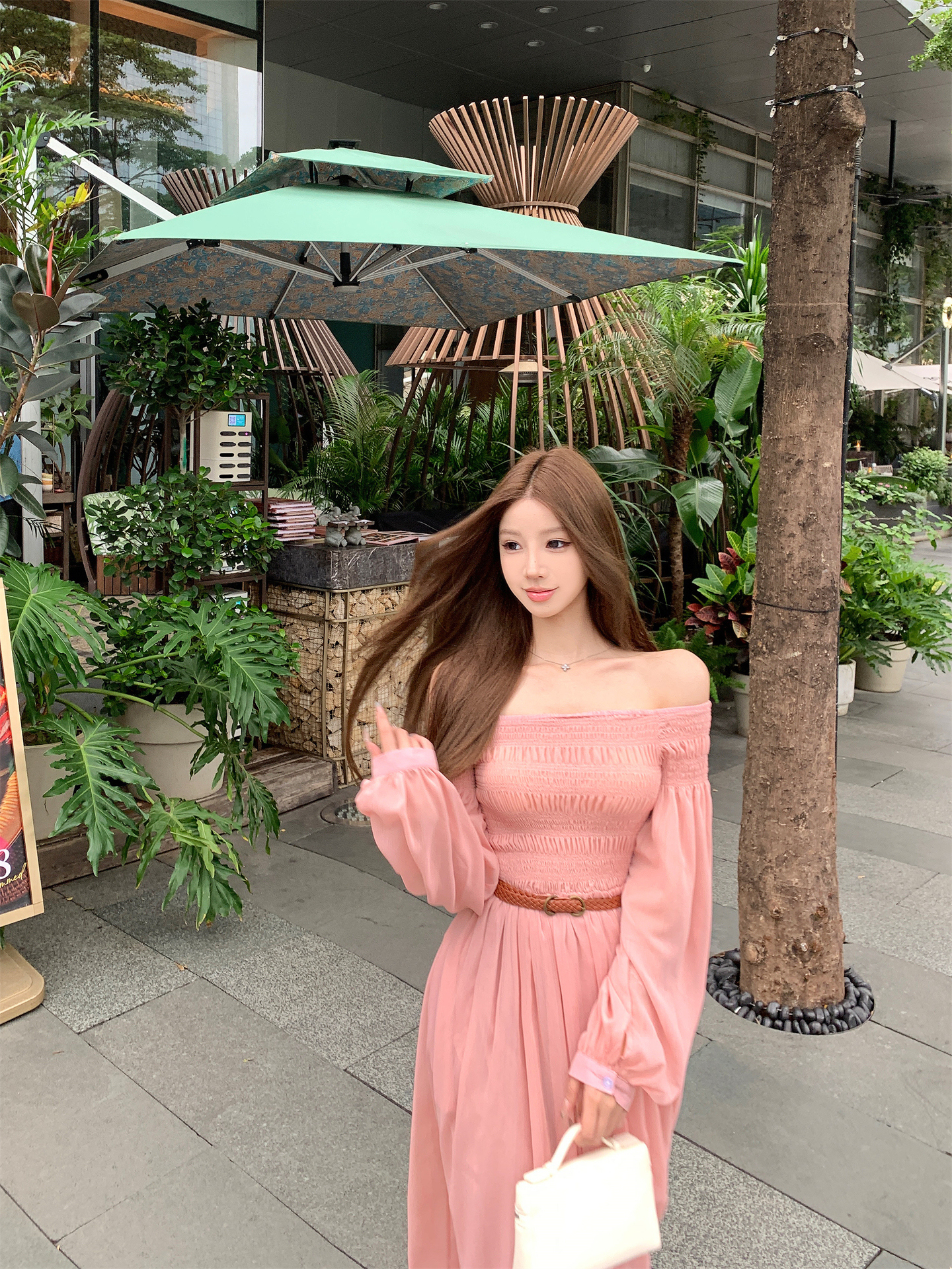 실사 자오 이슬 생각하기 같은 단락 여성 드레스 여름 프랑스식 오프숄더 고급 센스 튜브탑 아름다운 스타 분말 롱 스커트