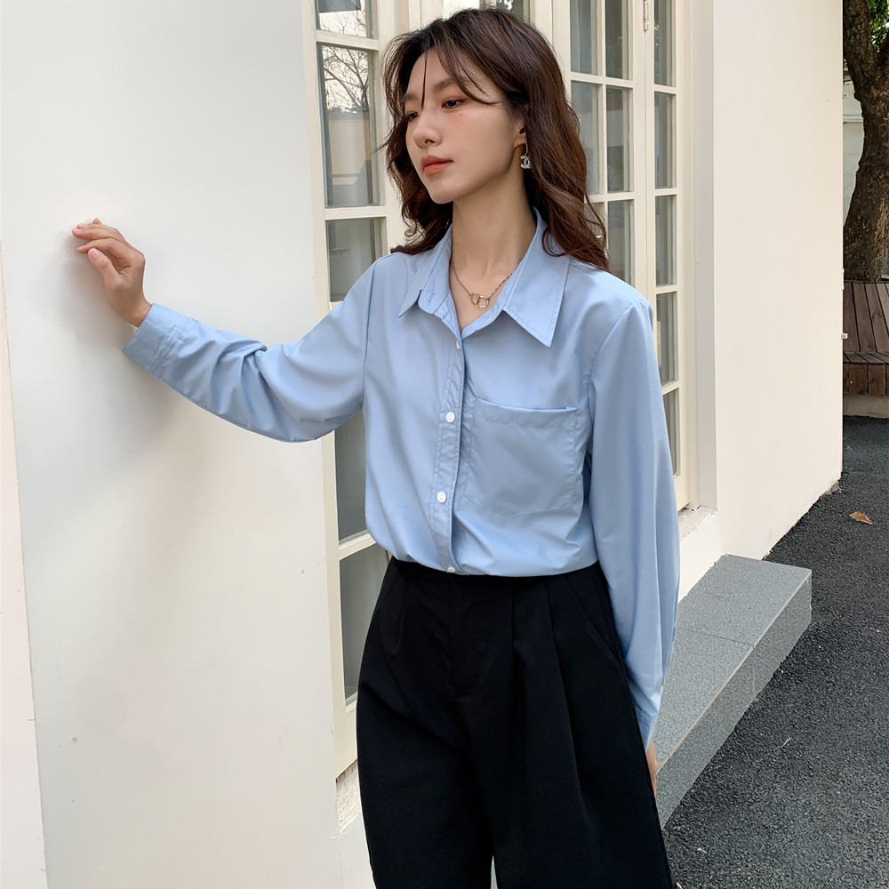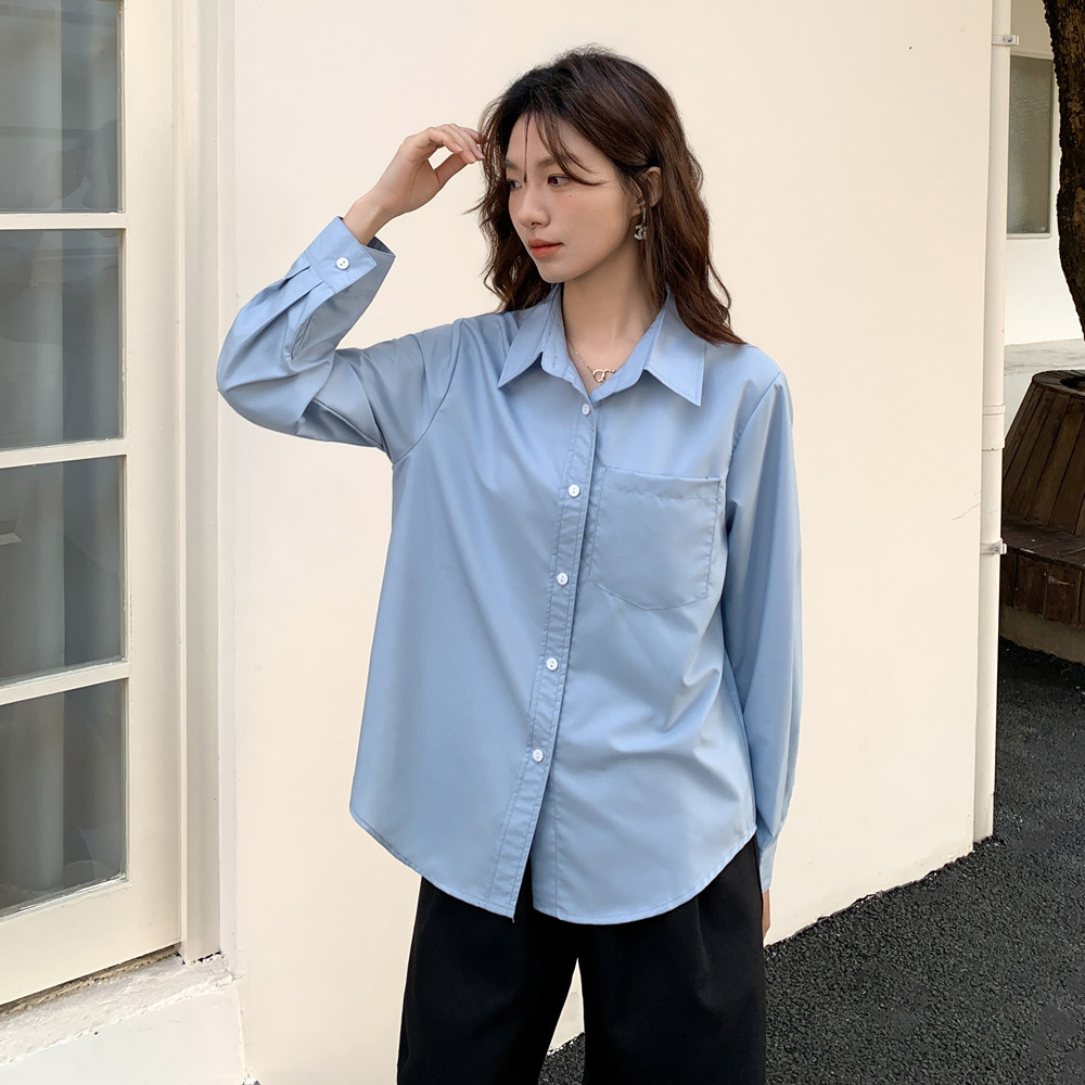 실사 좋은 알아서해라. 저항 주름 미니멀리즘 긴팔 루즈핏 여성 셔츠 품격 출퇴근 다용도 캐주얼 한국 스타일 셔츠