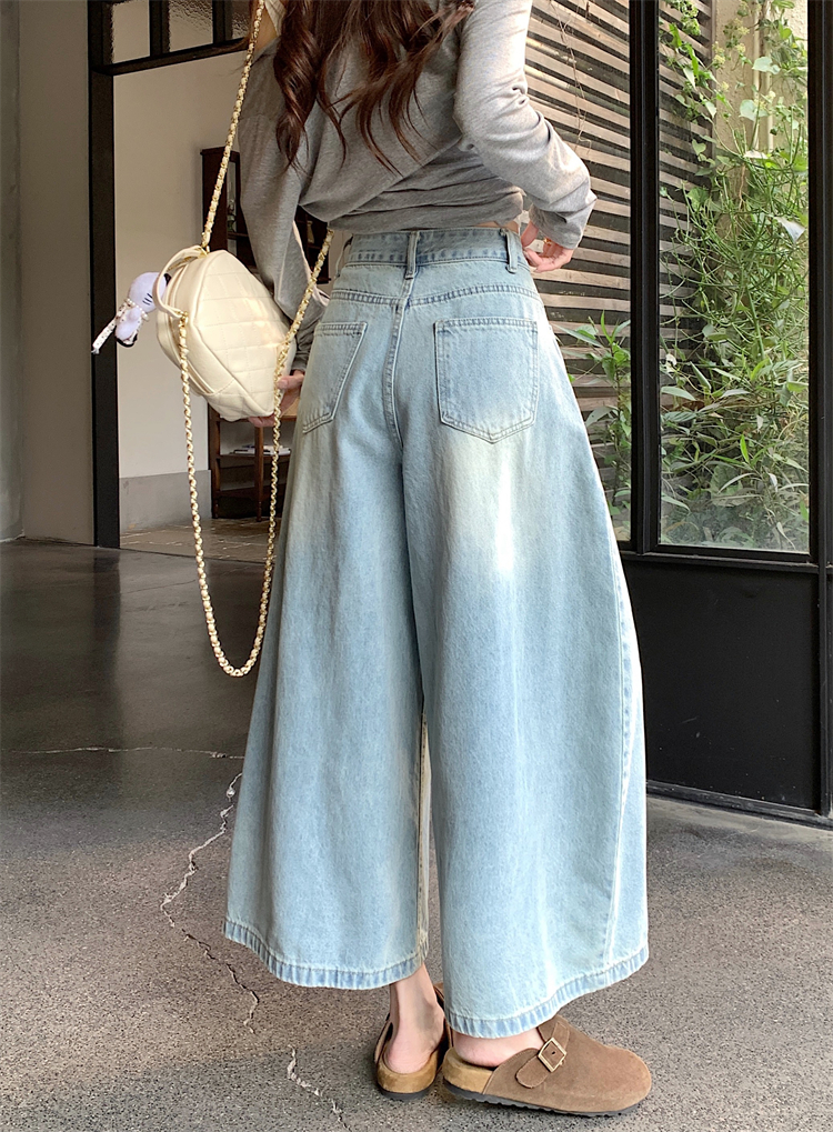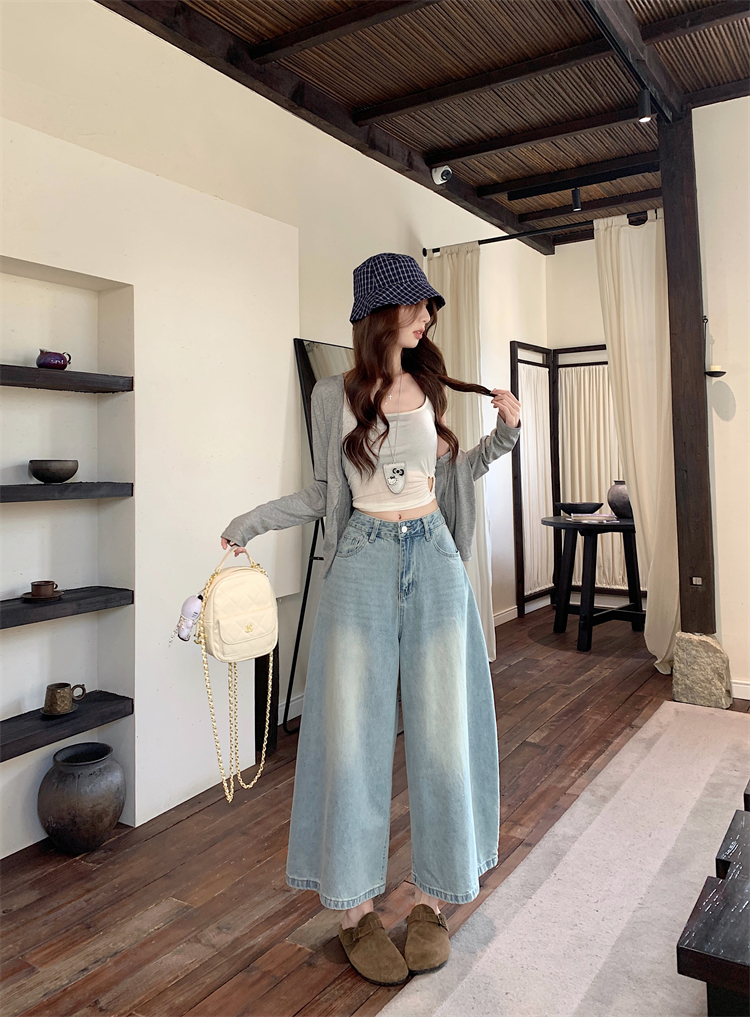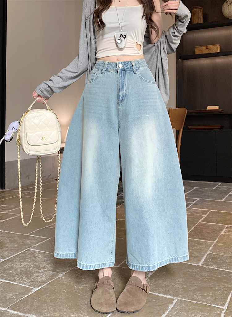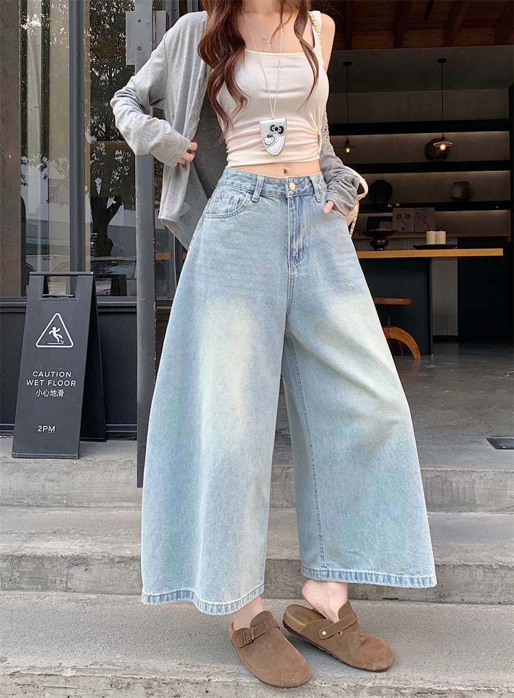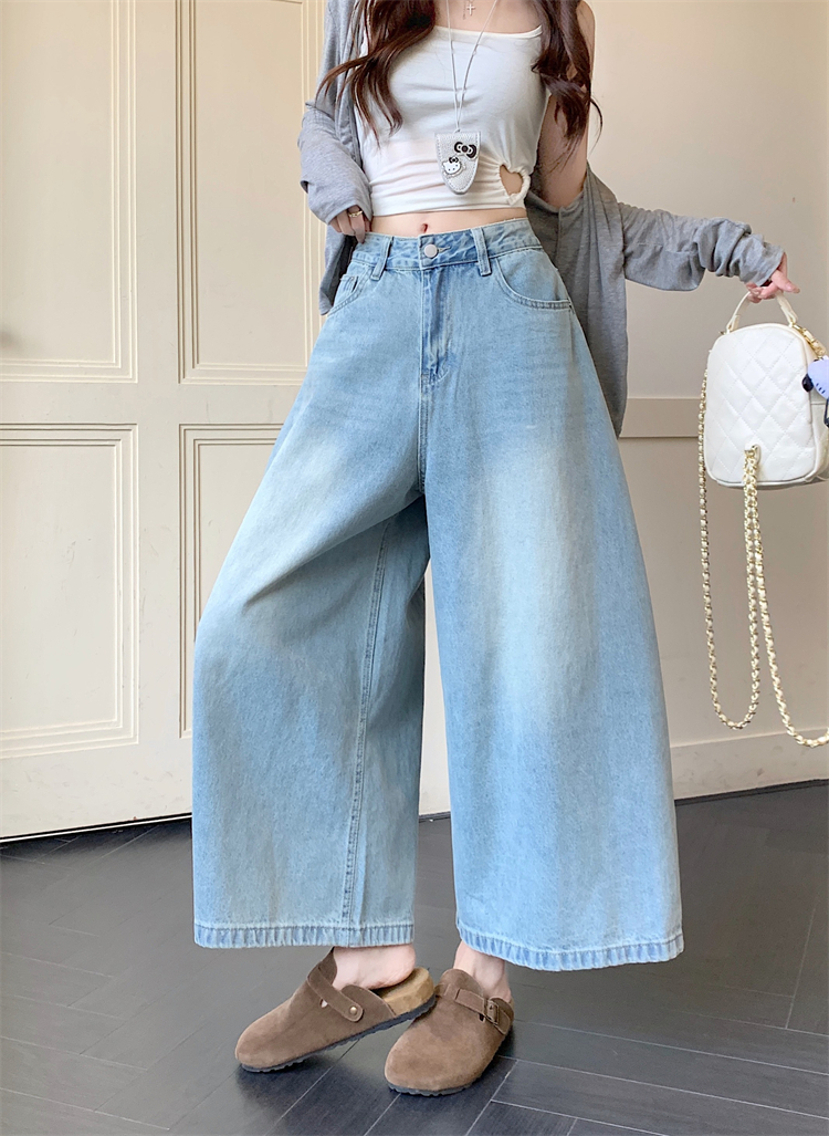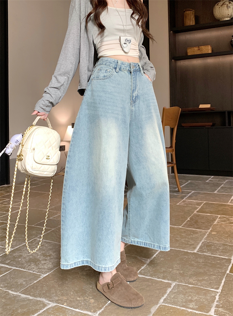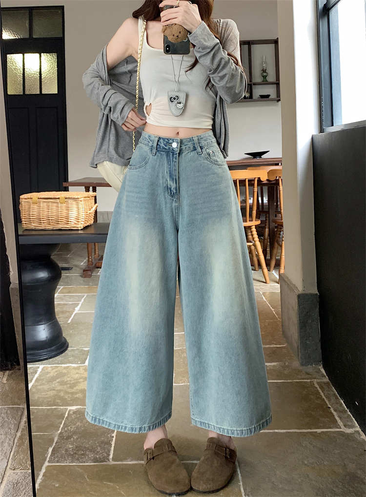 실사 아메리칸 레트로 넓은 다리 청바지 여성 새로운 하이웨이스트 슬림해 보이는 스트레이트 도루 센스 풍선 바닥 청소 긴 바지