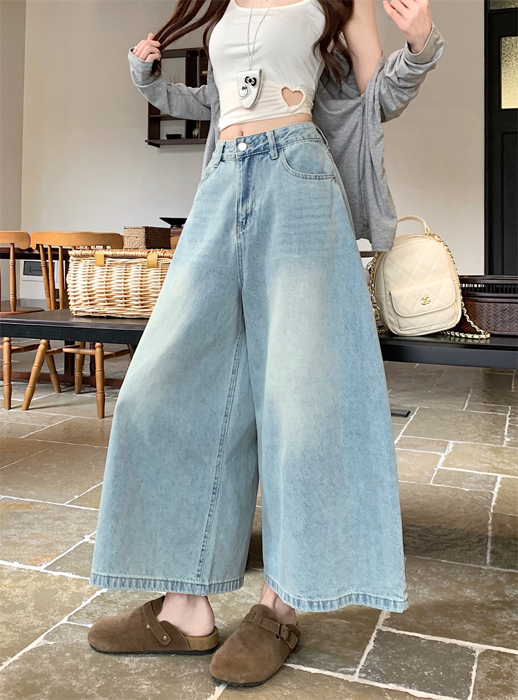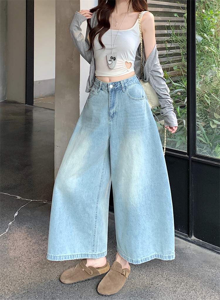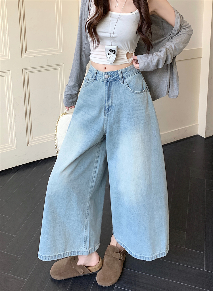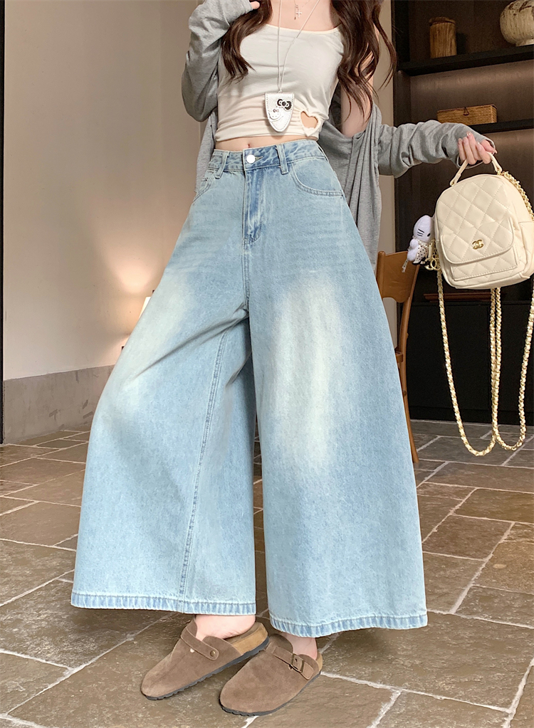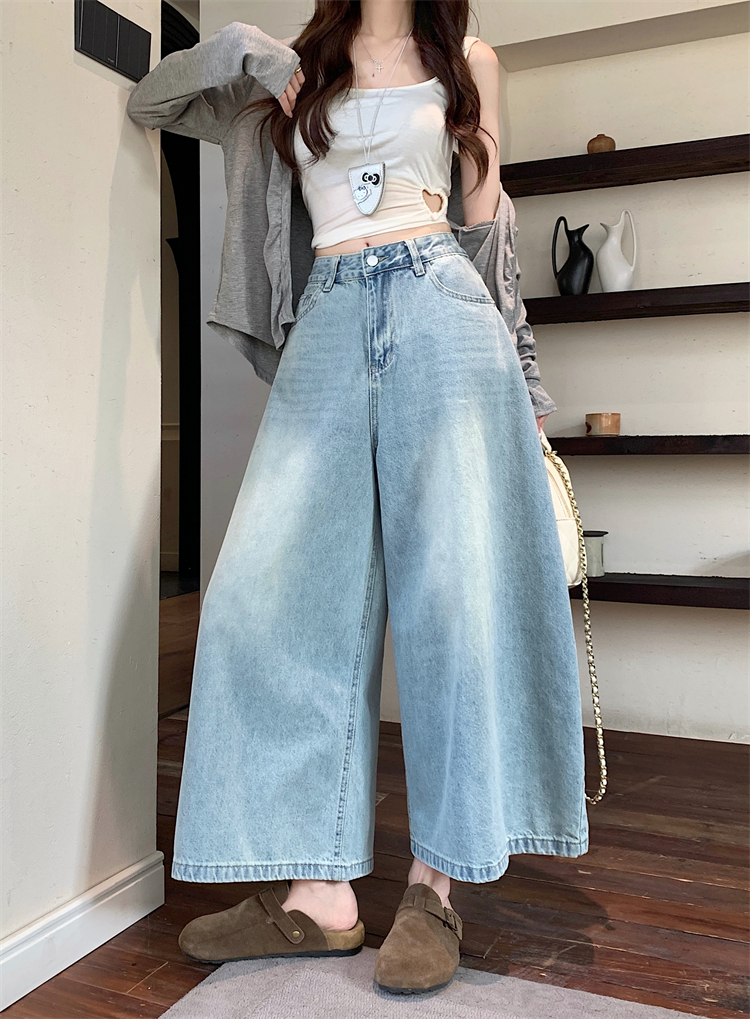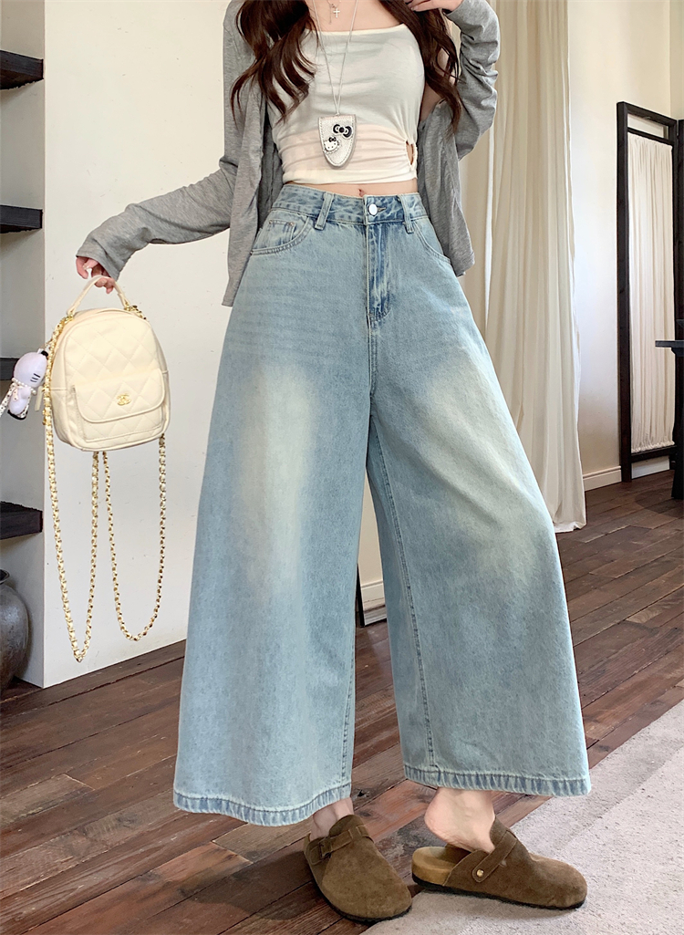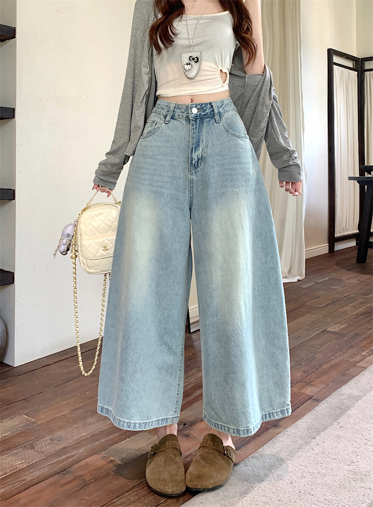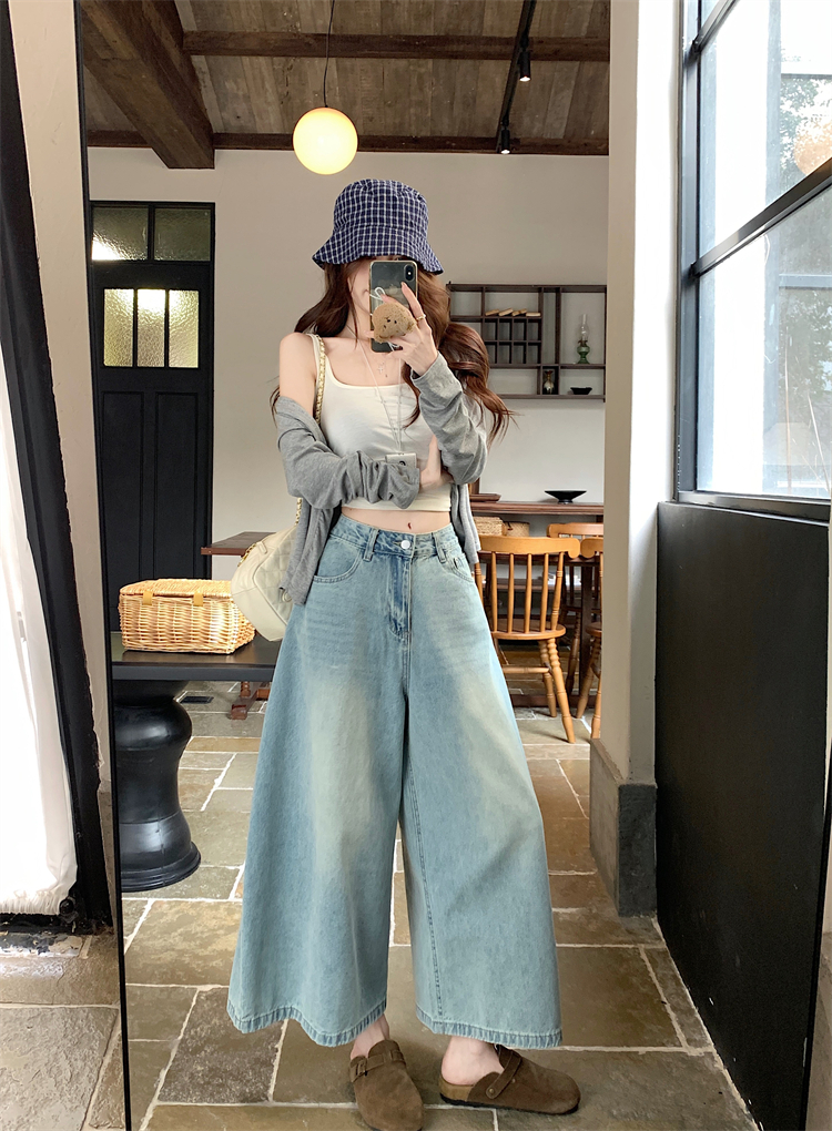실사 아메리칸 레트로 워싱 청바지 여성 봄 새로운 하이웨이스트 바닥 청소 긴 바지 루즈핏 스트레이트 와이드 레그 팬츠