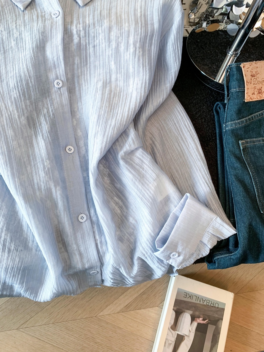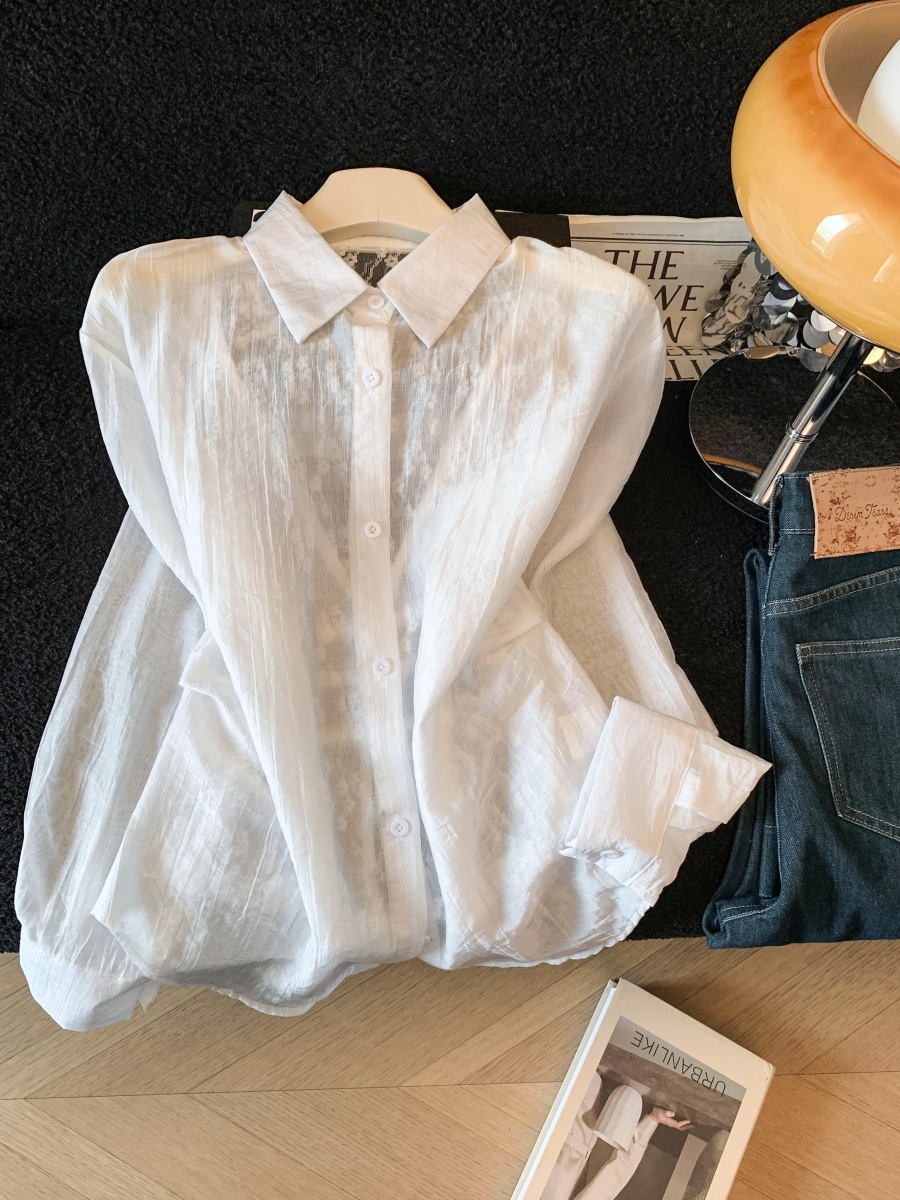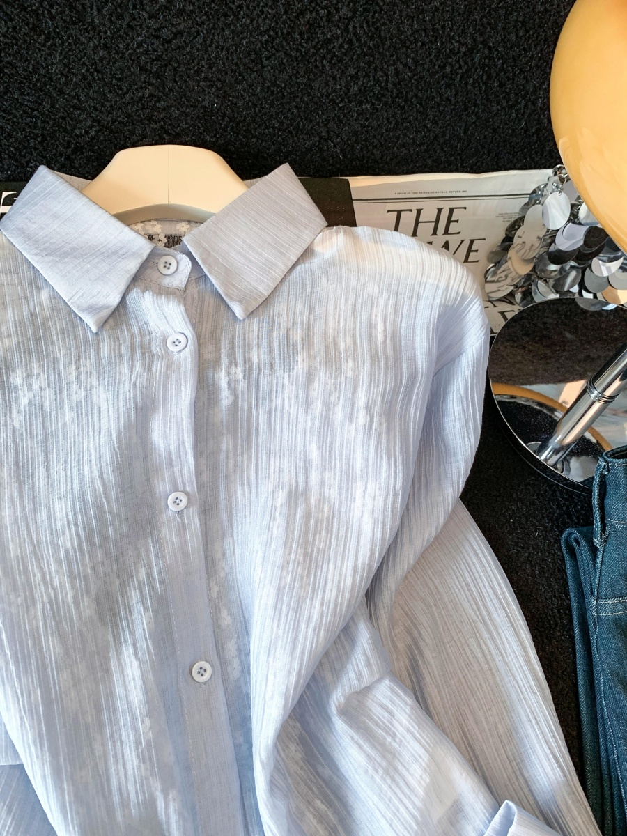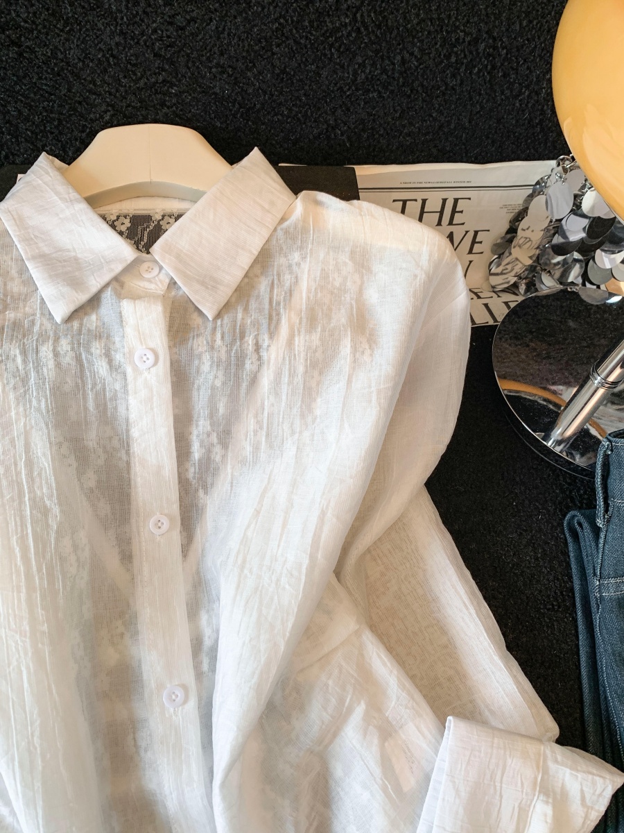 여름 새로운 레이스 조각 폴로 칼라 긴팔 여성 셔츠 디자인 센스 외부 가져 가라. 자외선 차단 의류 오픈 가디건